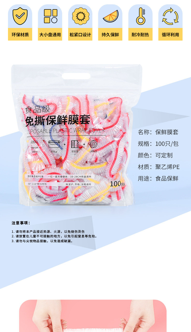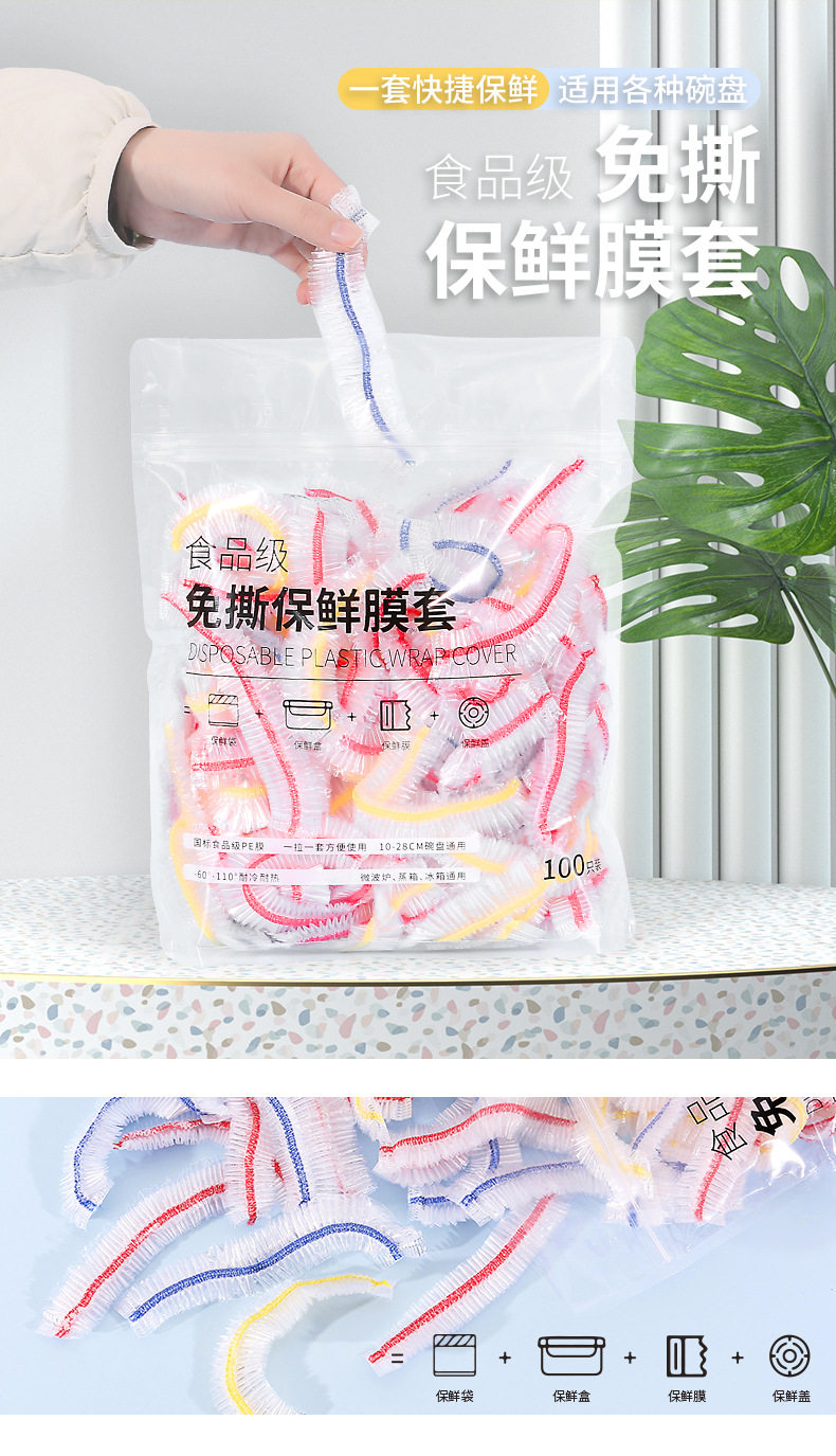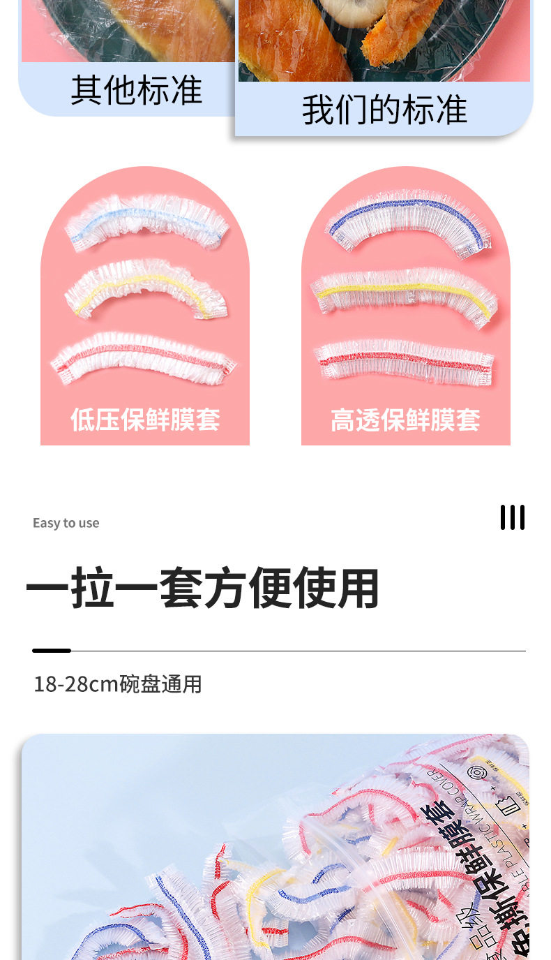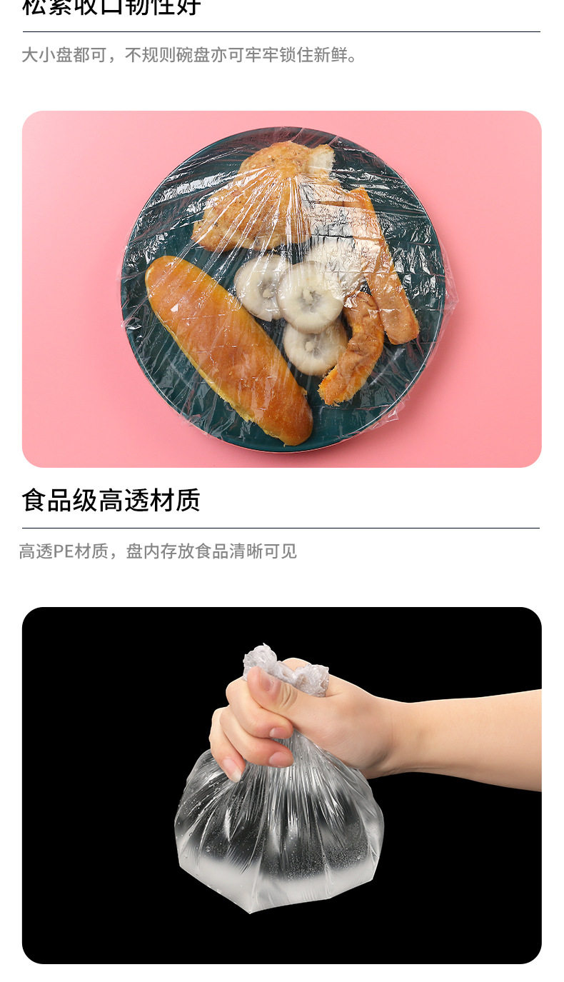 加大尺寸保鲜膜套罩加长厚彩色食品pe高透一次性冰箱微波炉防尘罩