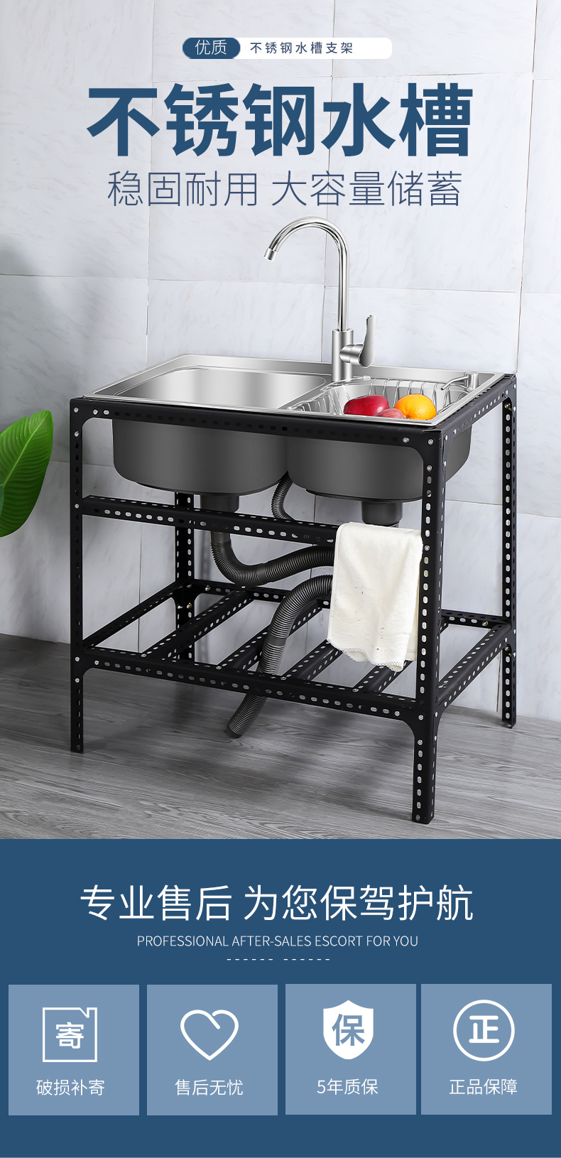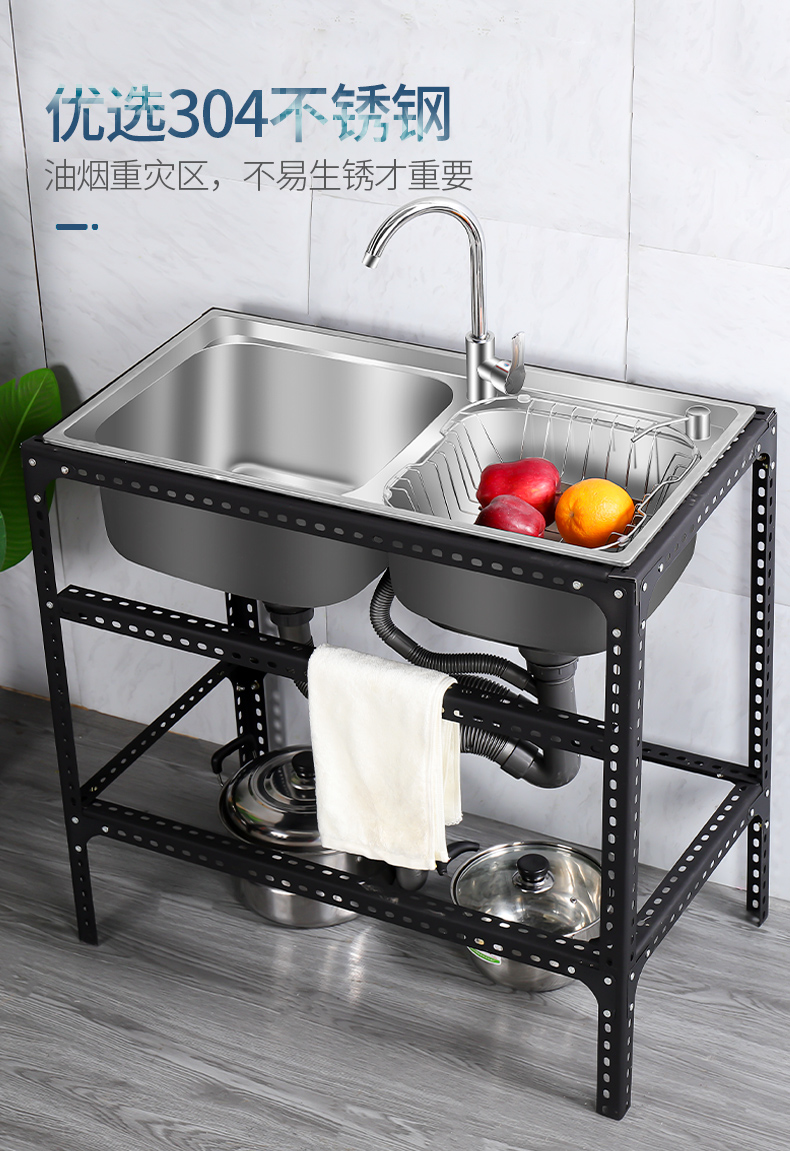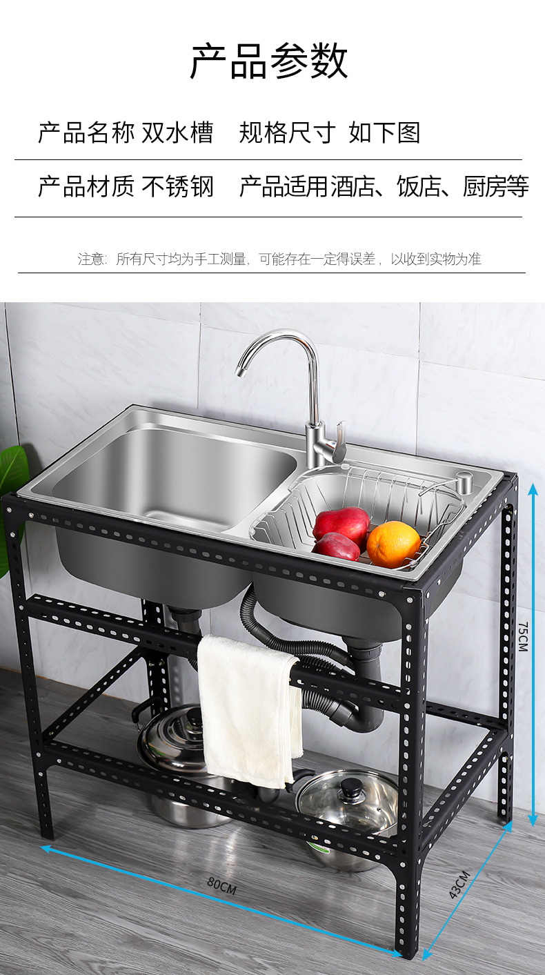 厨房简易不锈钢水槽带支架洗菜盆双槽水池家用洗碗槽洗手盆池架子