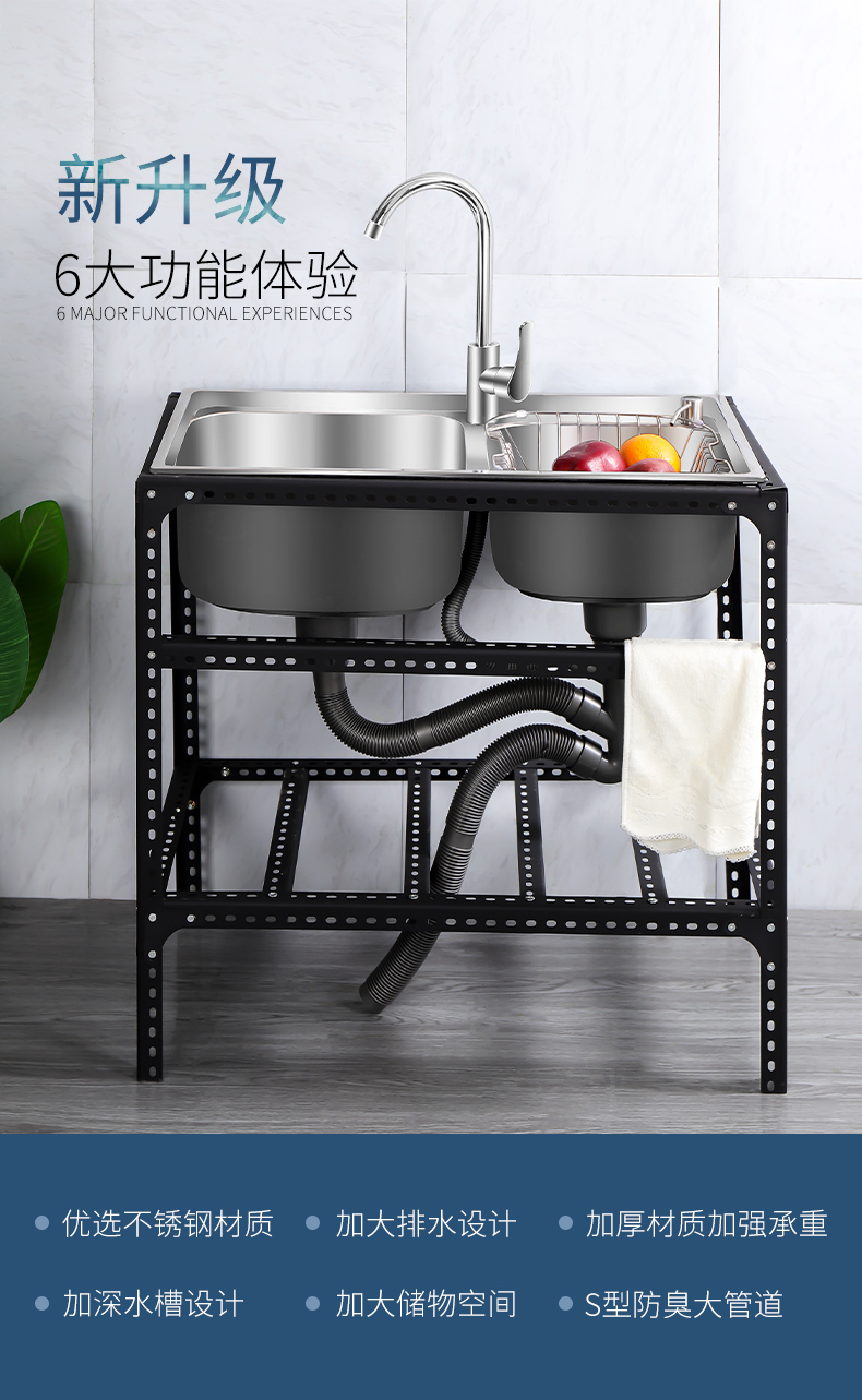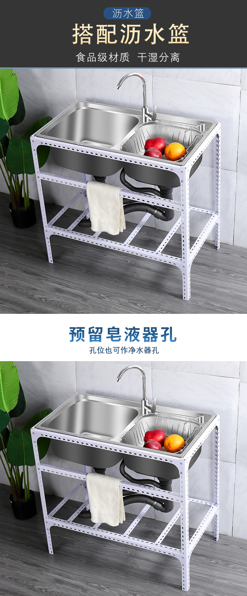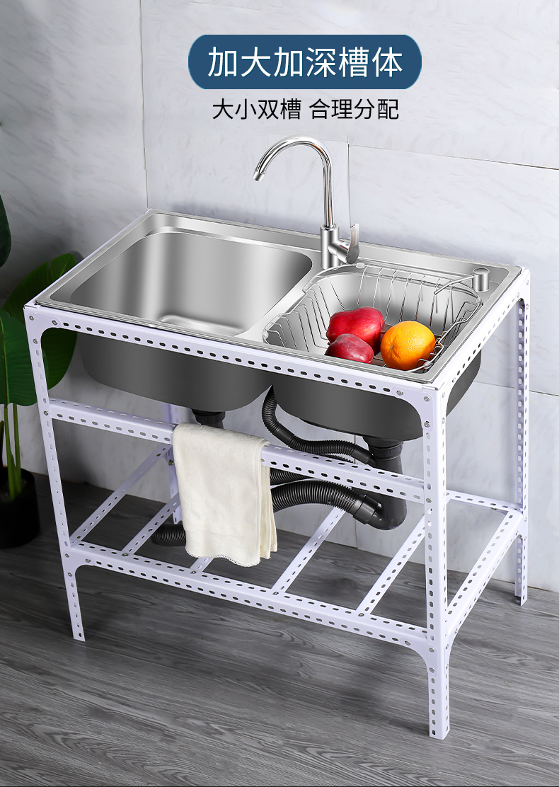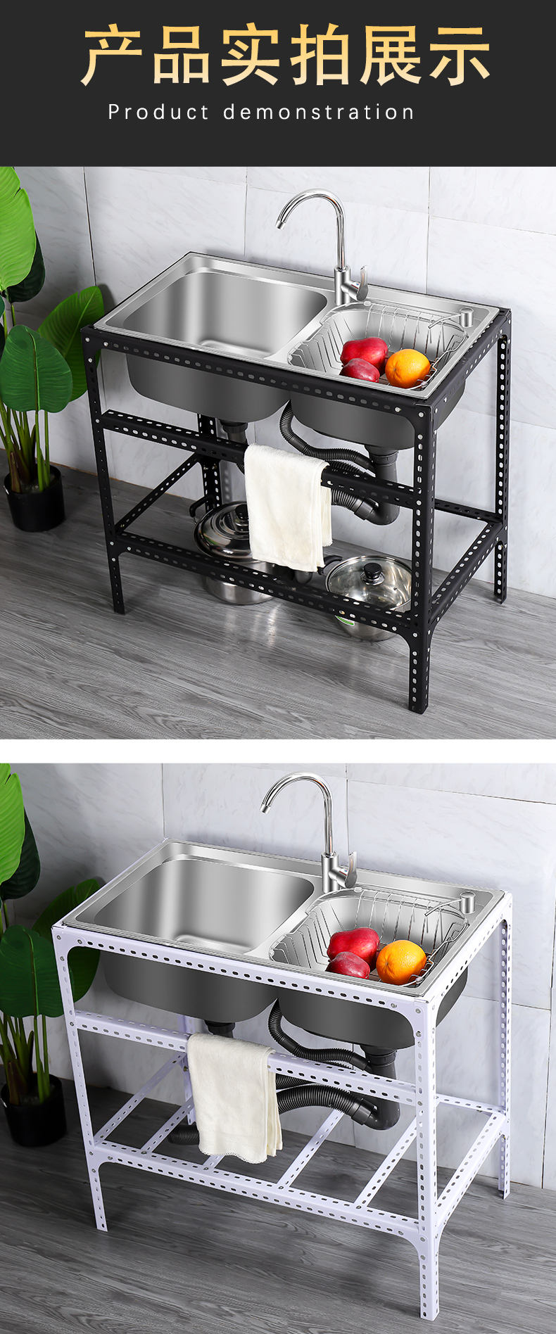 厨房简易不锈钢水槽带支架洗菜盆双槽水池家用洗碗槽洗手盆池架子
