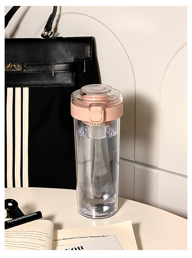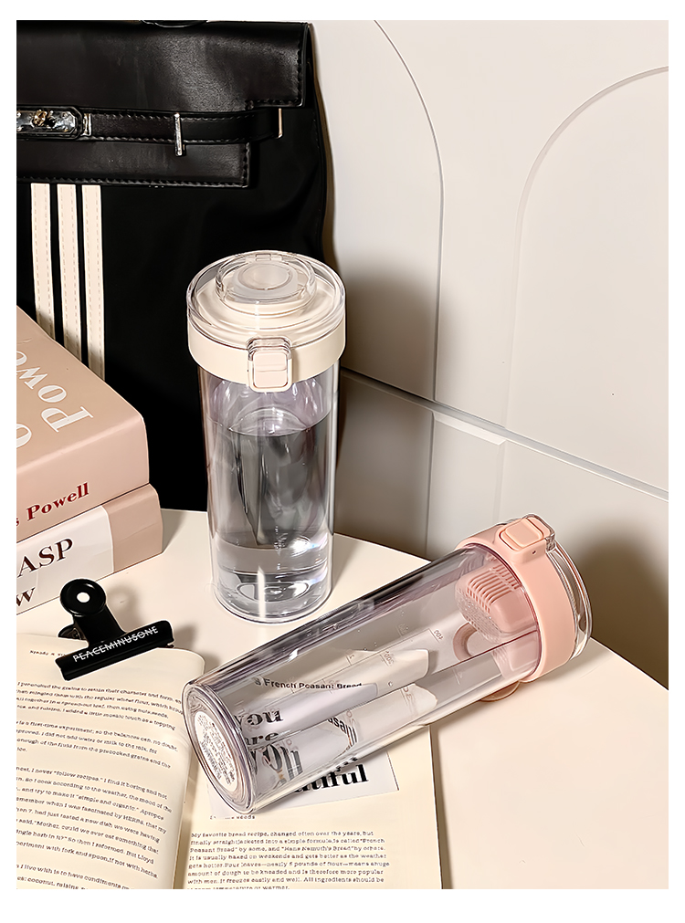 简约塑料水杯带茶隔耐高温男女生高颜值随手便携夏天学生直饮杯子