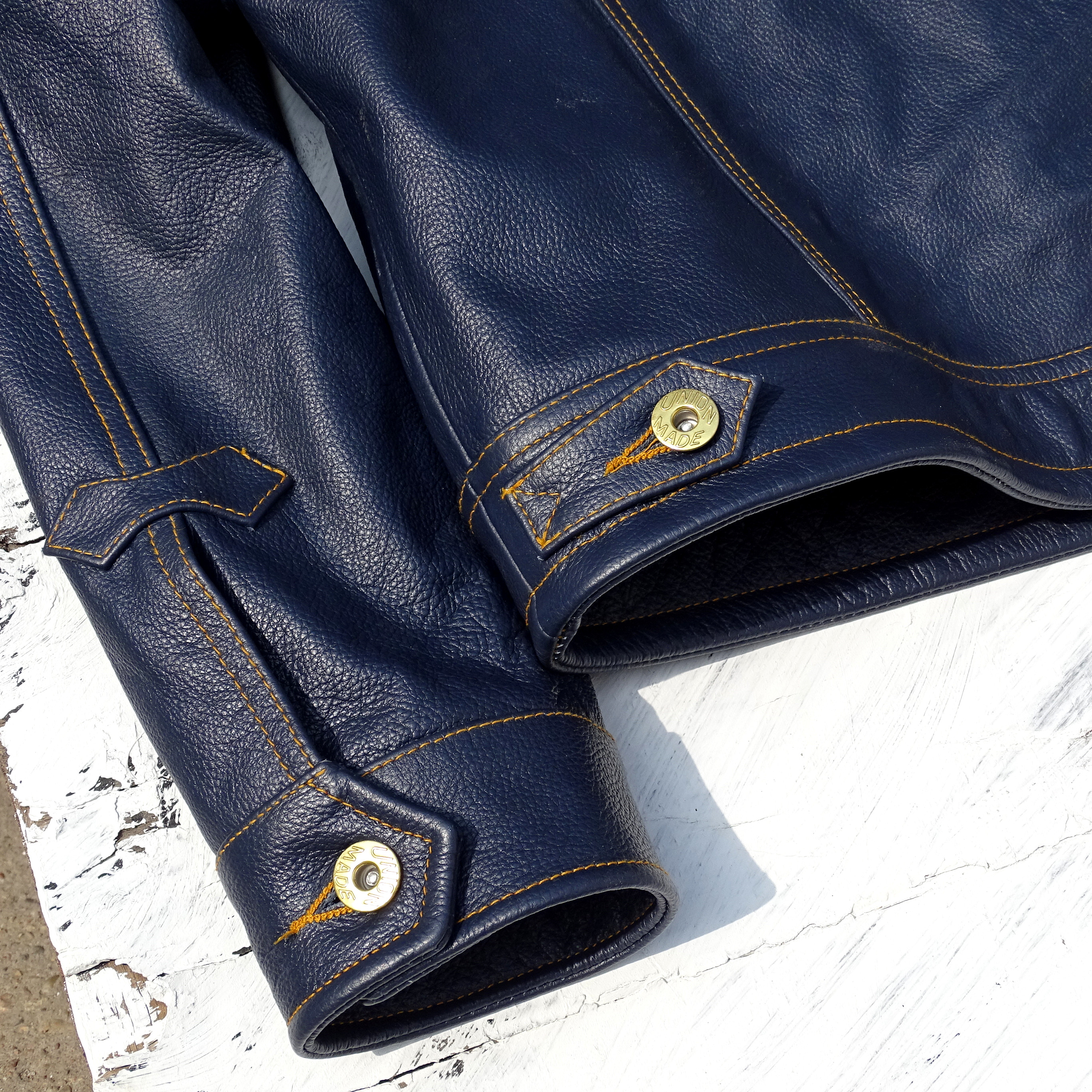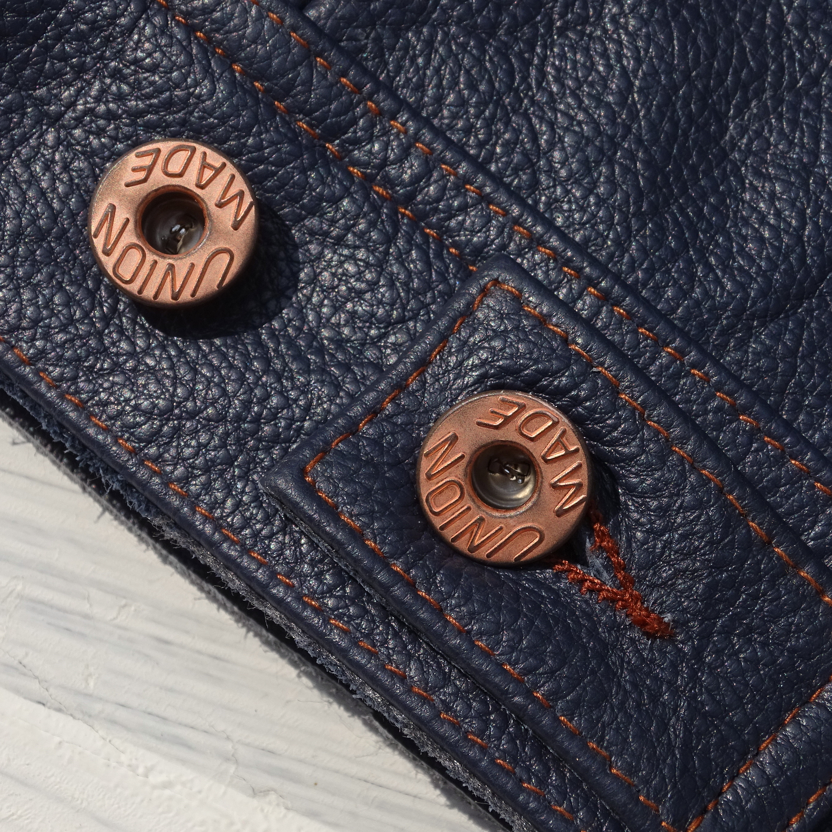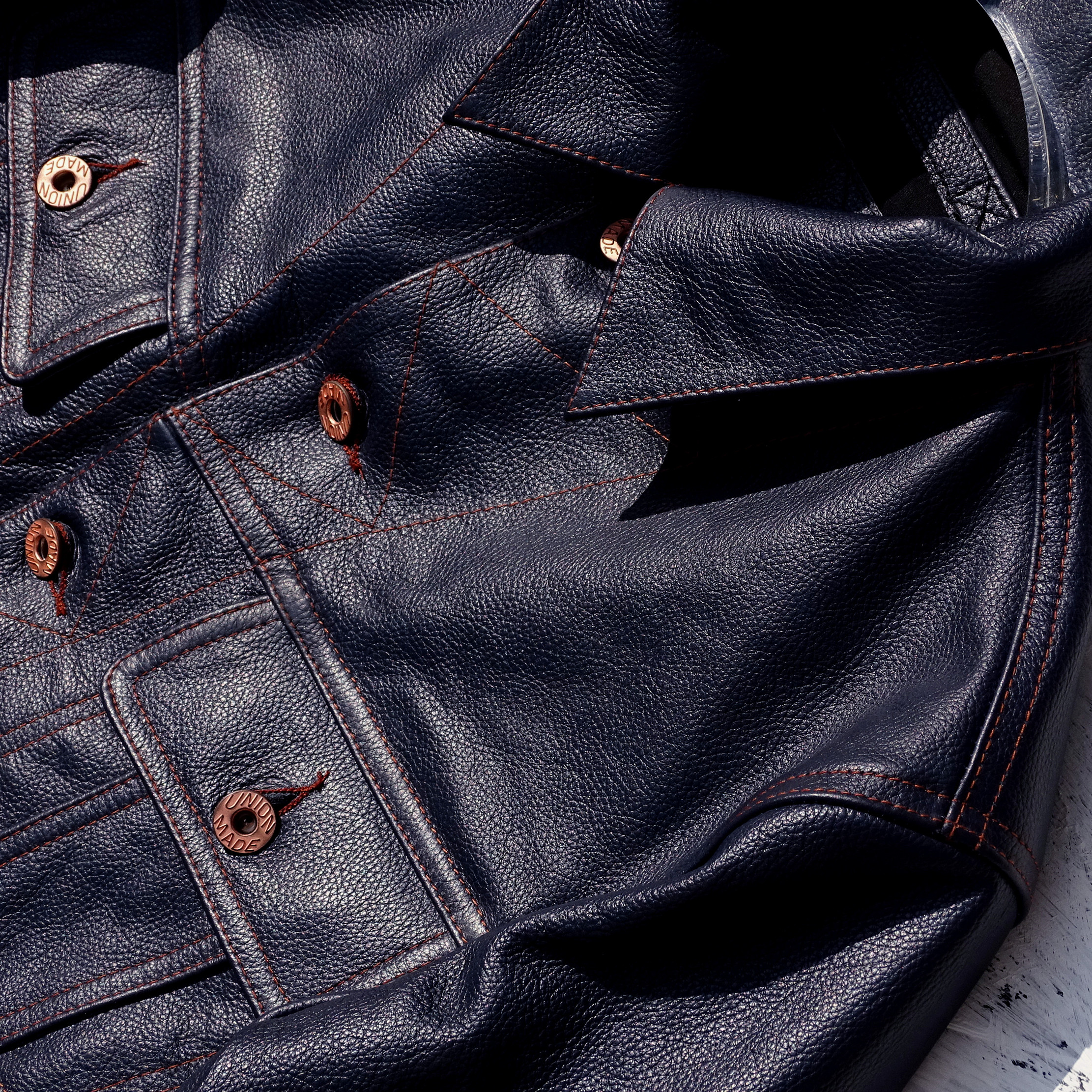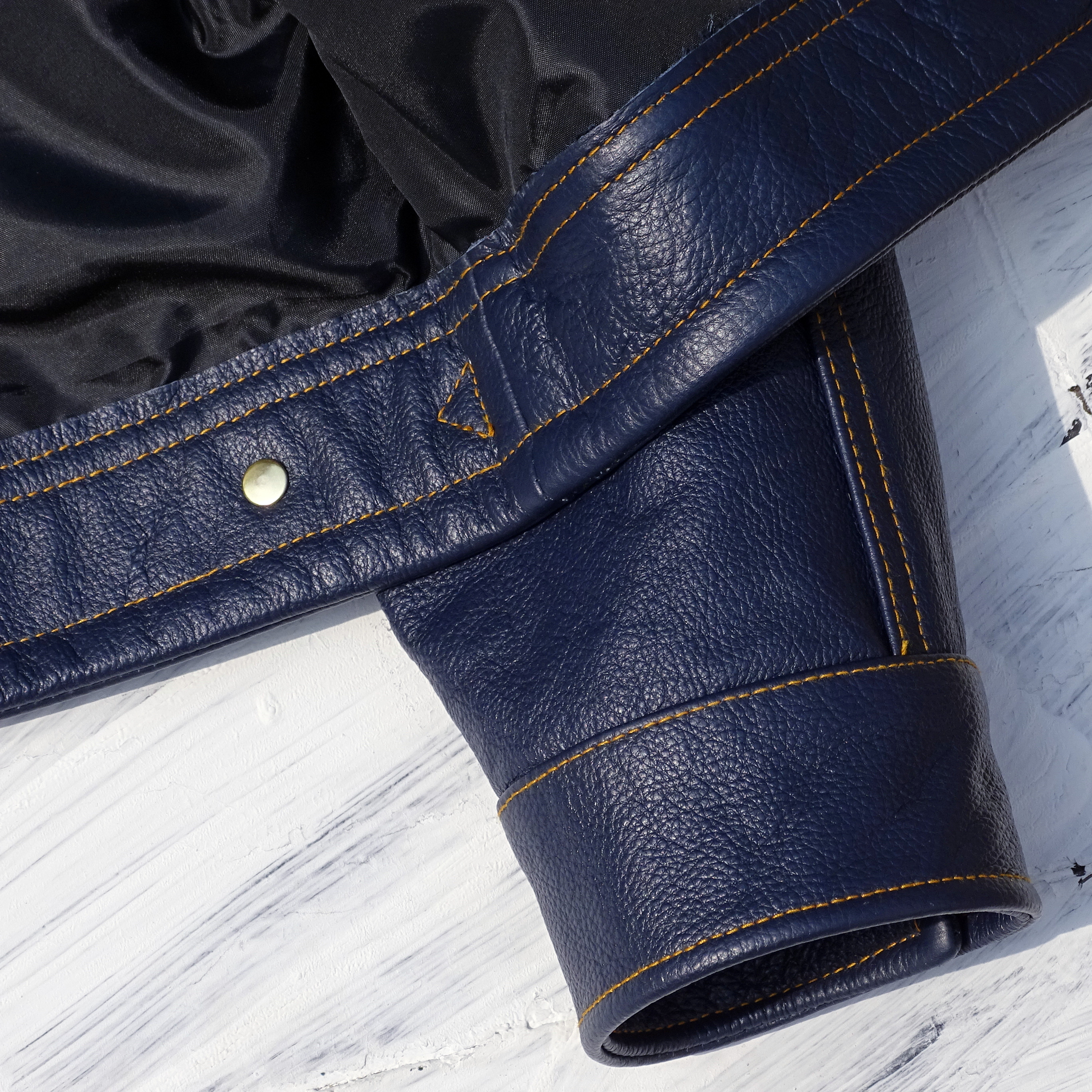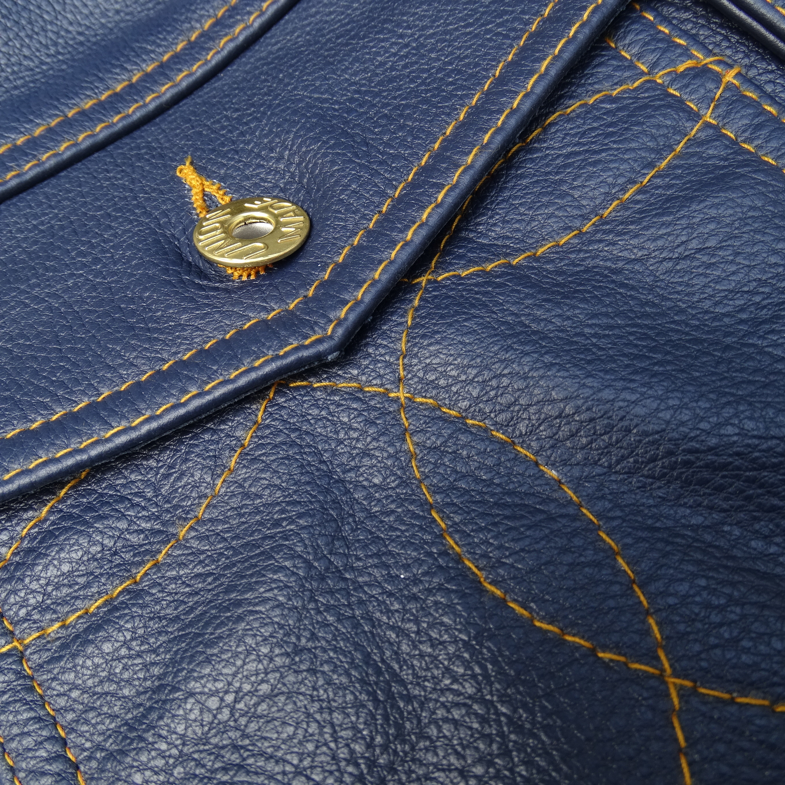 风暴骑士刺绣袋花牛仔蓝色荔枝纹头层牛皮男真皮皮衣夹克通勤外套