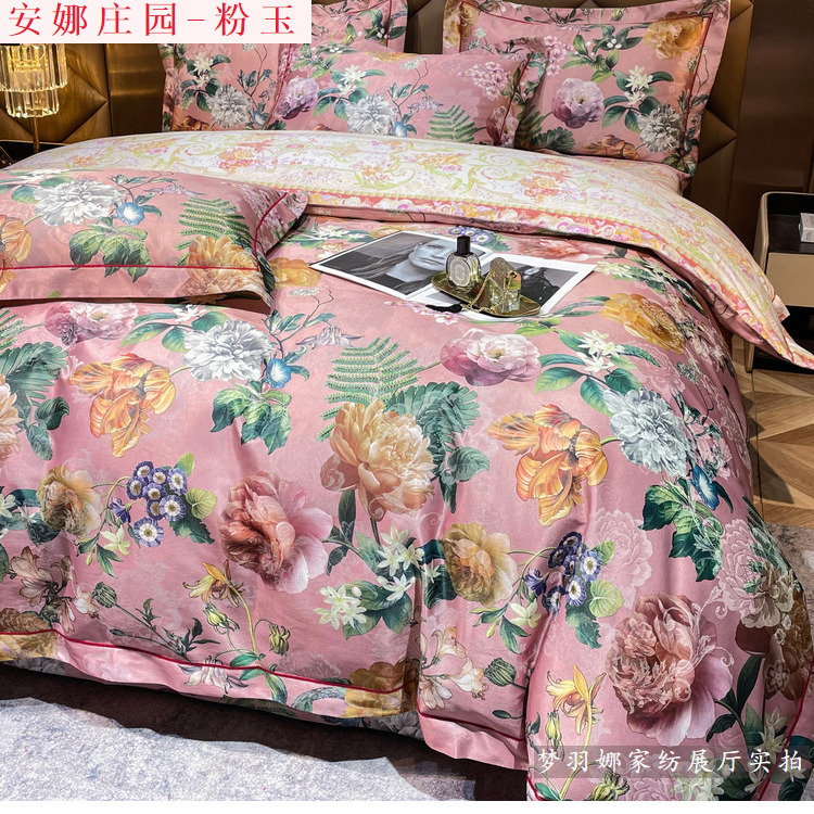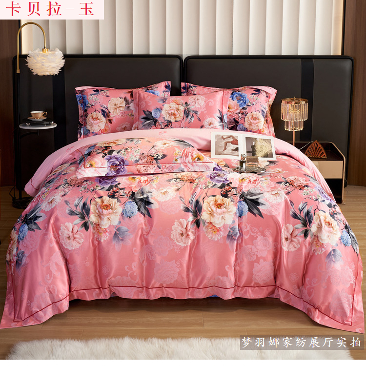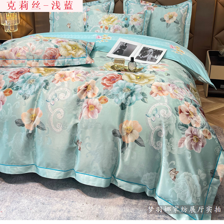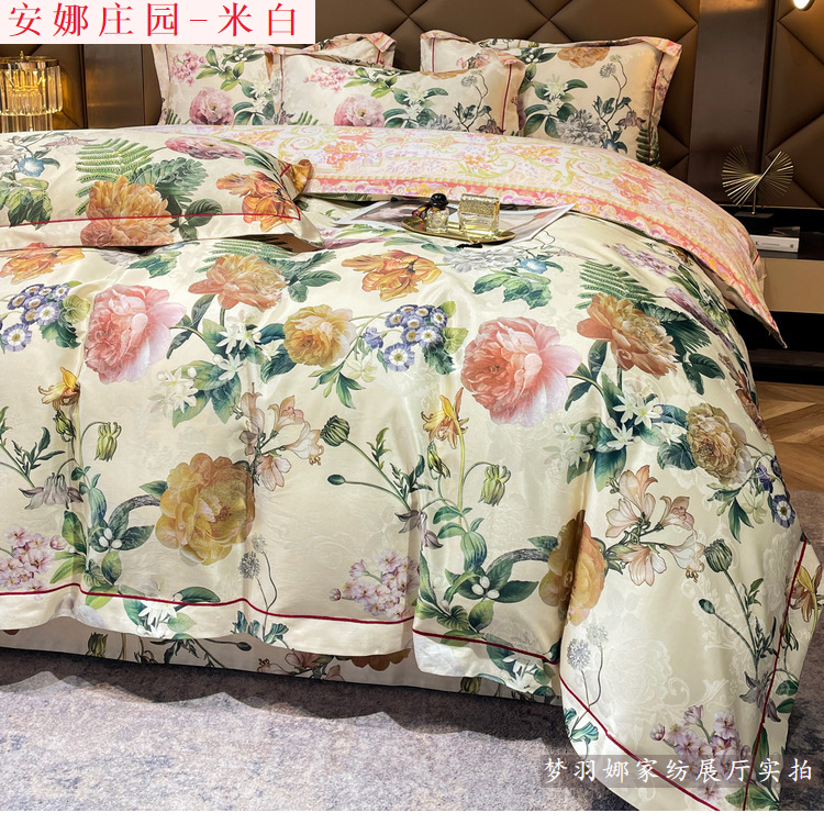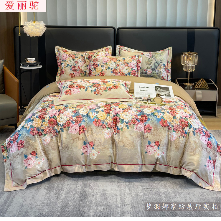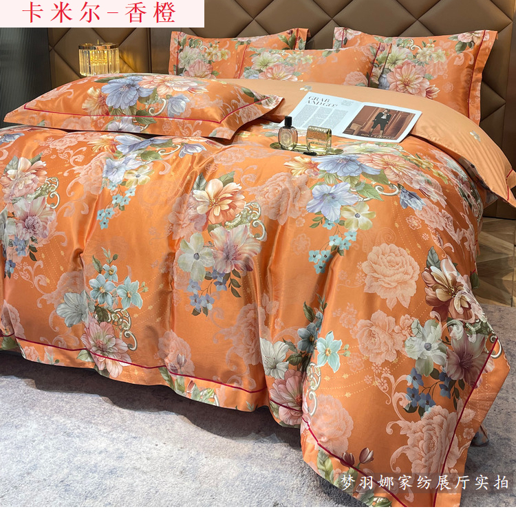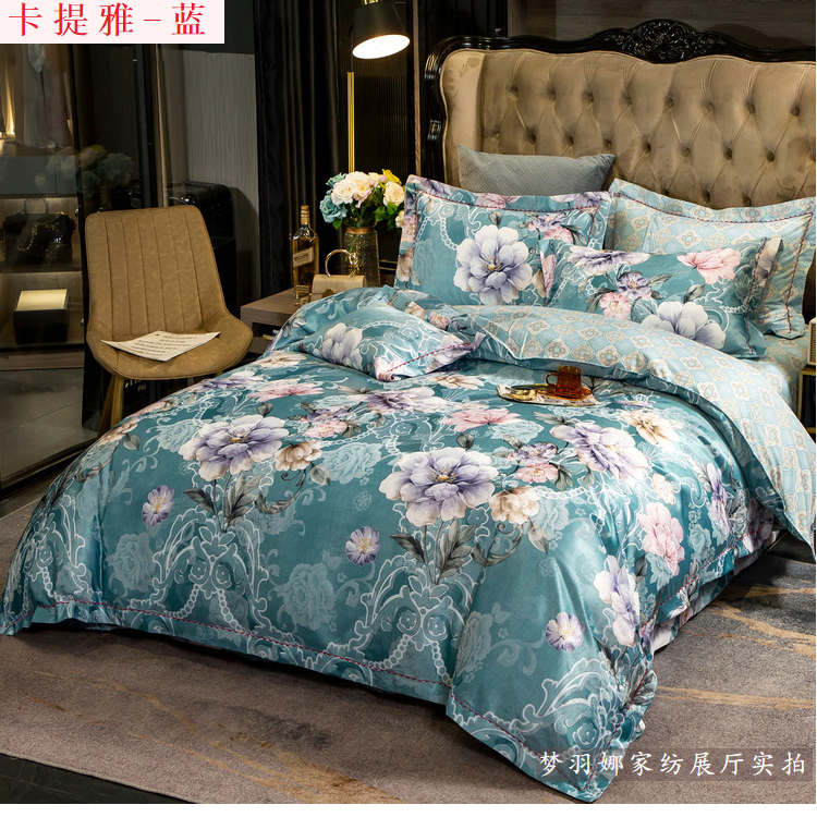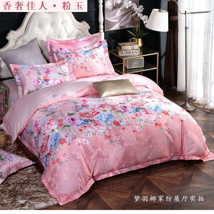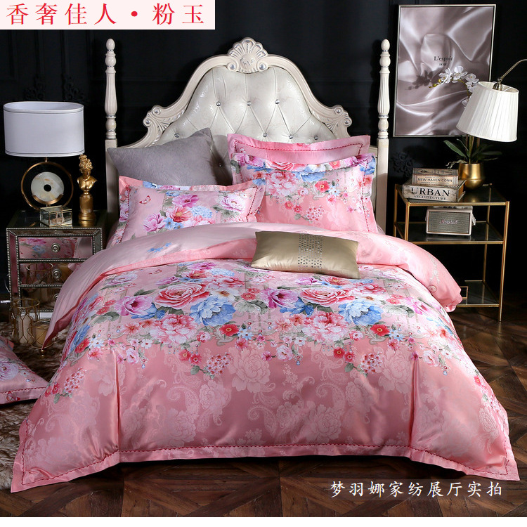 欧式贡缎提花全棉四件套纯棉4件套床上用品婚庆结婚送礼高档被套