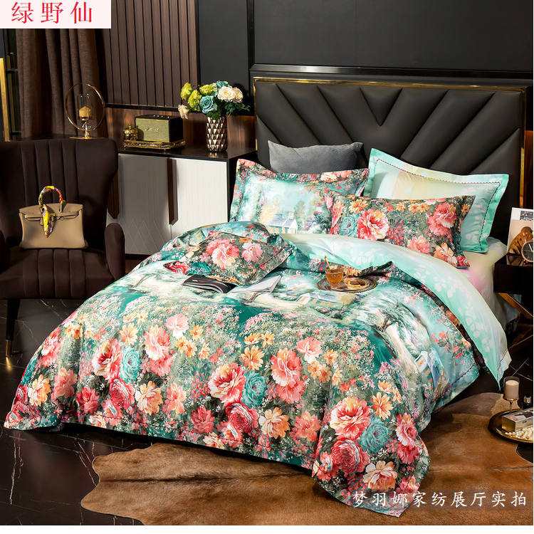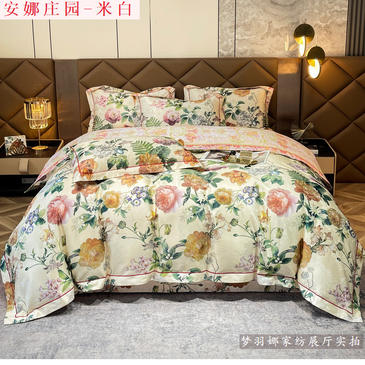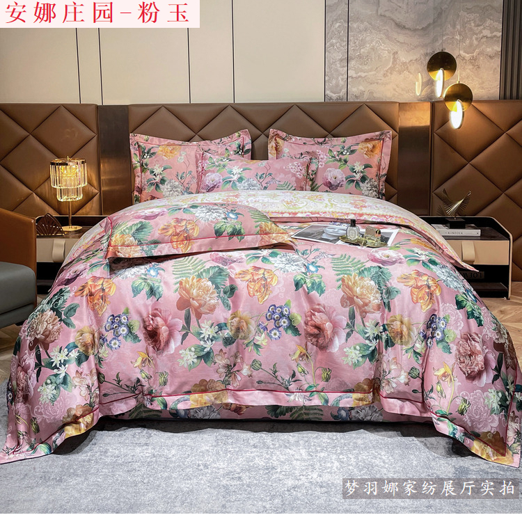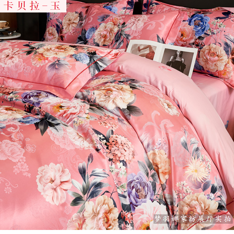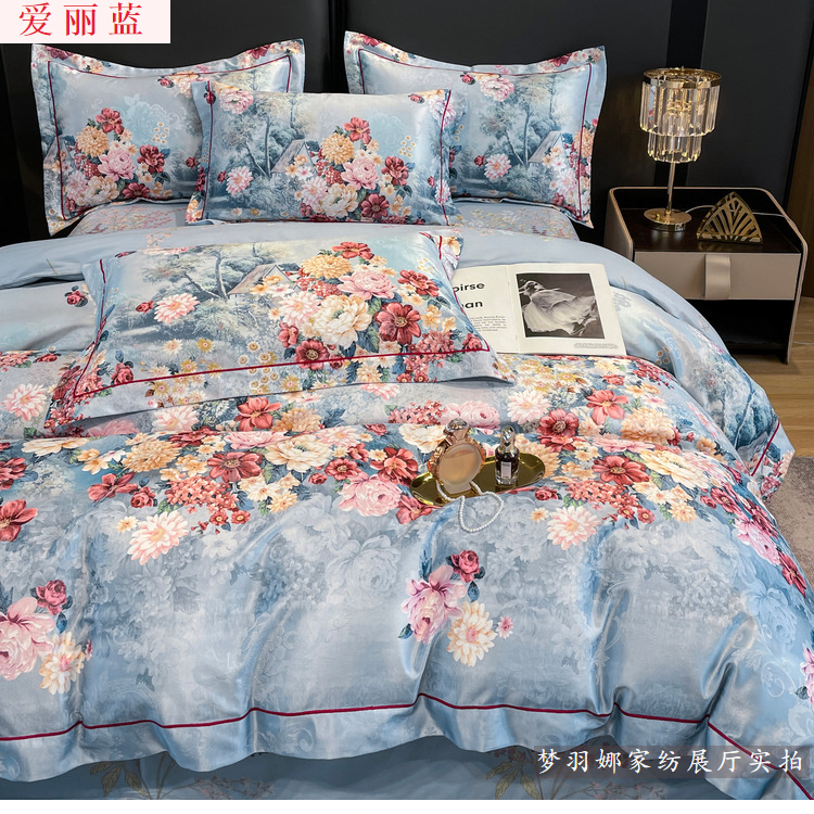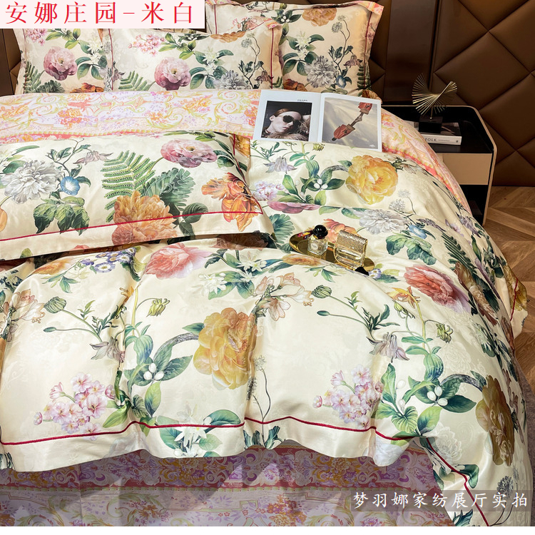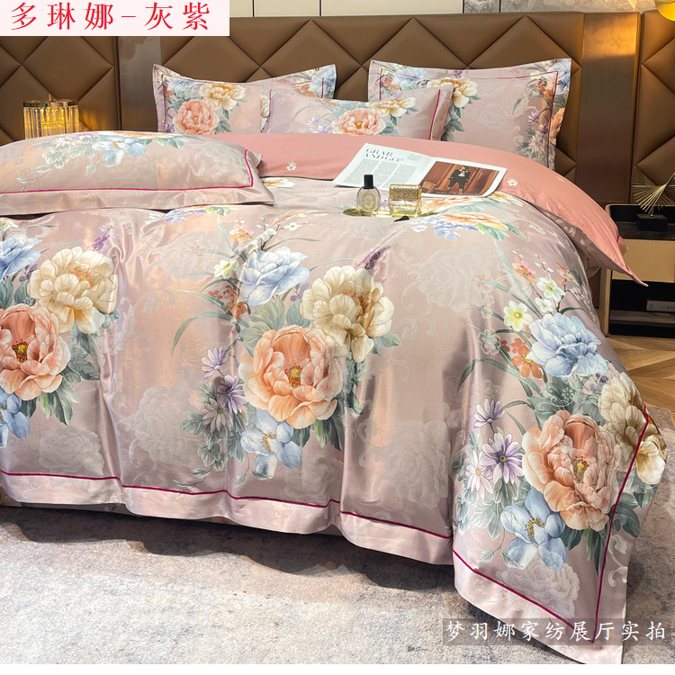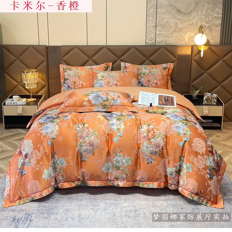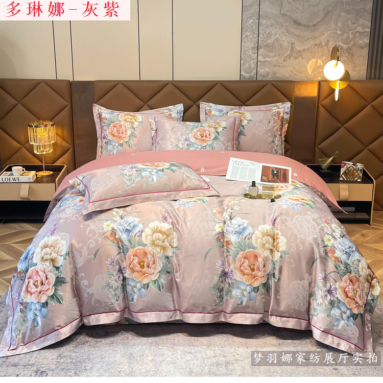 欧式贡缎提花全棉四件套纯棉4件套床上用品婚庆结婚送礼高档被套