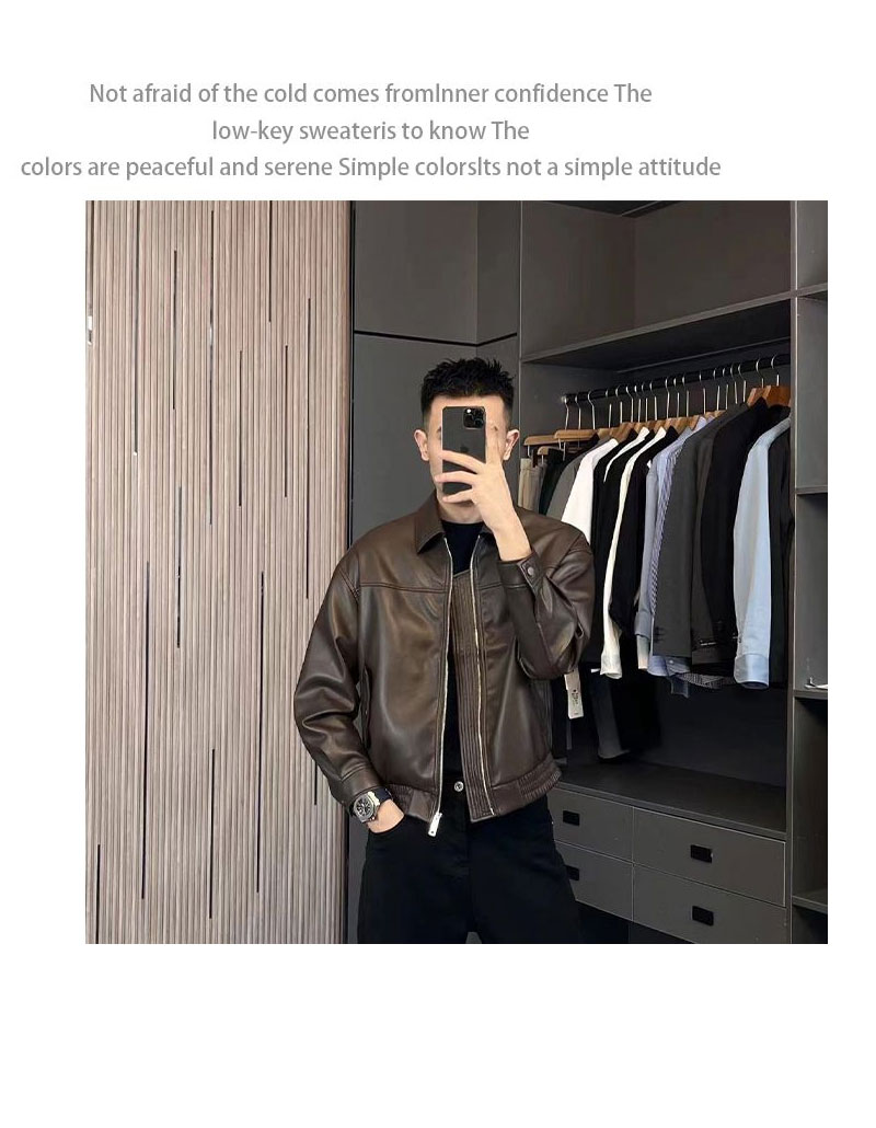 轻熟风皮夹克男春秋季翻领机车服痞帅气外套休闲高品质软皮衣潮牌