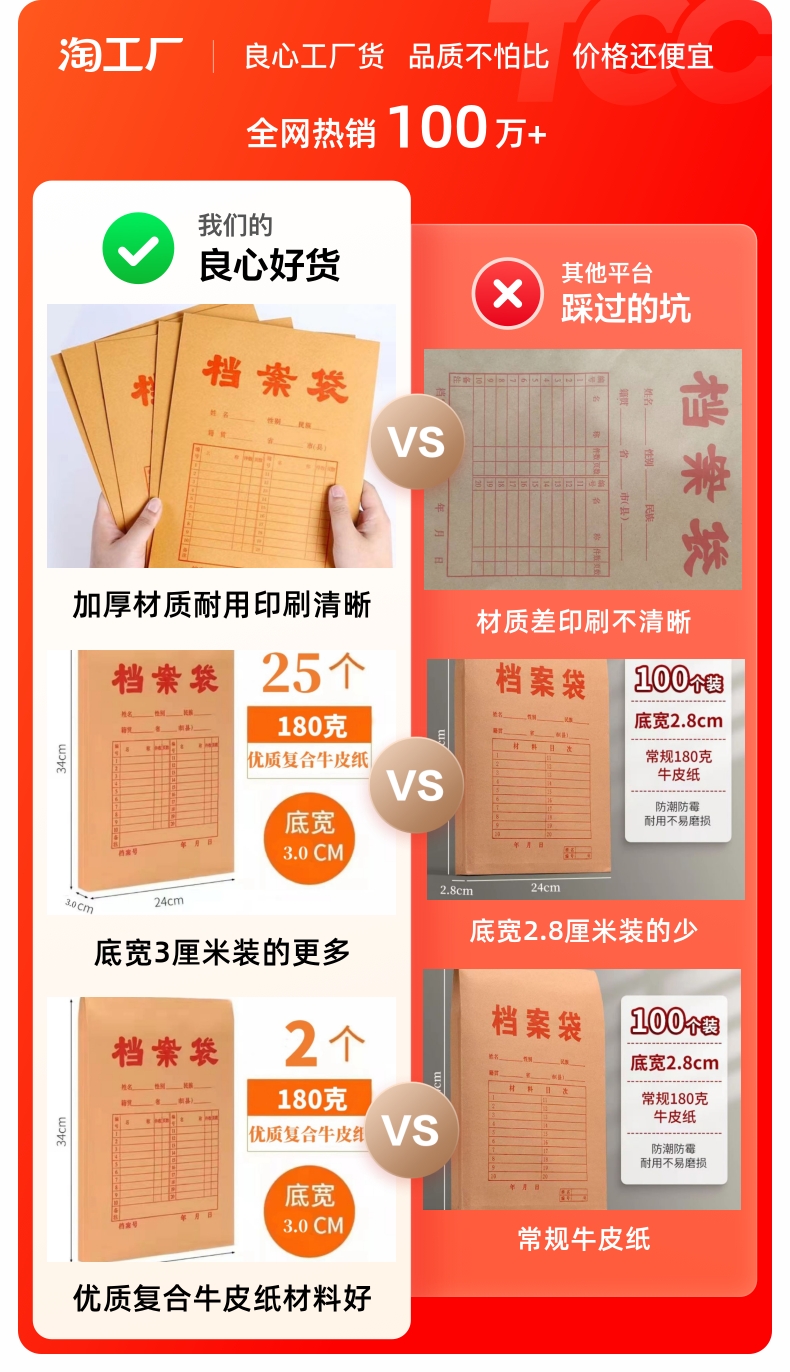 50/100个装牛皮纸档案袋a4纸文件袋文件夹文档收纳40mm30cm不易加厚投标合同资料批发大容量印刷logo房产防潮