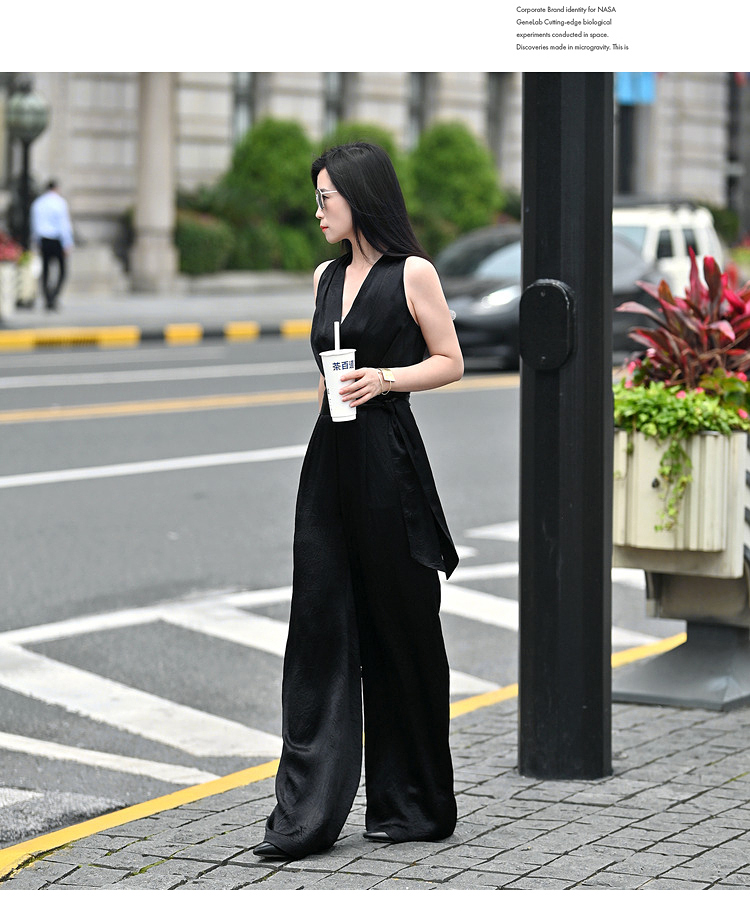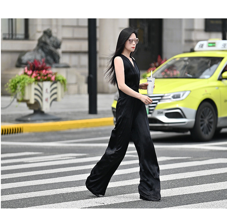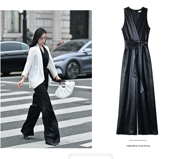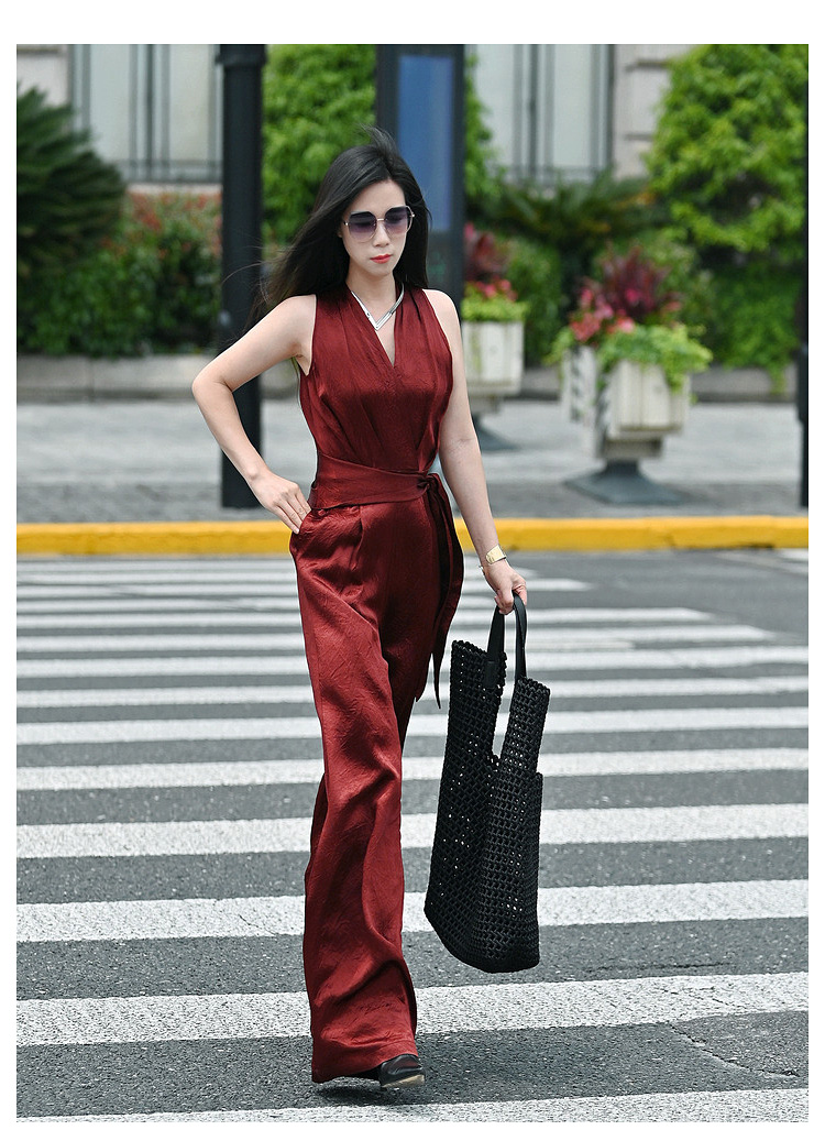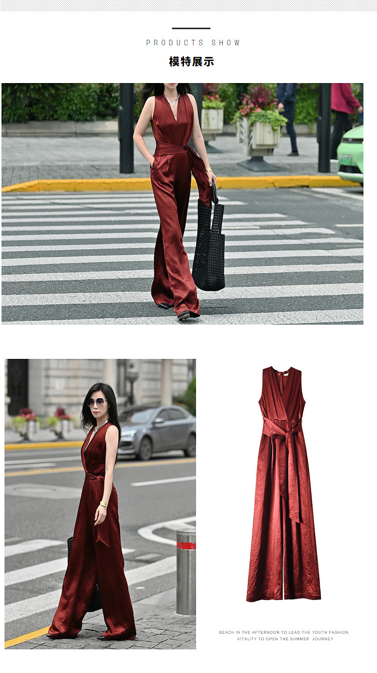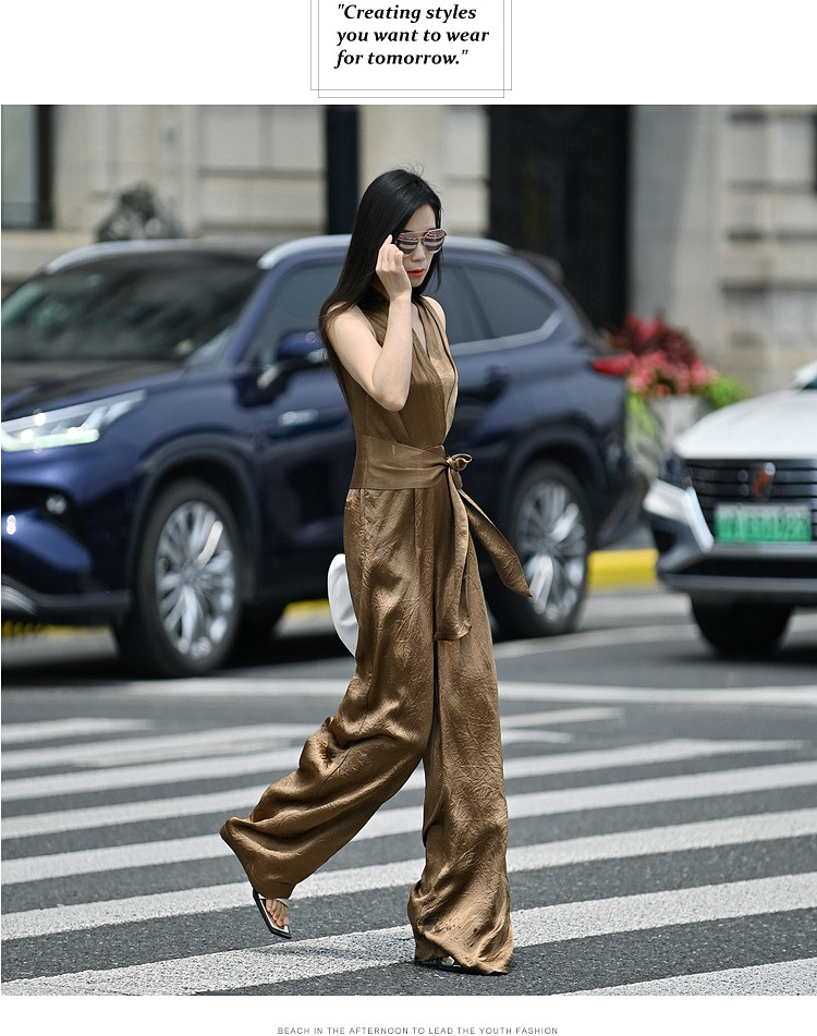 2025春夏新款进口三醋酸肌理感轻奢显瘦女无袖连体阔腿裤连身裤