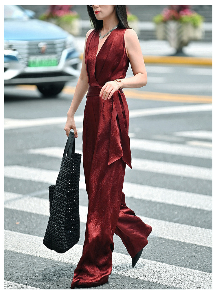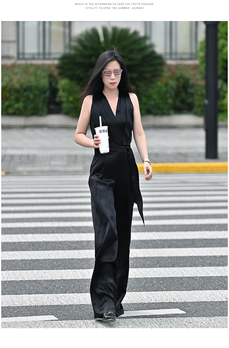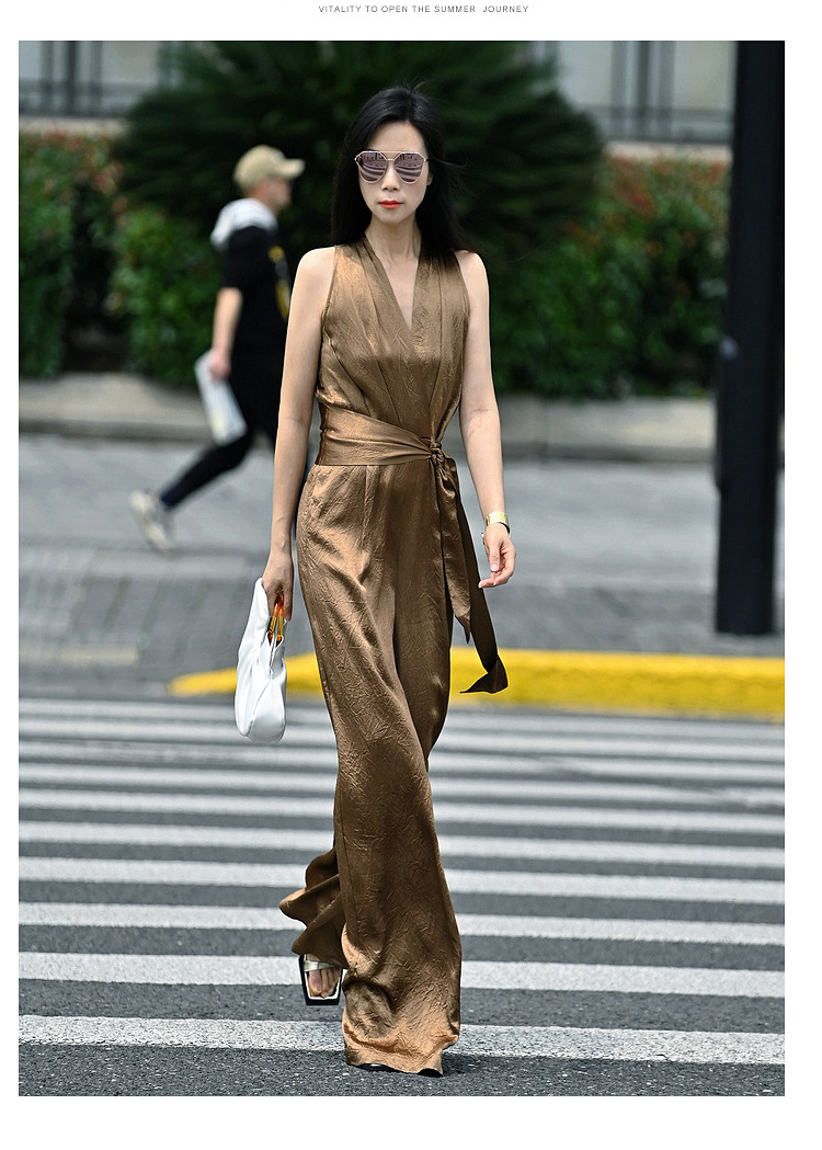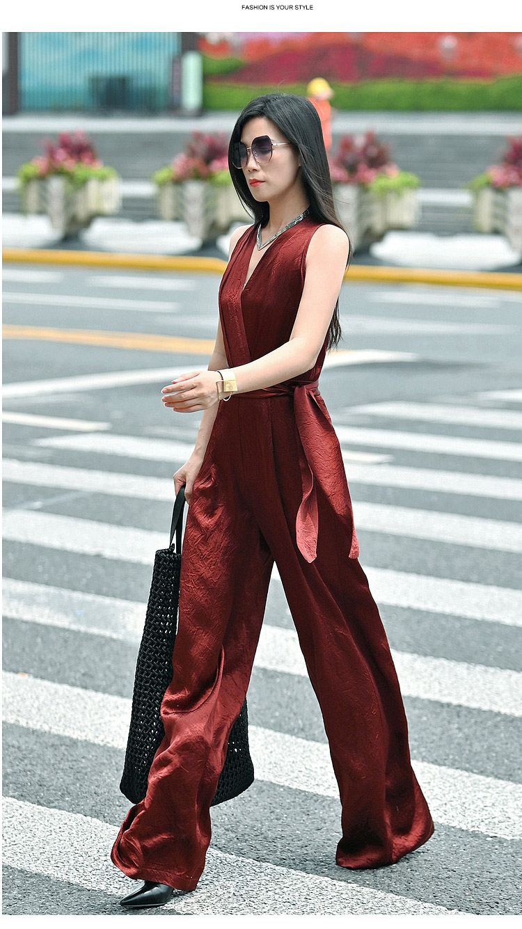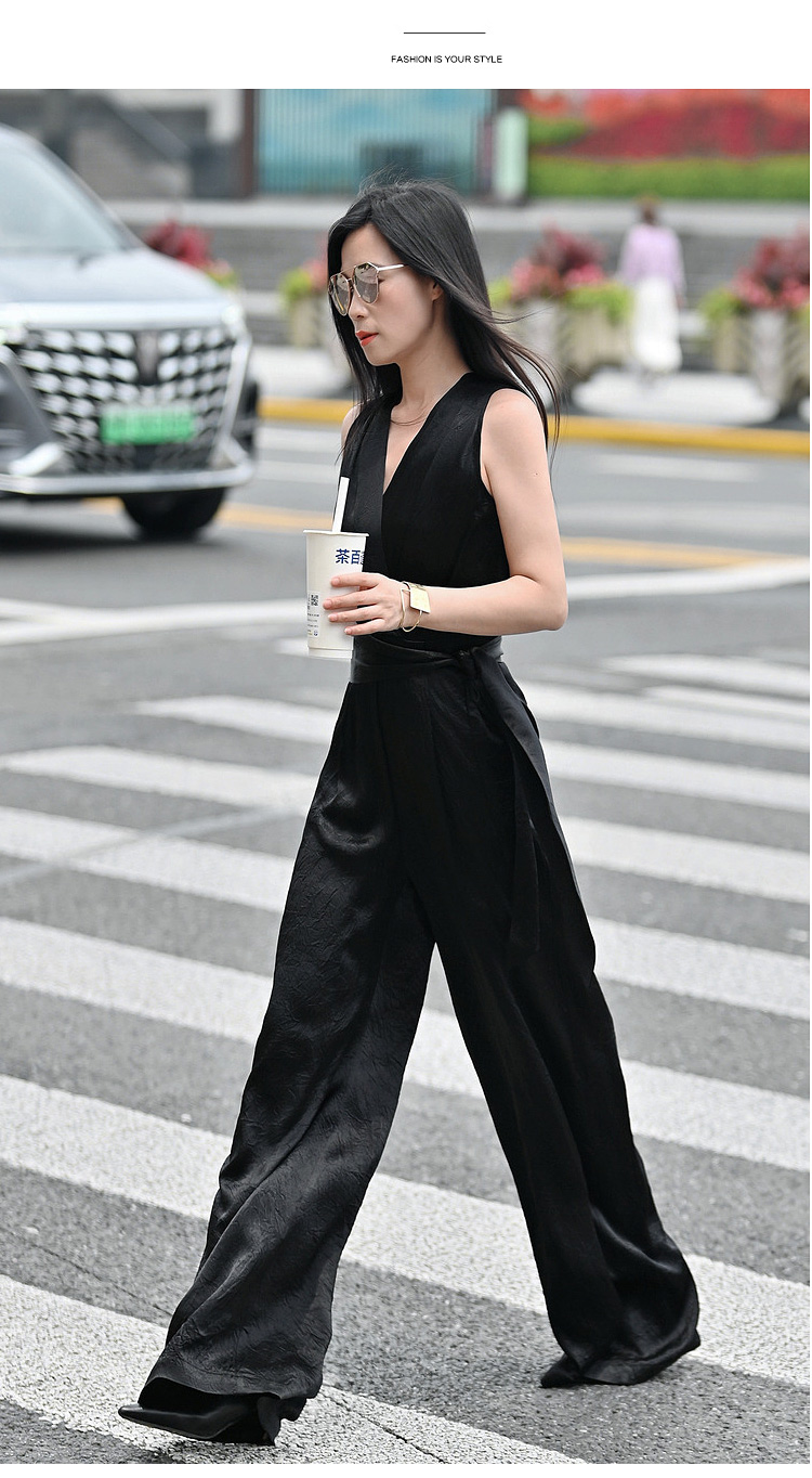 2025春夏新款进口三醋酸肌理感轻奢显瘦女无袖连体阔腿裤连身裤