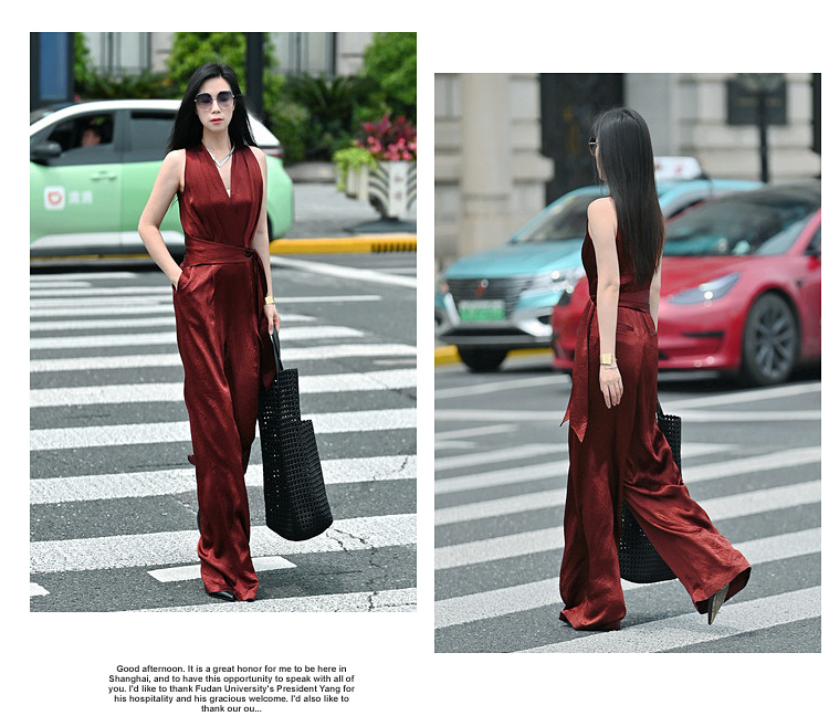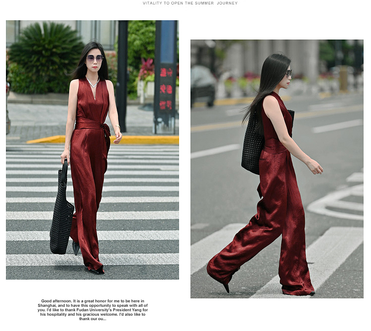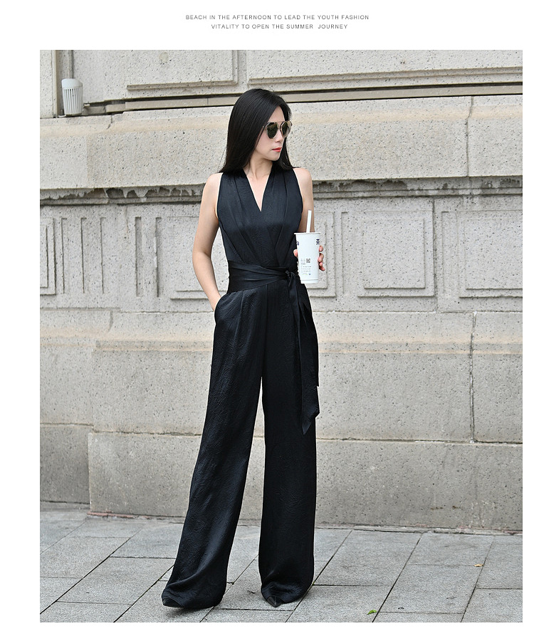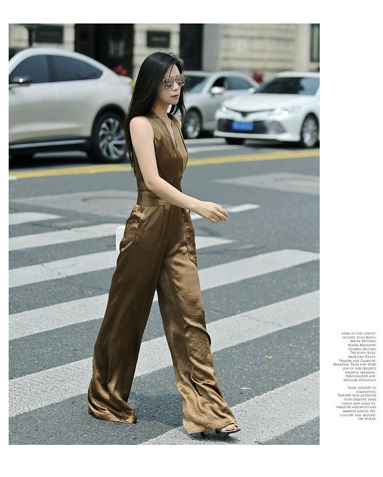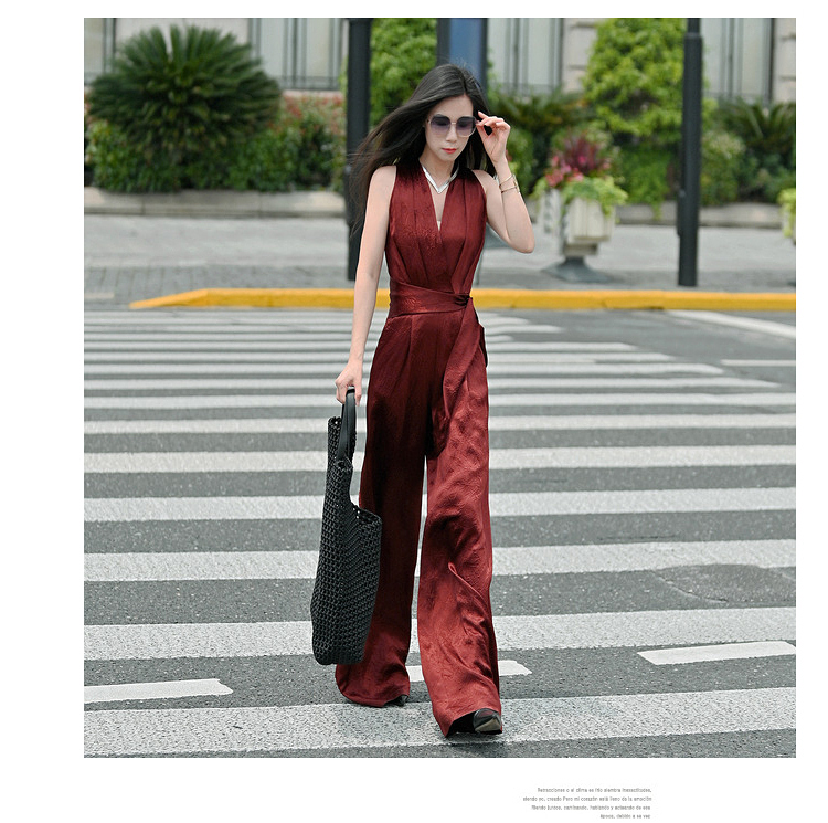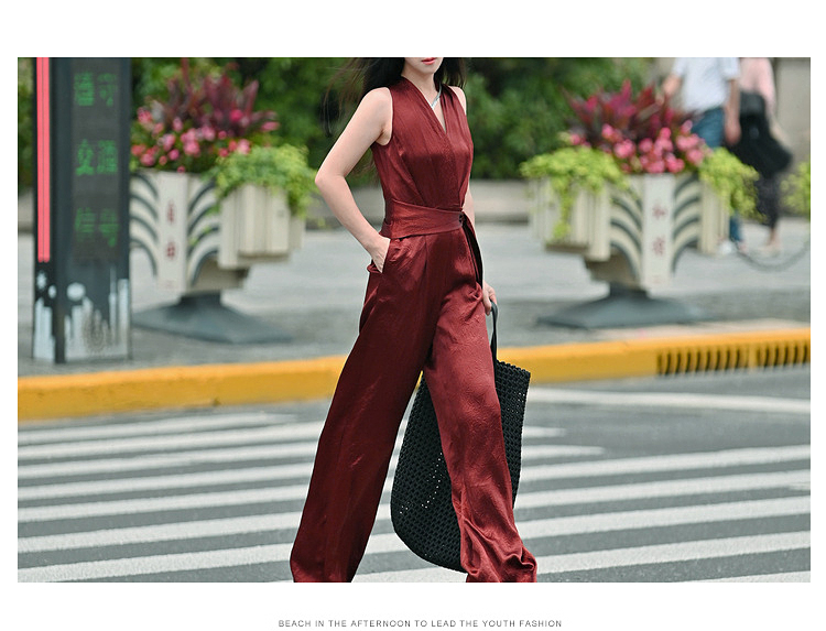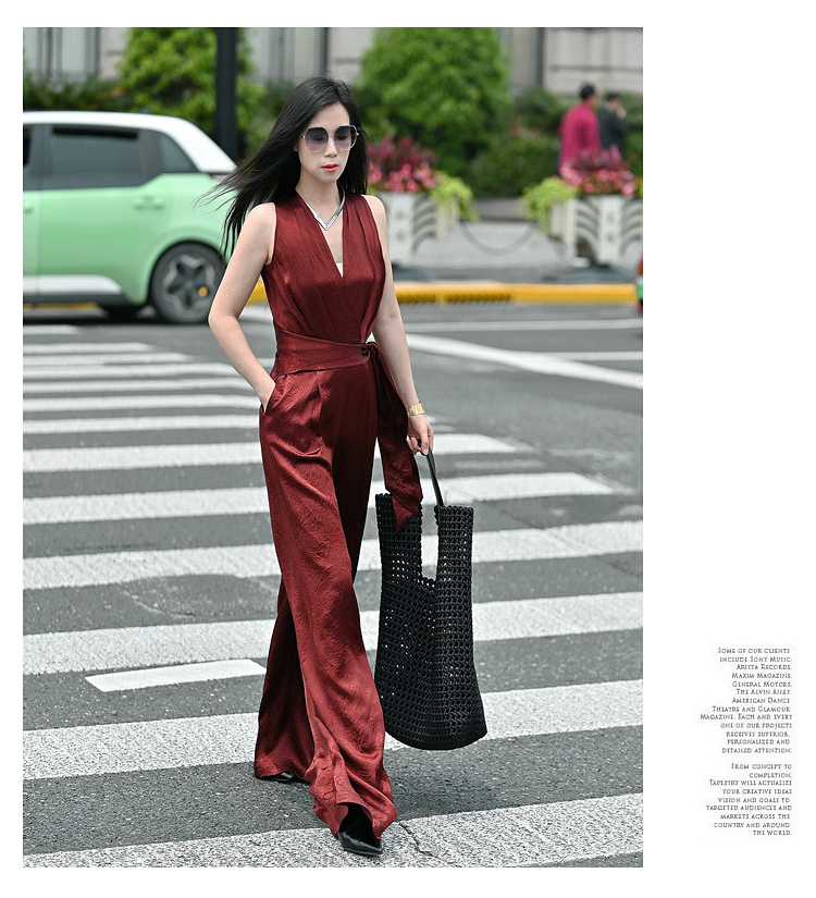 2025春夏新款进口三醋酸肌理感轻奢显瘦女无袖连体阔腿裤连身裤