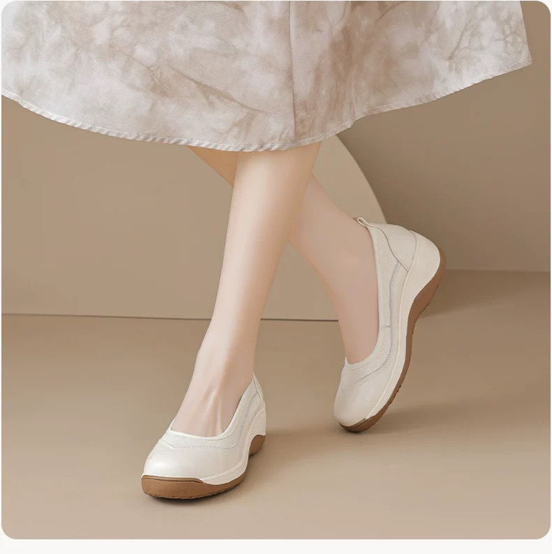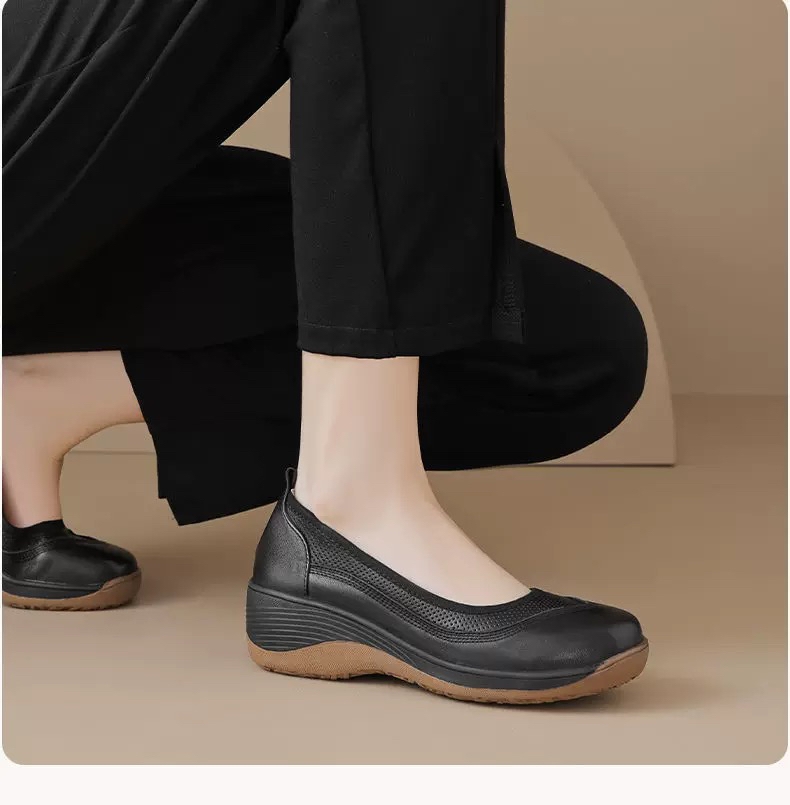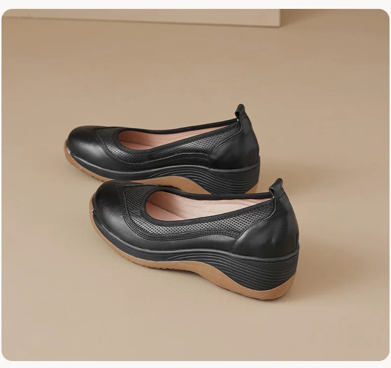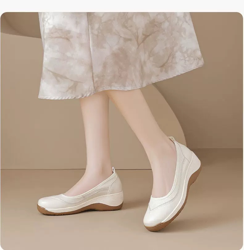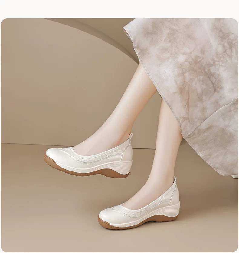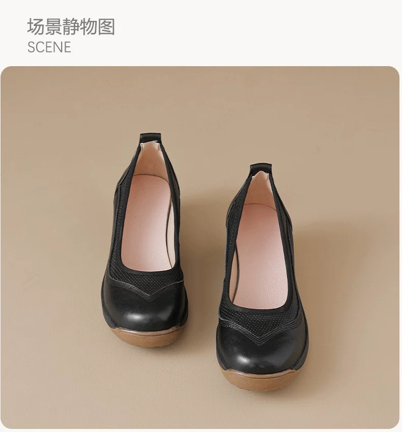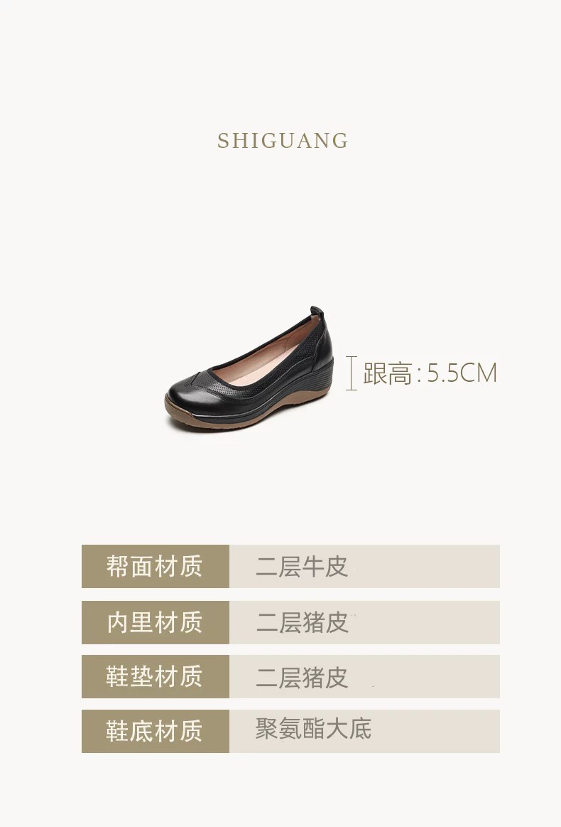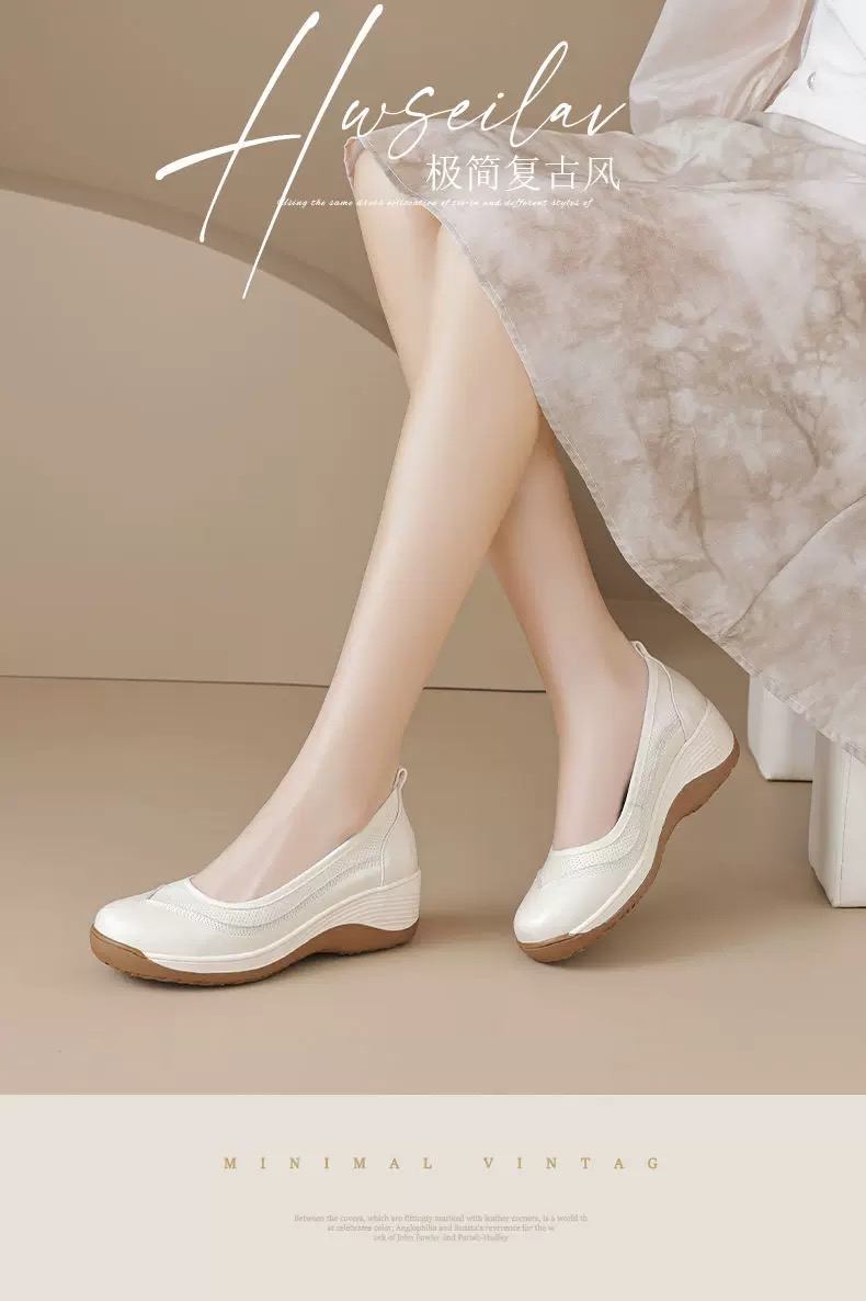 断码红青蜓真皮软底休闲单鞋女2024秋季新款厚底妈妈鞋浅口坡跟鞋