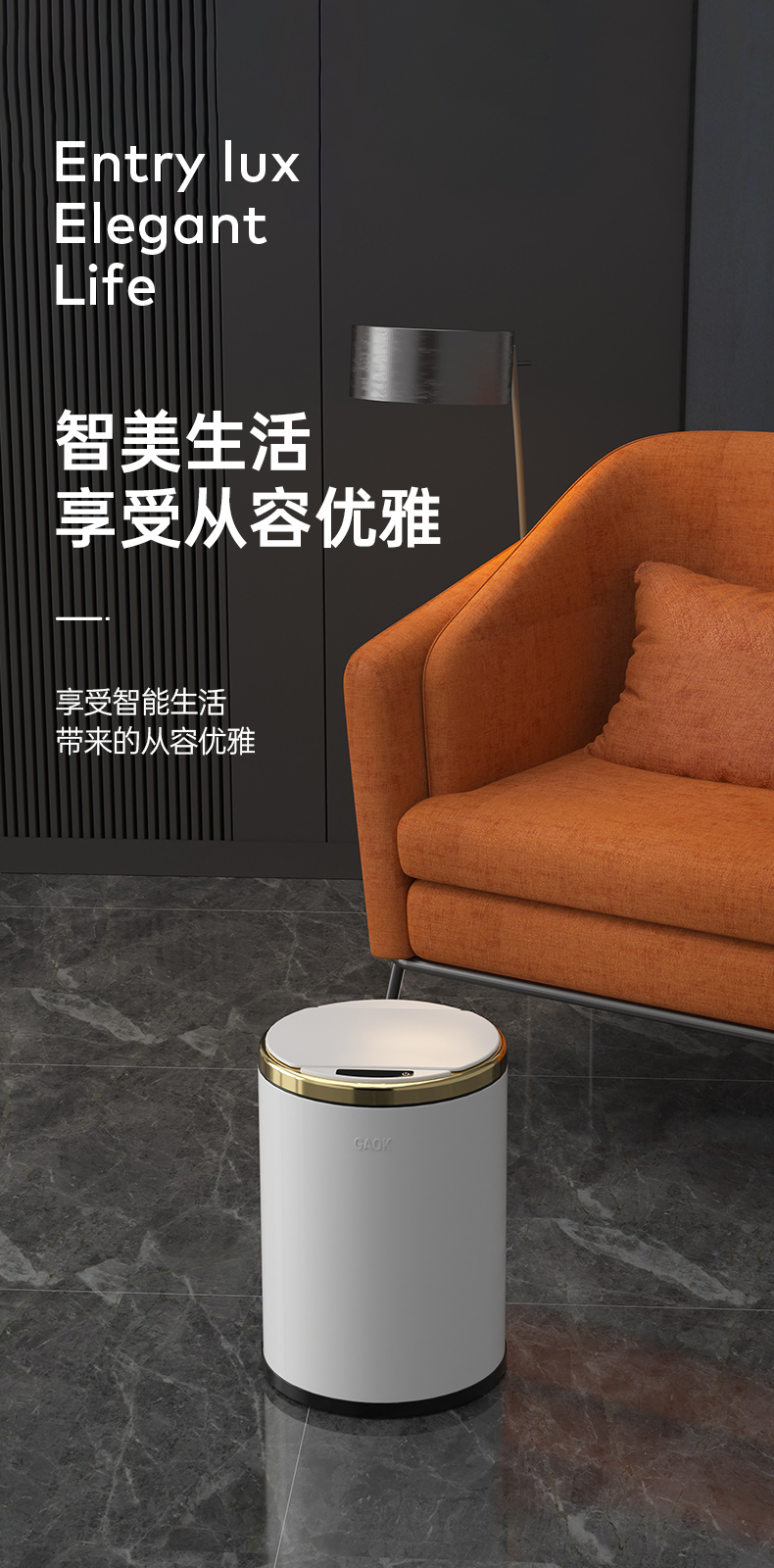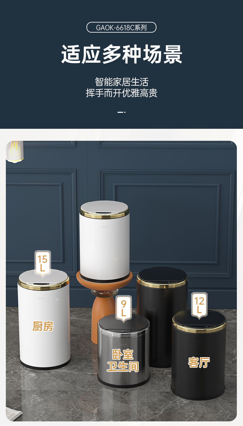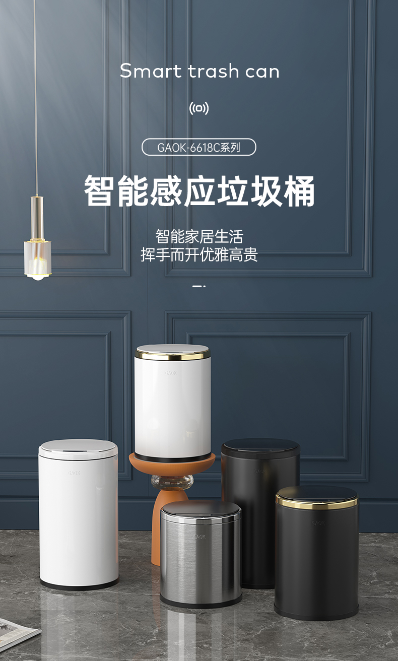 GAOK创意智能感应自动垃圾桶轻奢大容量简约卫生间客厅家用