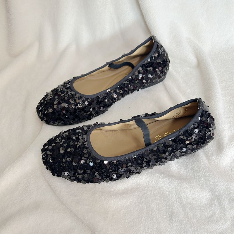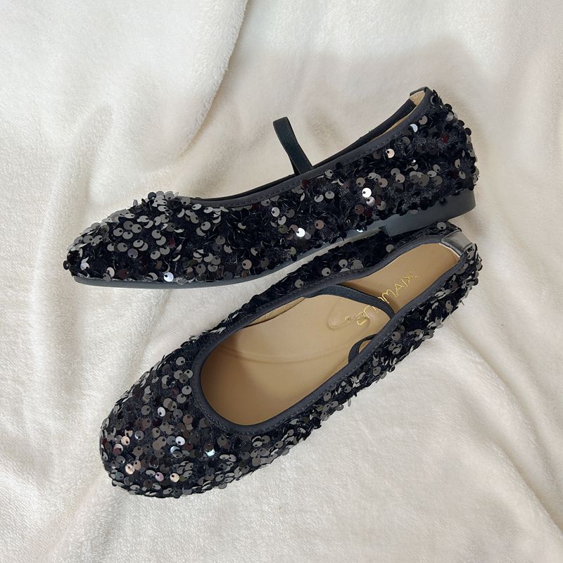 2025女豆豆鞋圆头繁花亮片3078-1舒适平底玛丽珍鞋单鞋浅口
