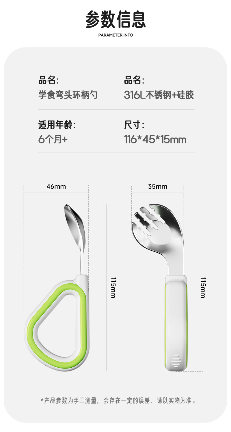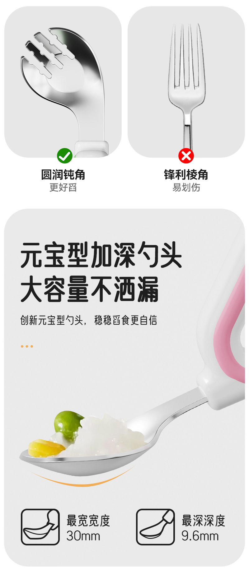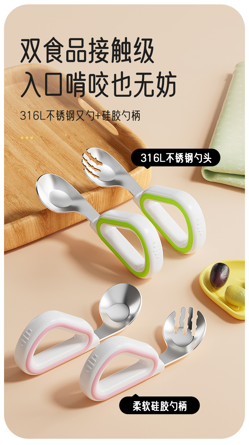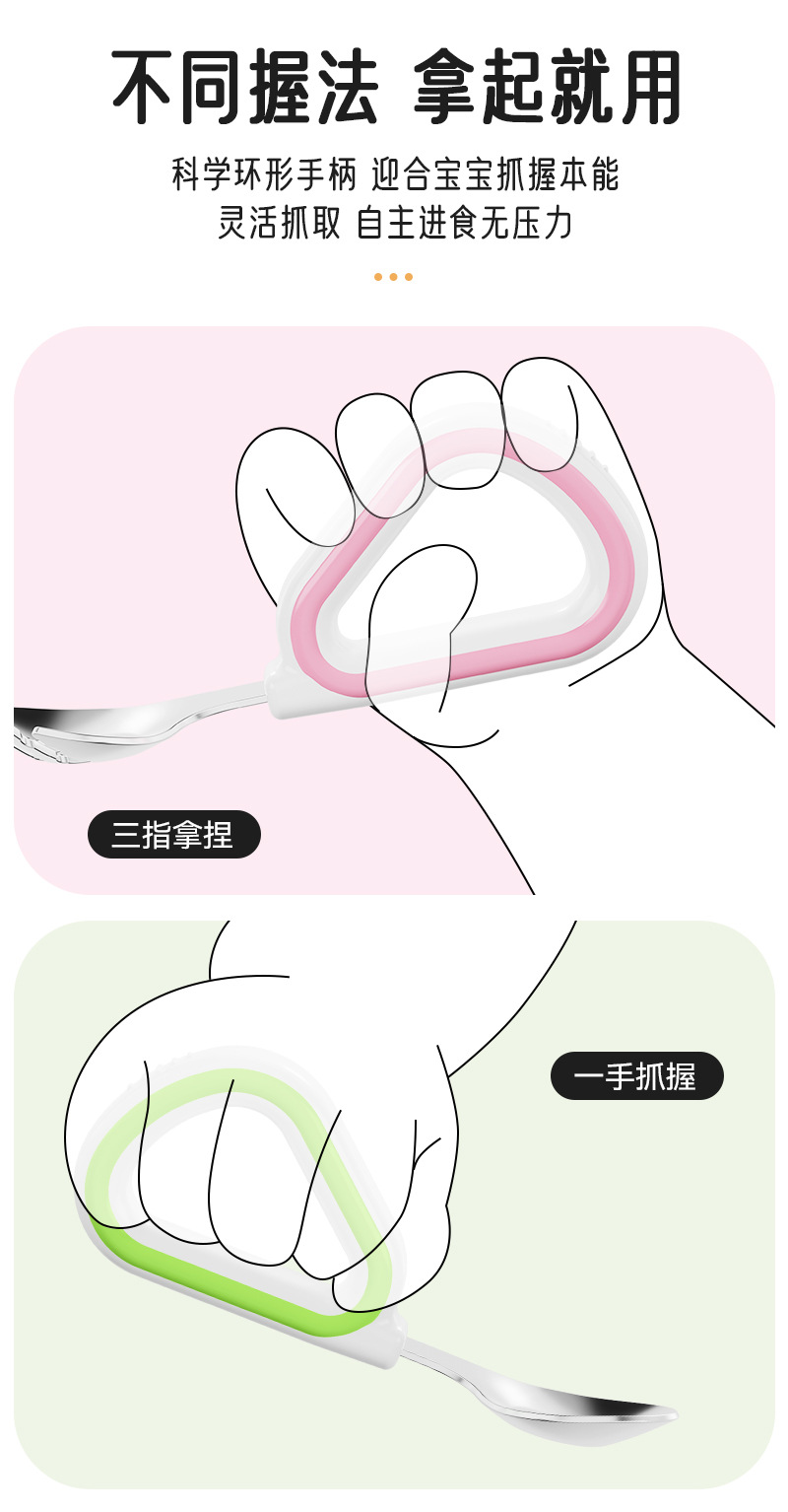 316L宝宝自主进食勺子婴儿学吃饭儿童不锈钢餐具辅食元宝训练勺叉