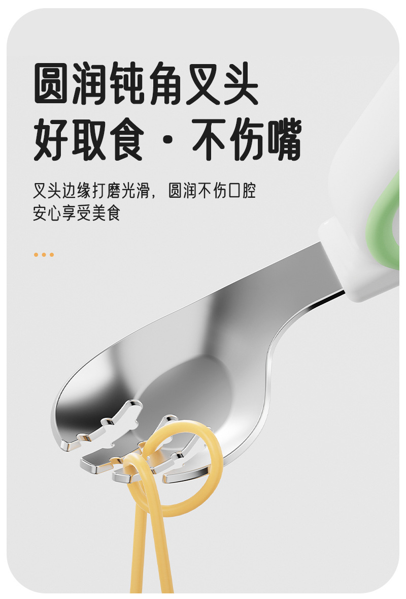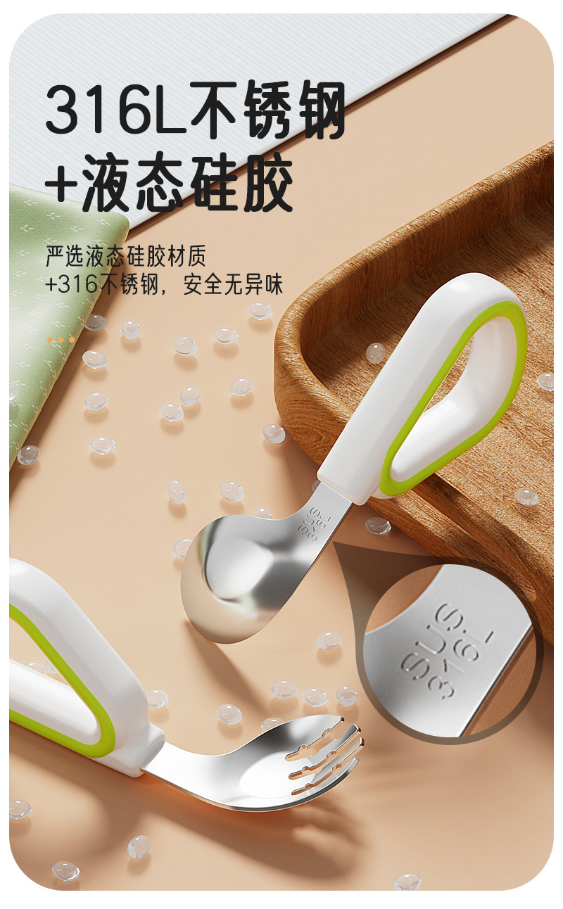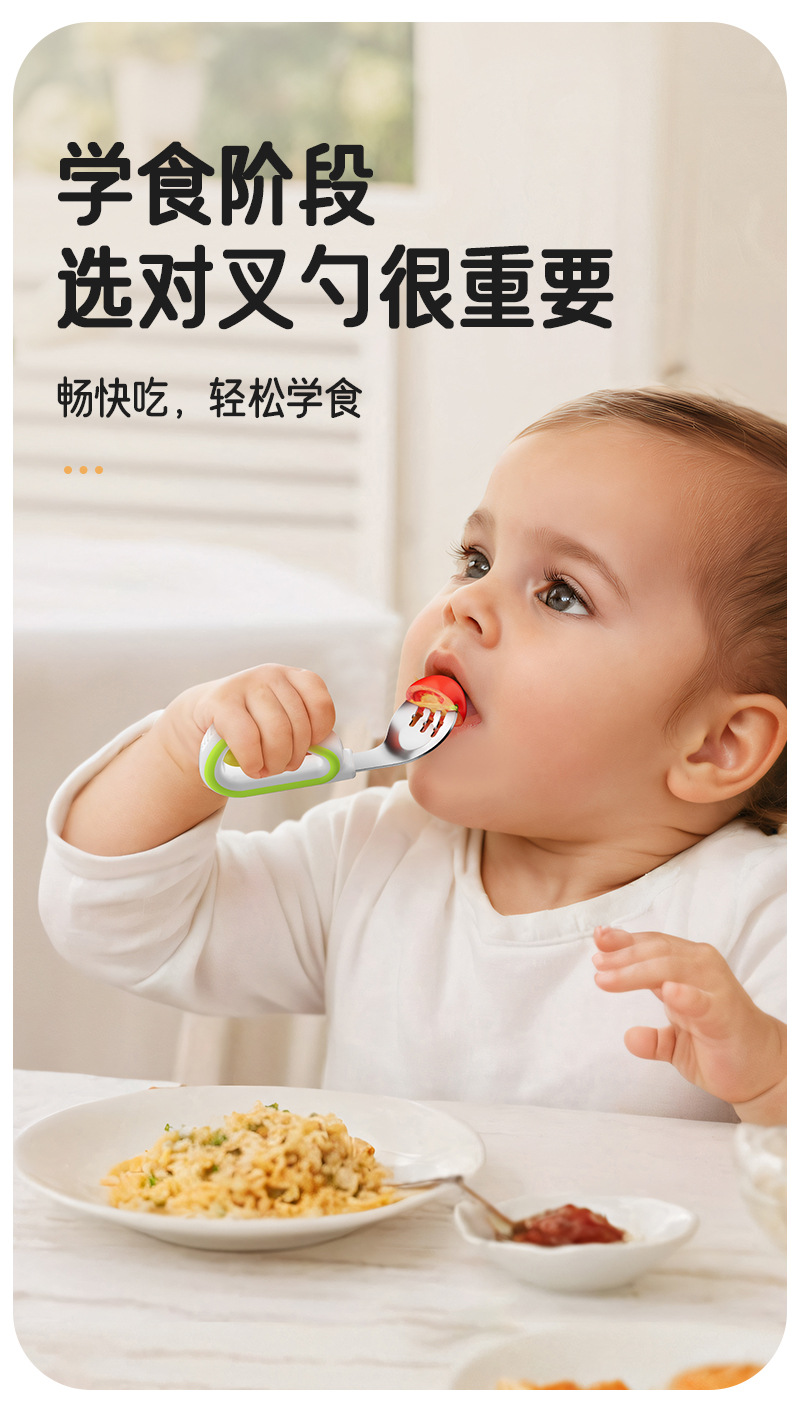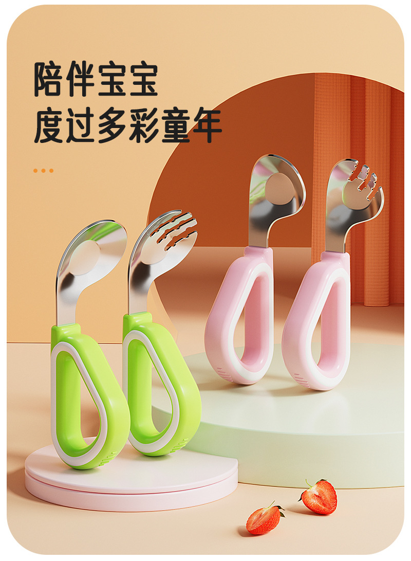 316L宝宝自主进食勺子婴儿学吃饭儿童不锈钢餐具辅食元宝训练勺叉