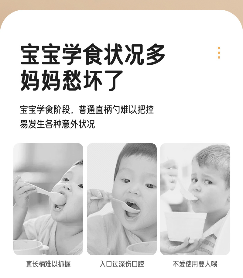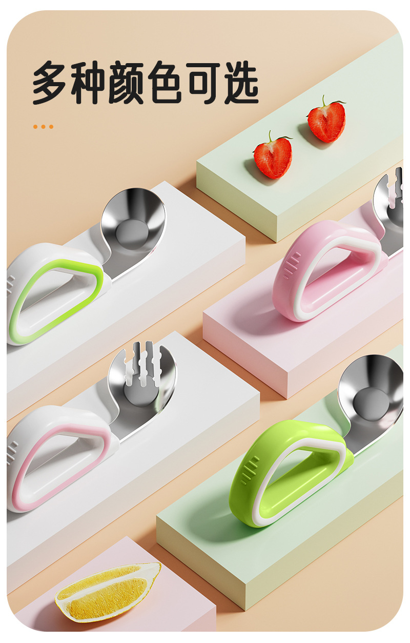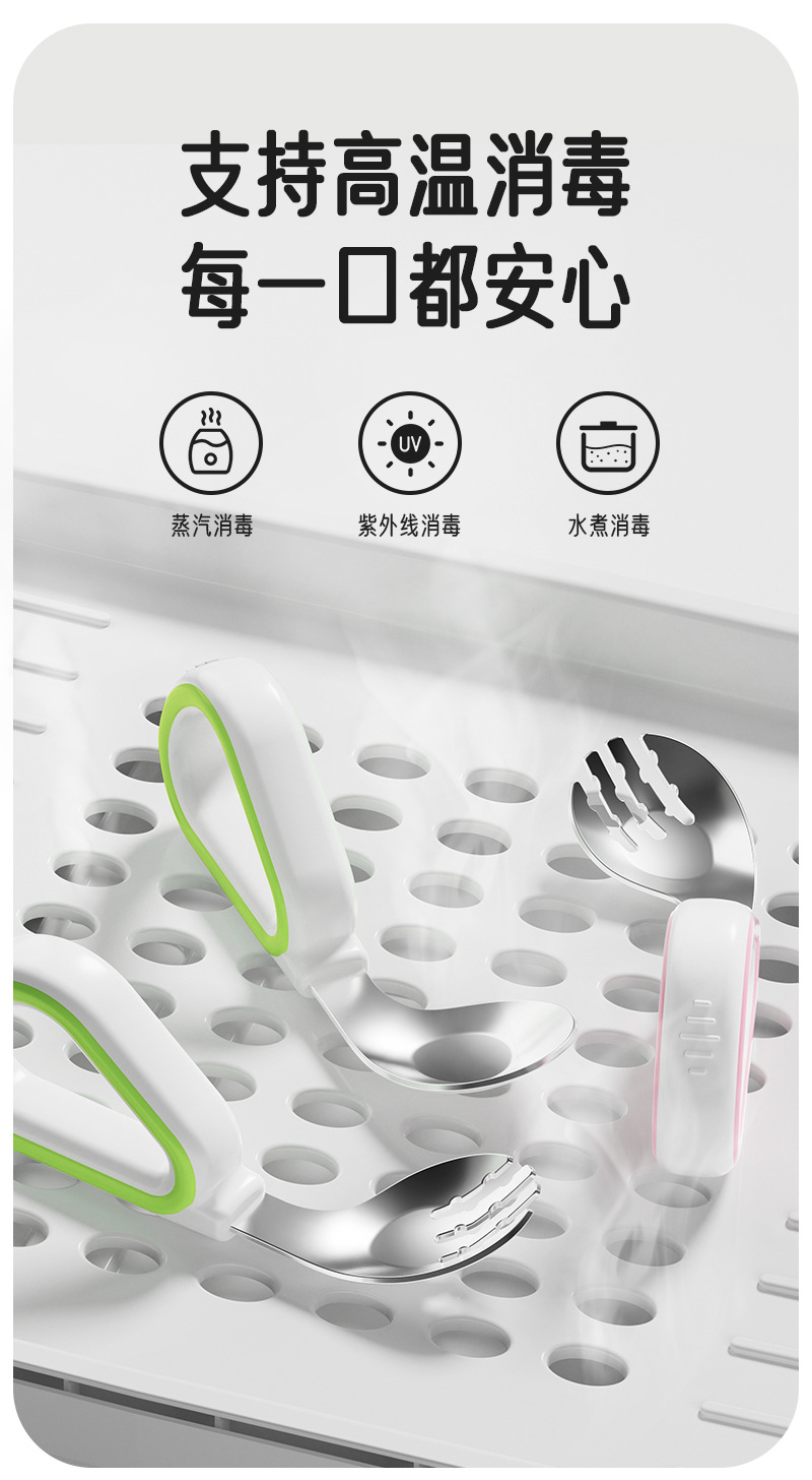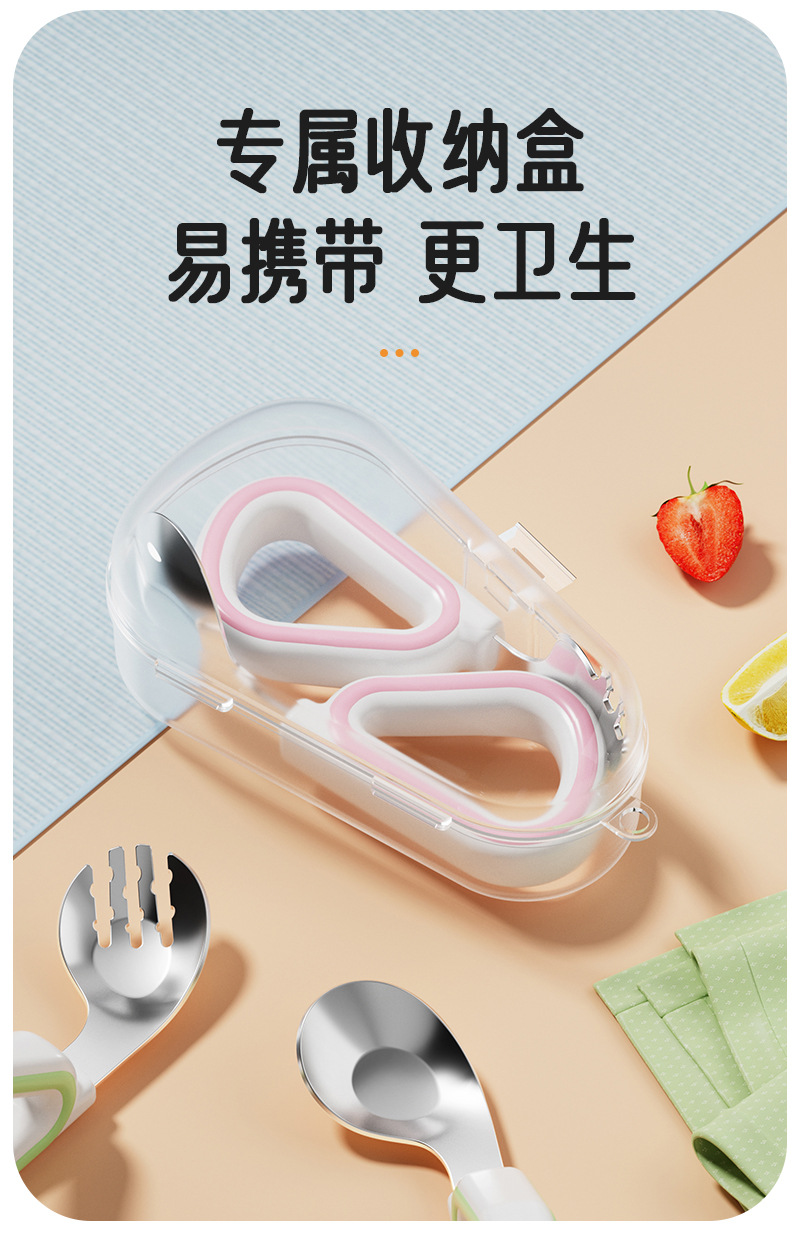316L宝宝自主进食勺子婴儿学吃饭儿童不锈钢餐具辅食元宝训练勺叉
