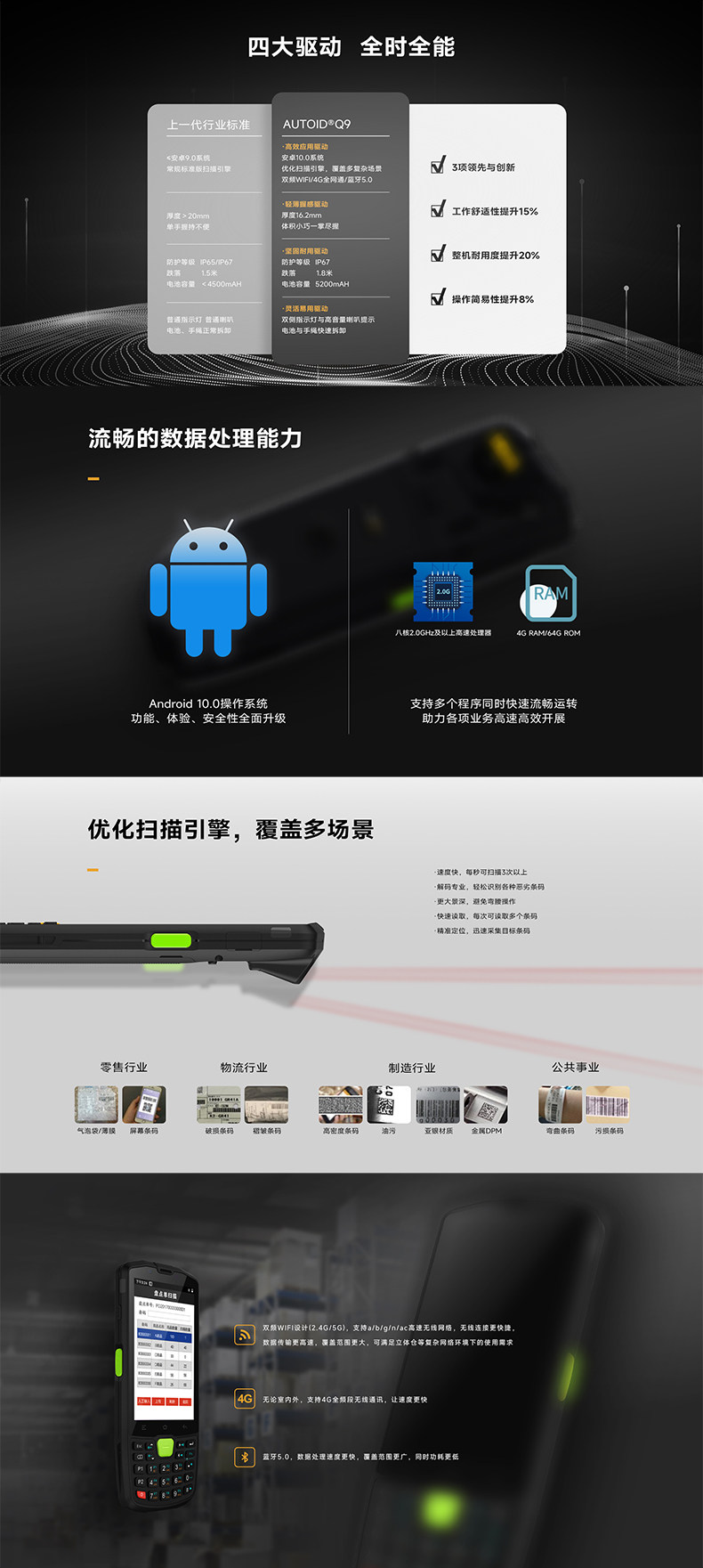 Seuic东集pda手持终端AUTOID Q9安卓数据采集器仓库盘点机出入库扫码机仓储制造工业手持机扫描巴枪通用