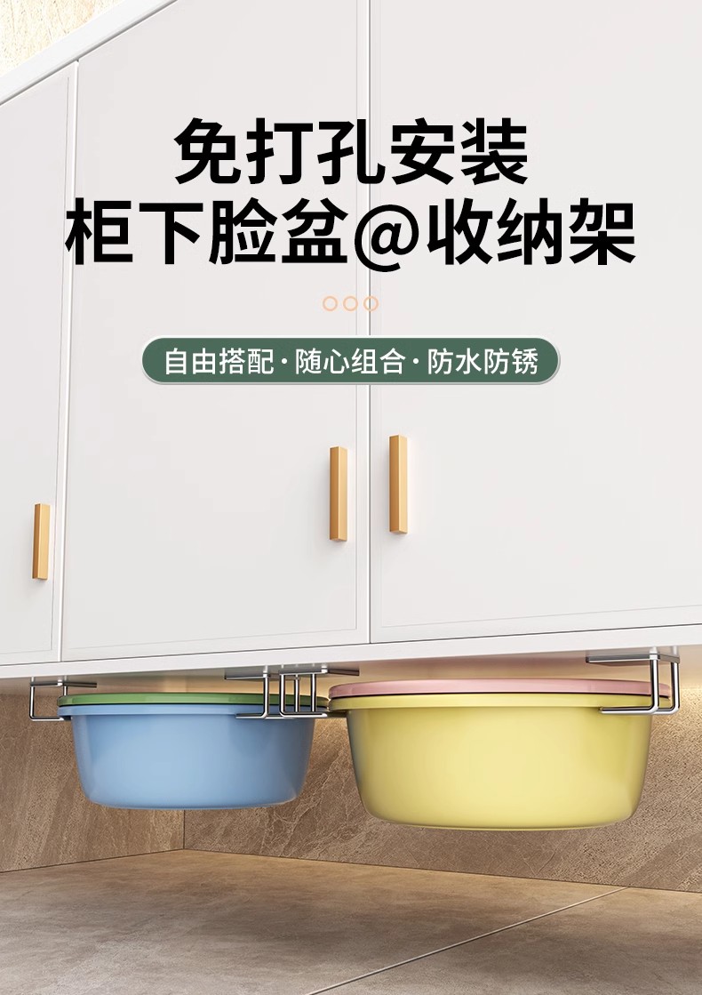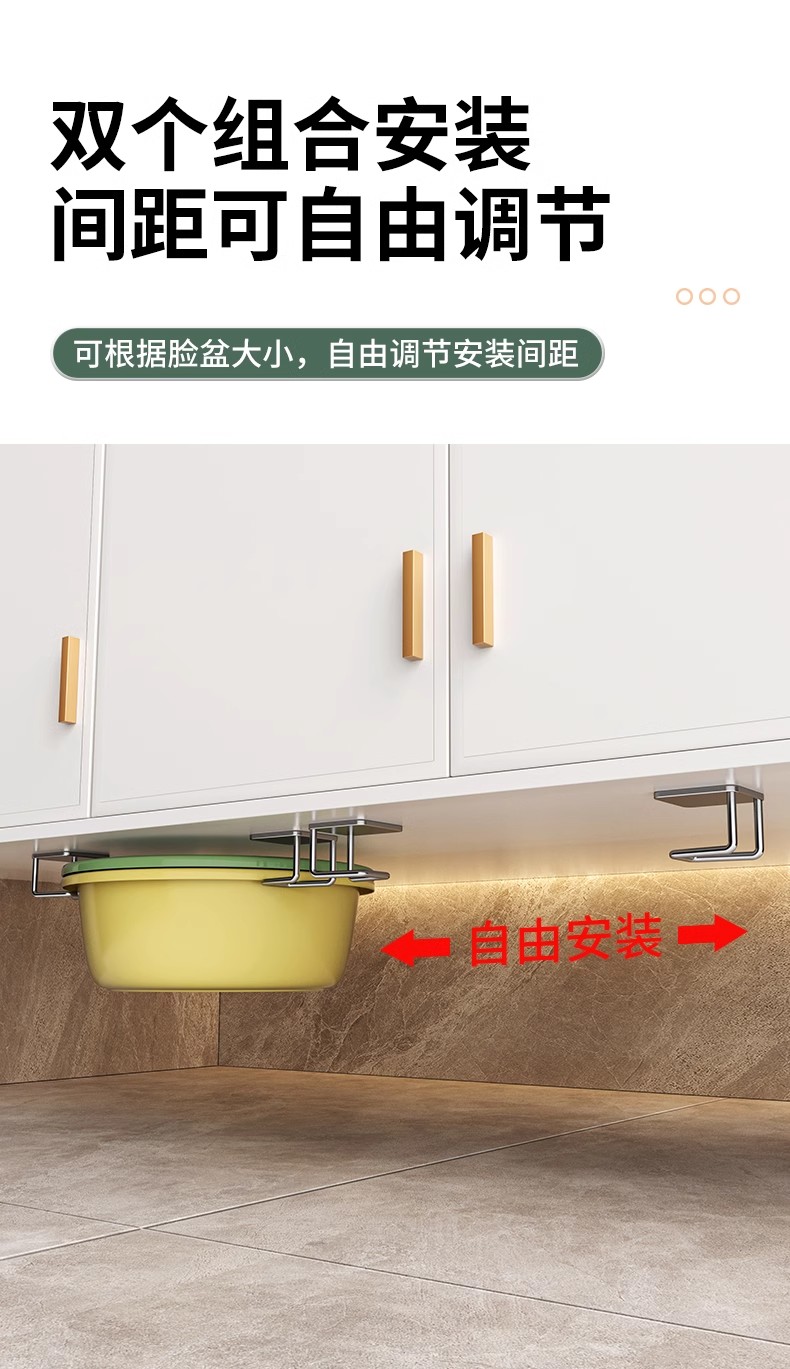 脸盆收纳架盆子浴室柜下盆架卫生间置物架免打孔挂钩壁挂不锈钢
