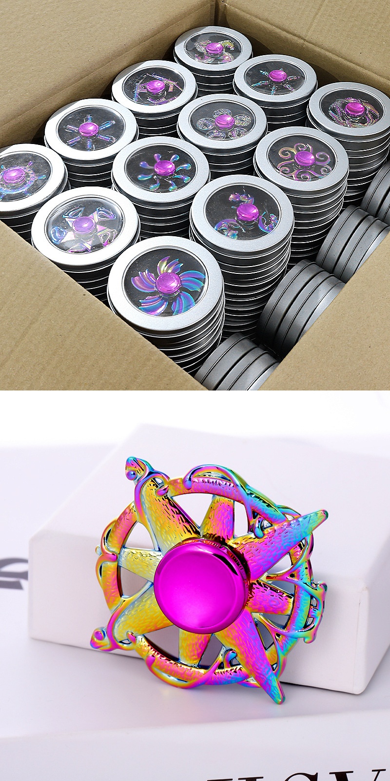 新款陀螺玩具旋转指尖陀螺金属盒装炫彩合金指间陀螺男孩玩具减压