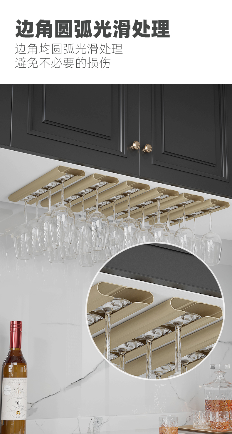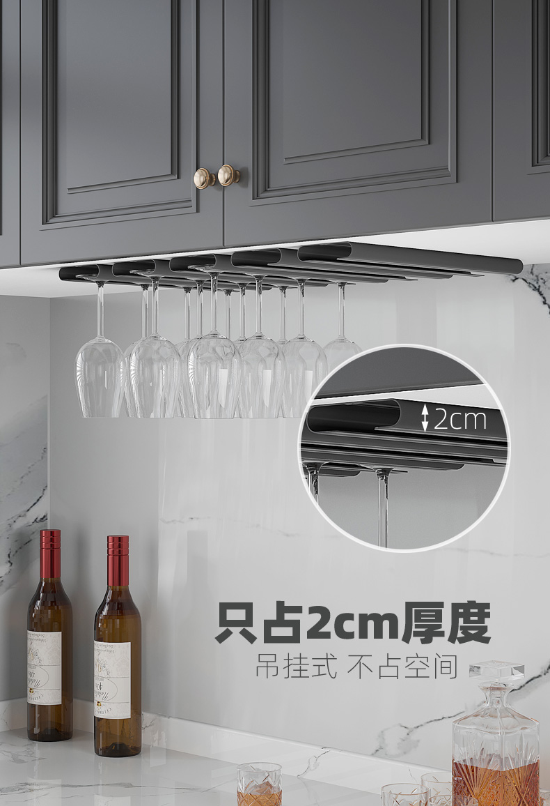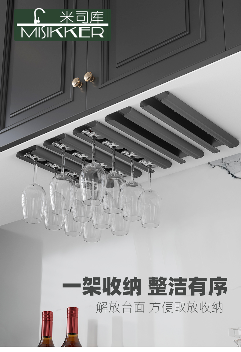米司库悬挂吊装酒杯架铝合金高脚酒杯倒挂收纳架酒柜顶装红酒杯架