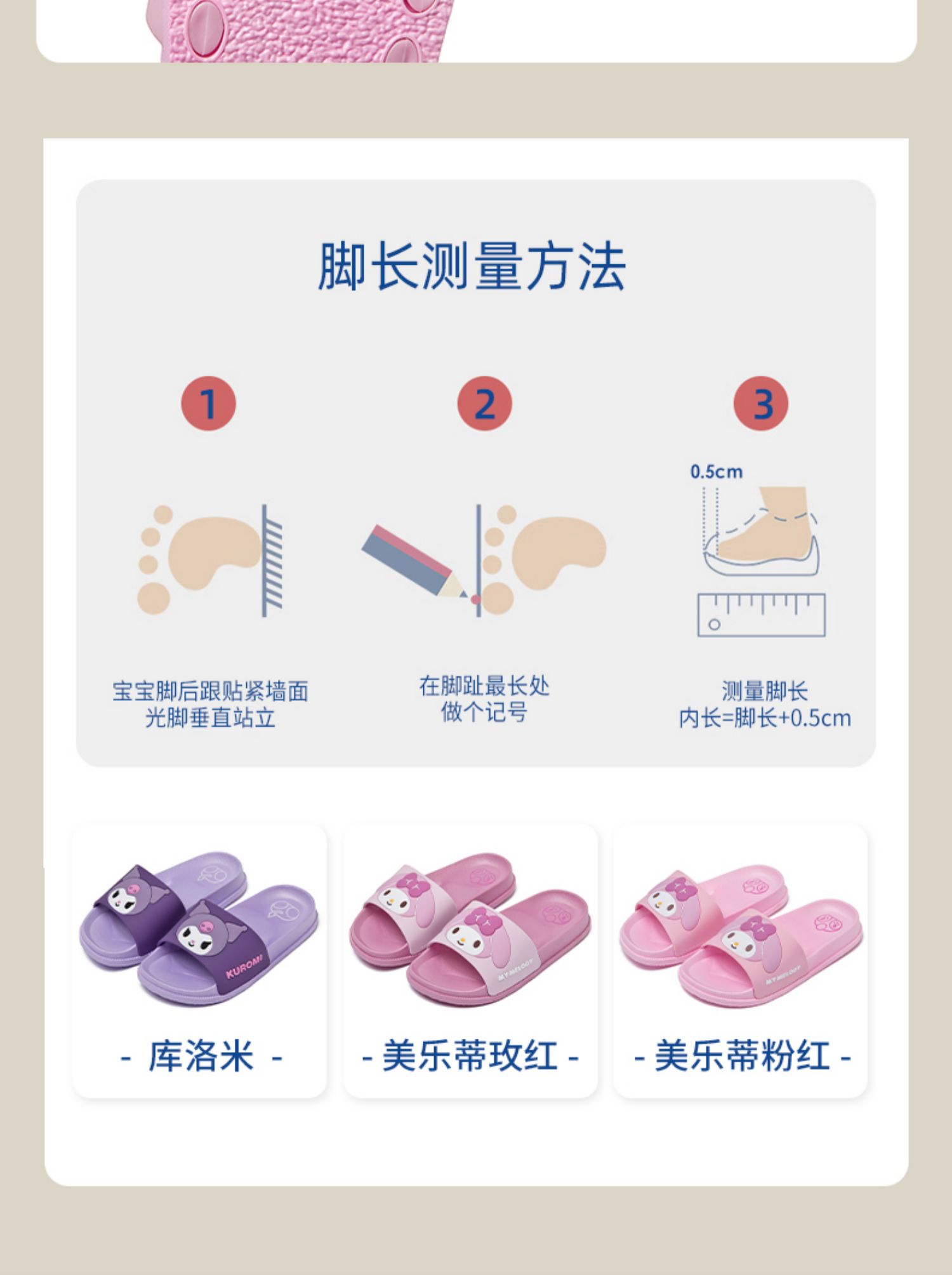 三丽鸥库洛米儿童拖鞋夏季防滑大童亲子女孩平底拖宝宝浴室凉拖鞋