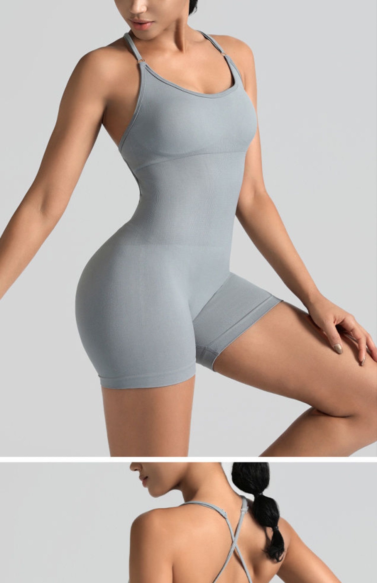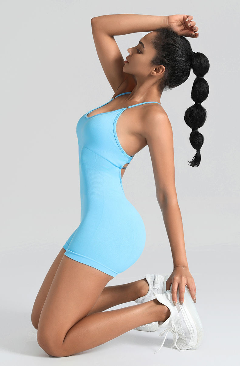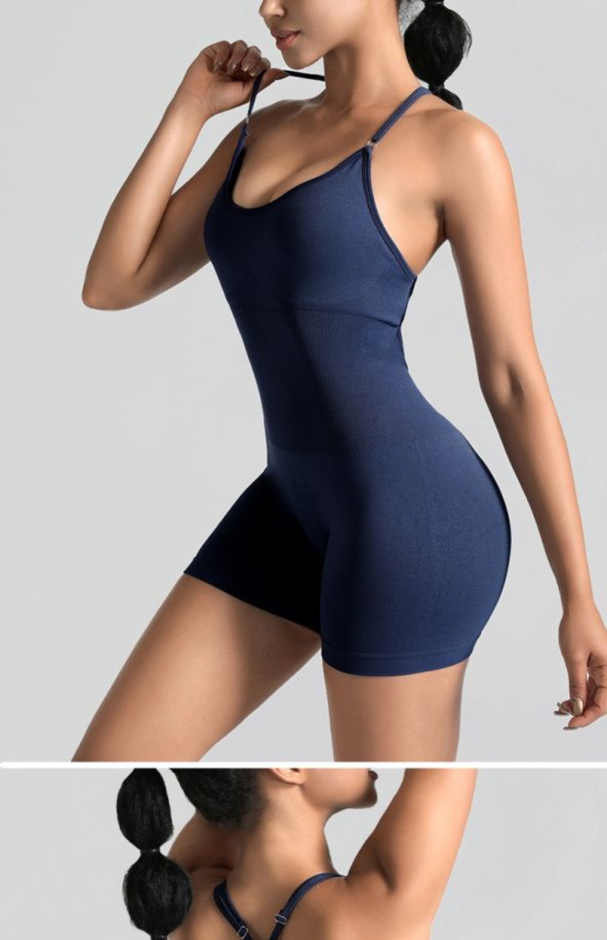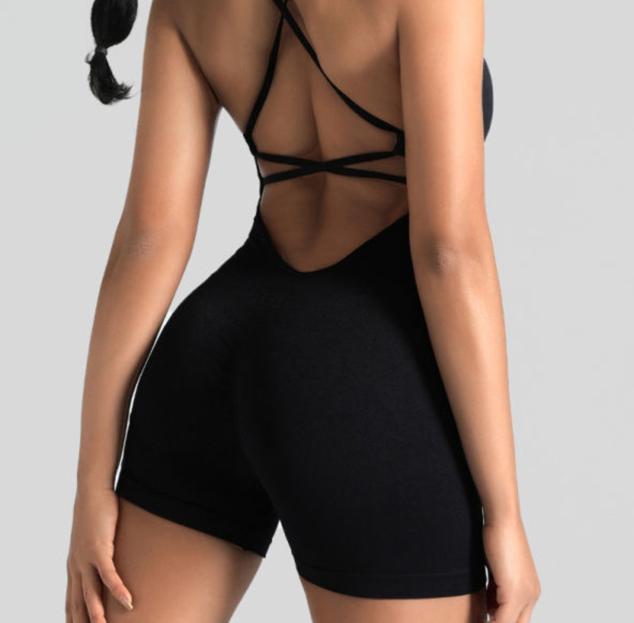性感露背镂空一体式健身服紧身速干运动黑色修身美背连体衣瑜伽服