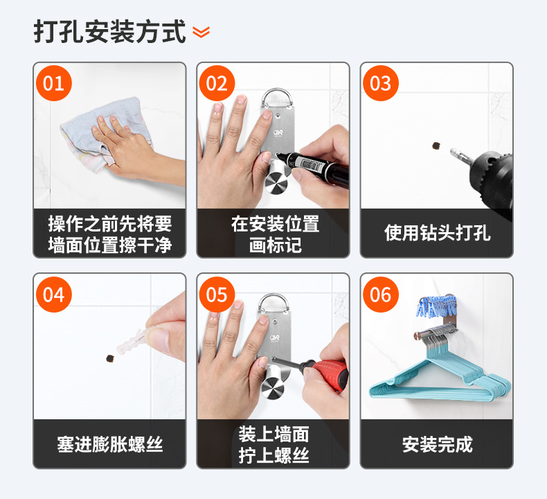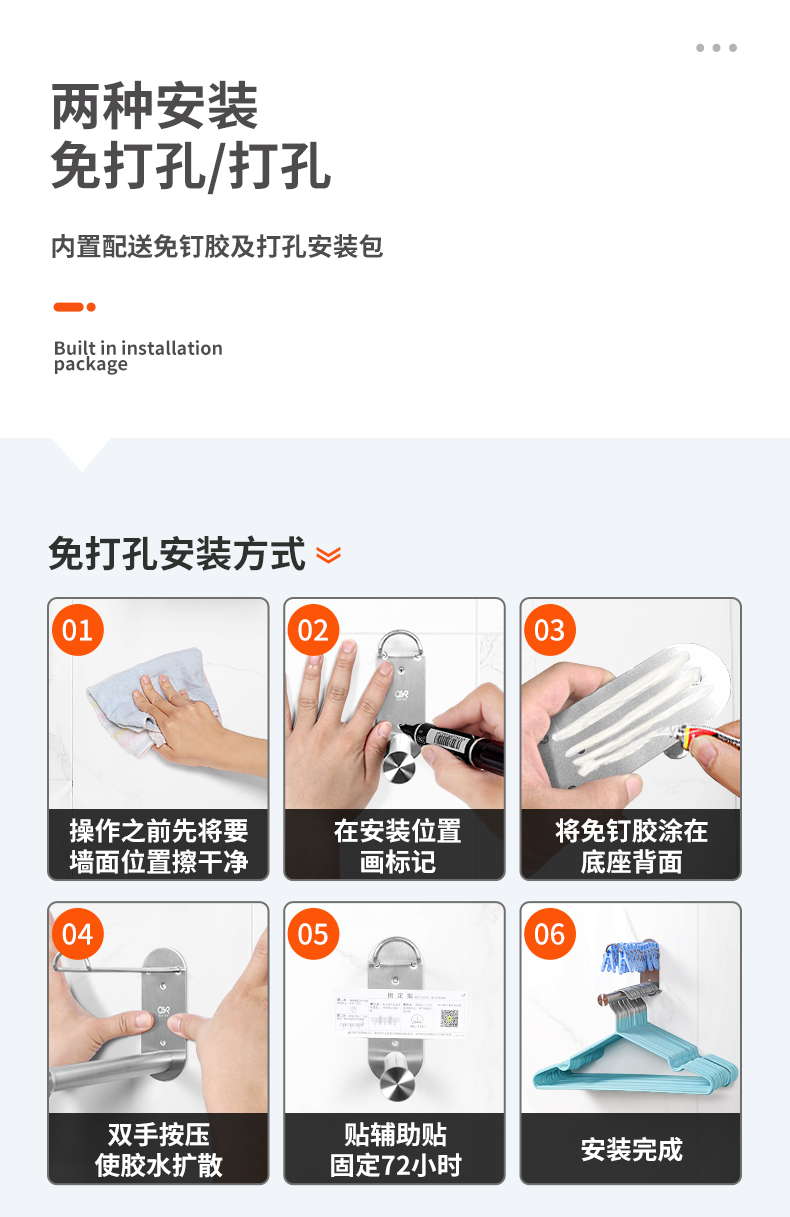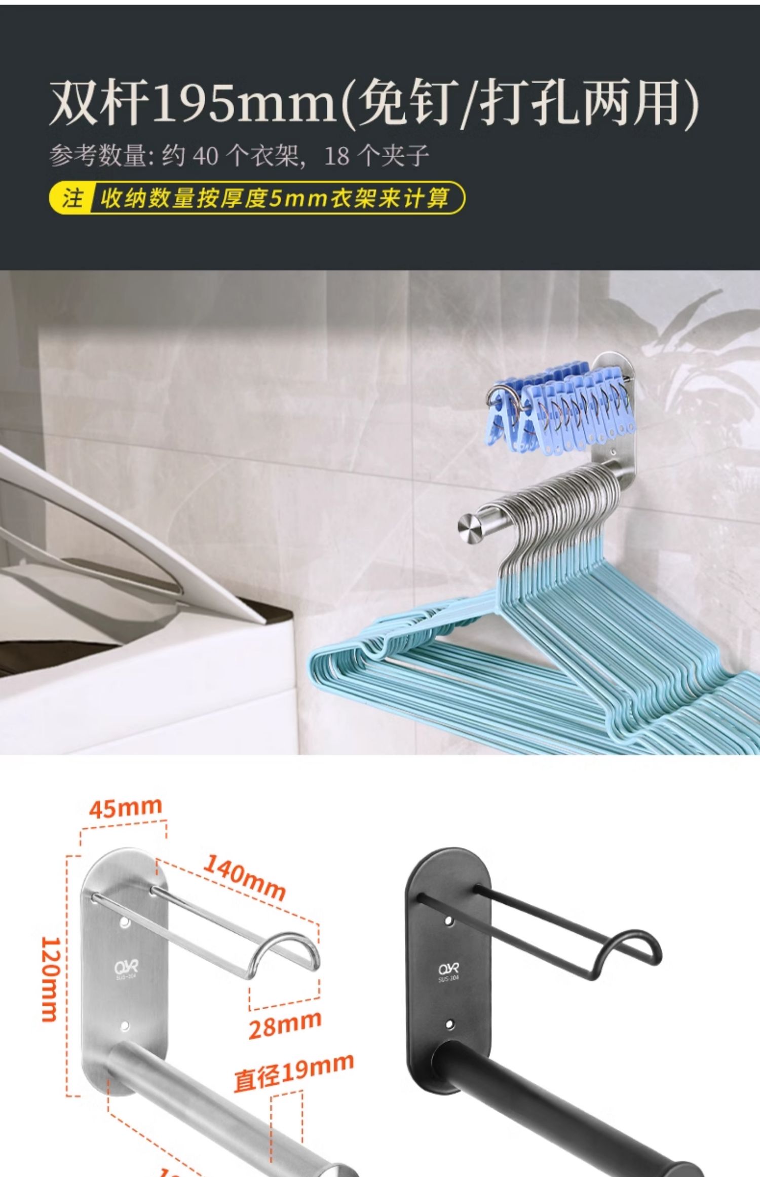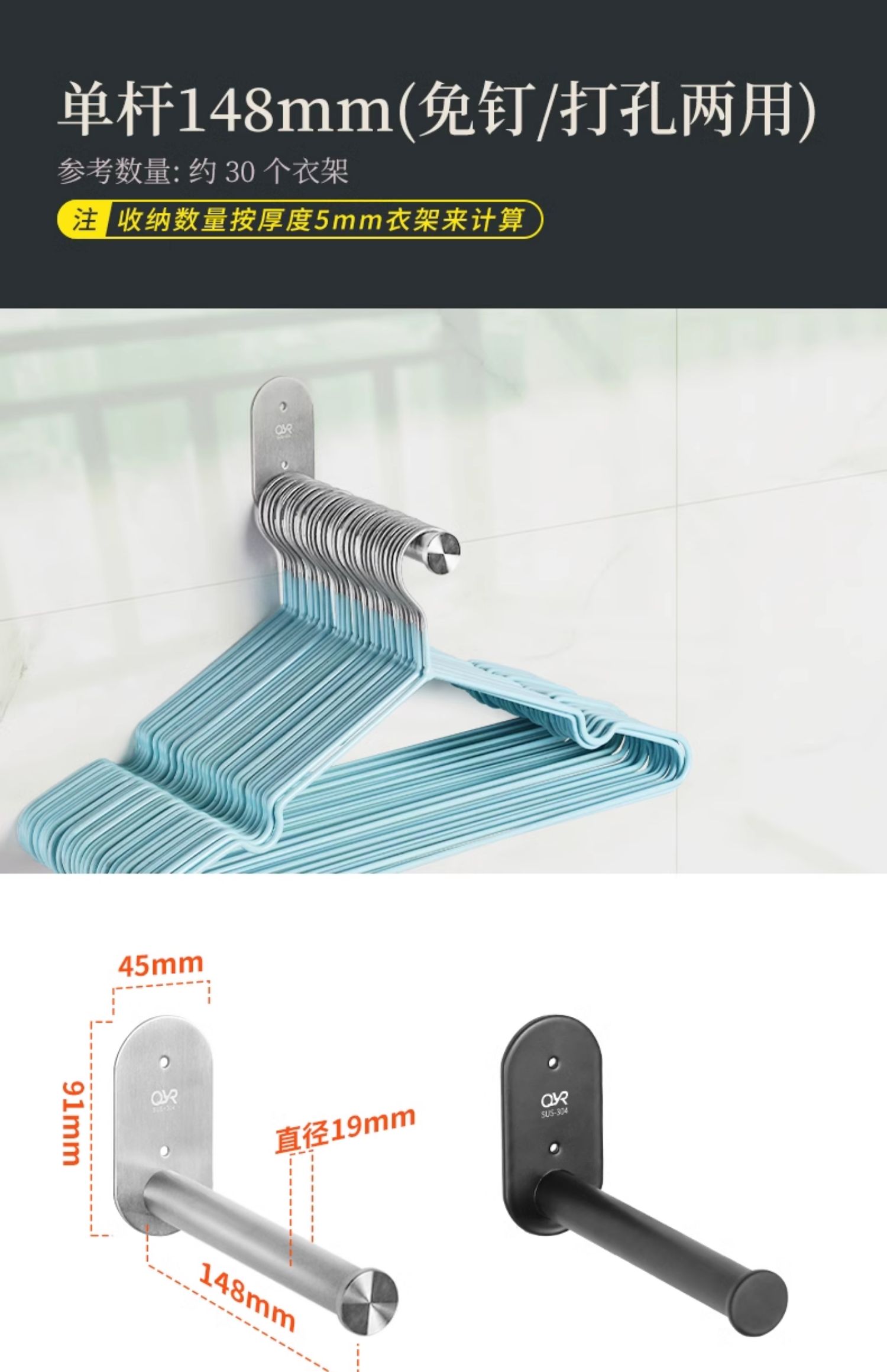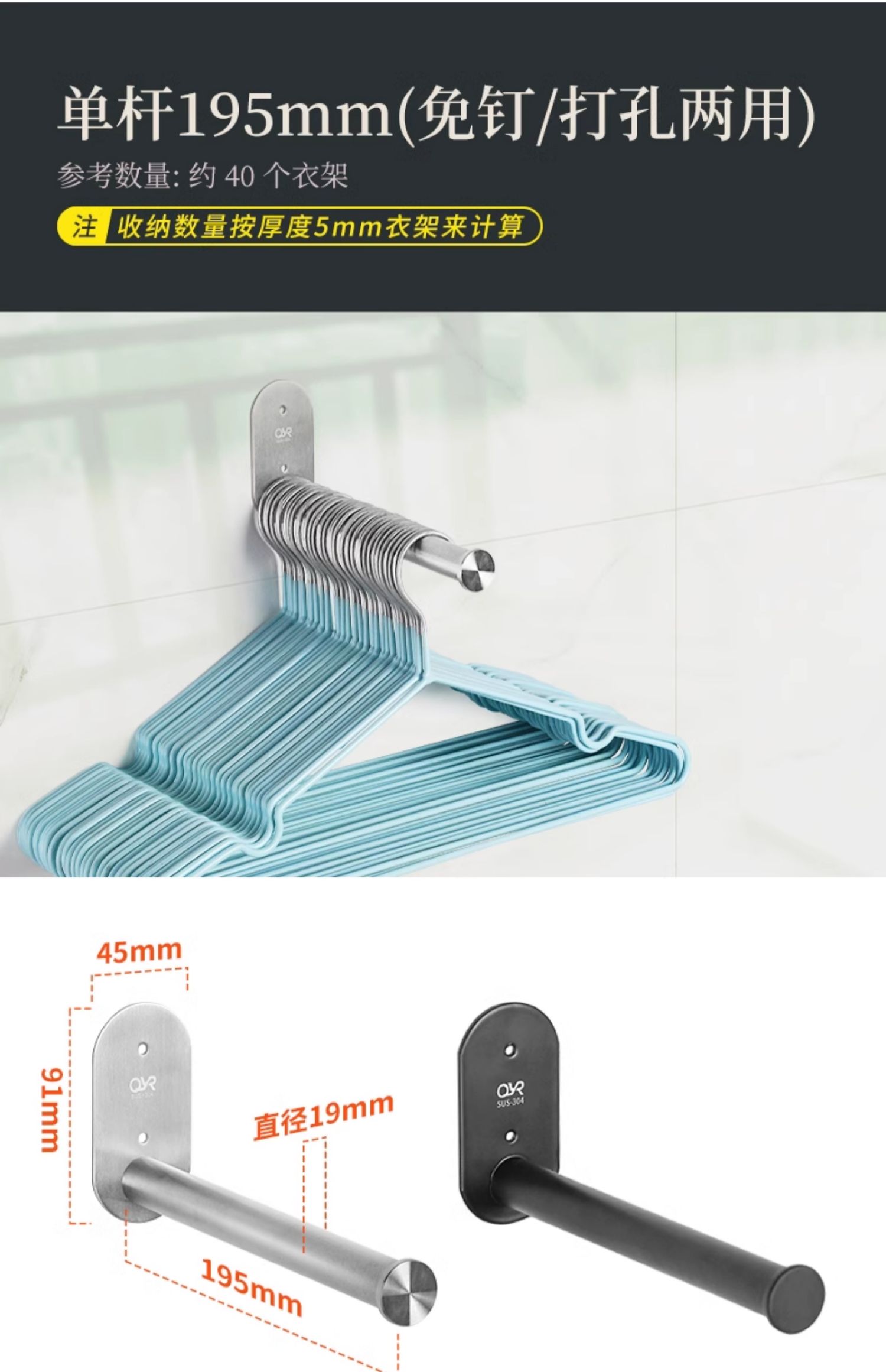衣架收纳神器不锈钢阳台整理置物架壁挂墙上免打孔挂钩晾衣架挂杆