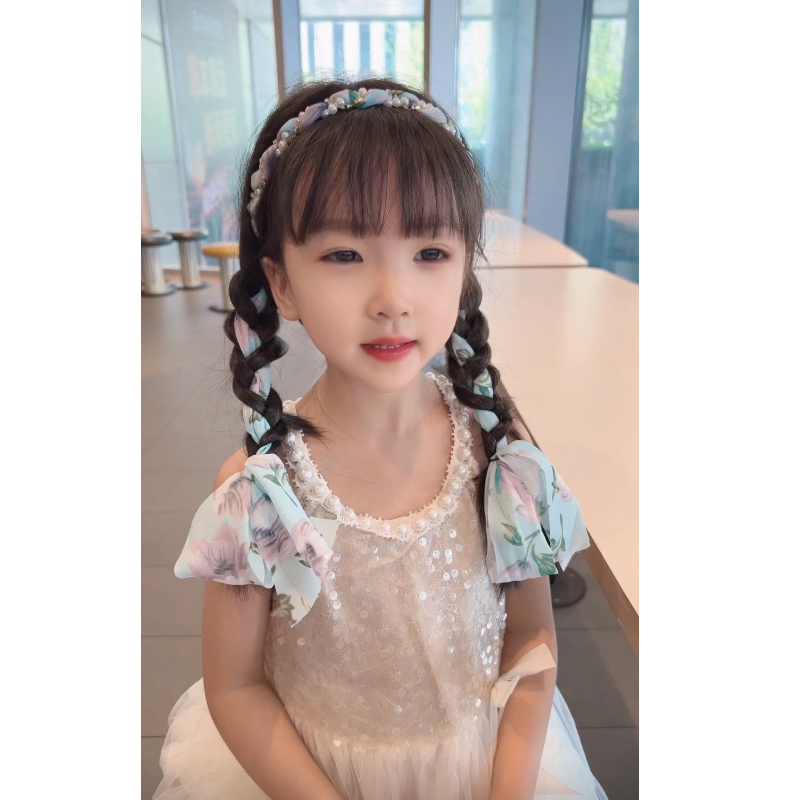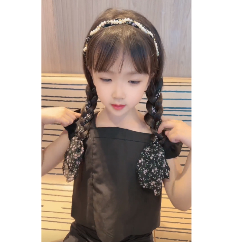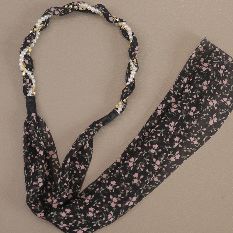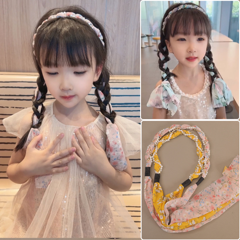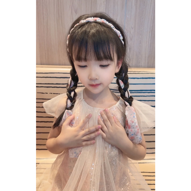 儿童碎花发带丝巾绑发飘带发箍一体女外戴系带编发女童丝带头饰