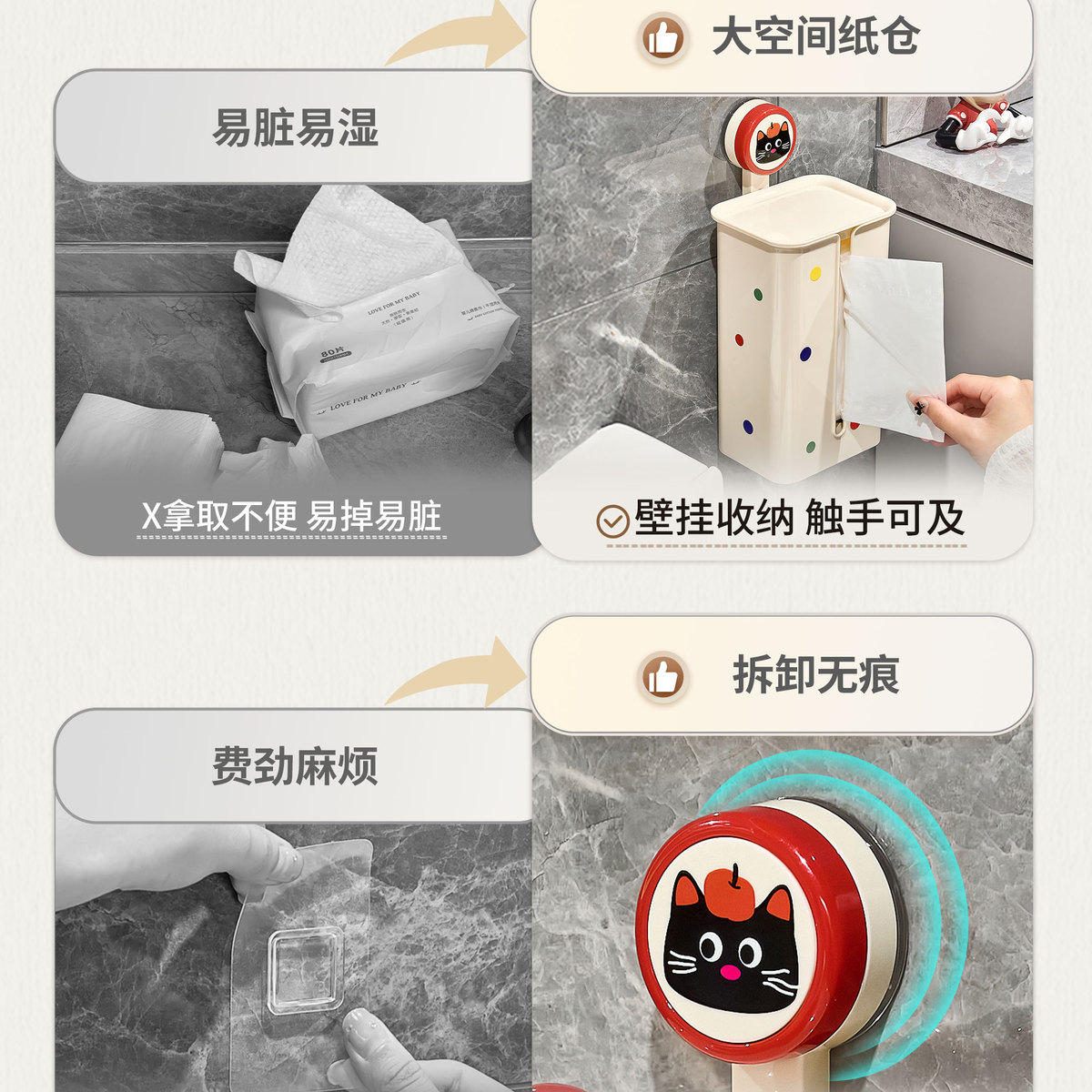 吸盘洗脸巾收纳盒壁挂一次性洁面纸巾擦脸巾卫生间浴室厕所置物架