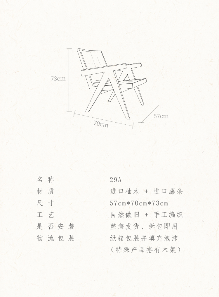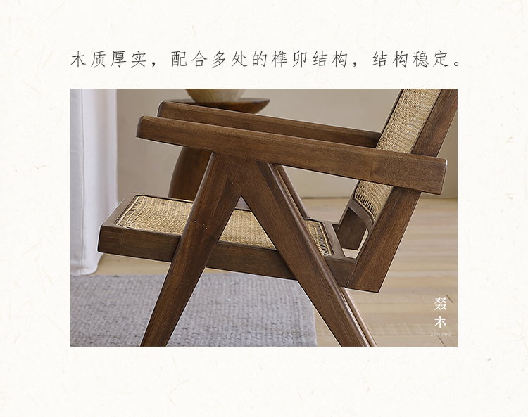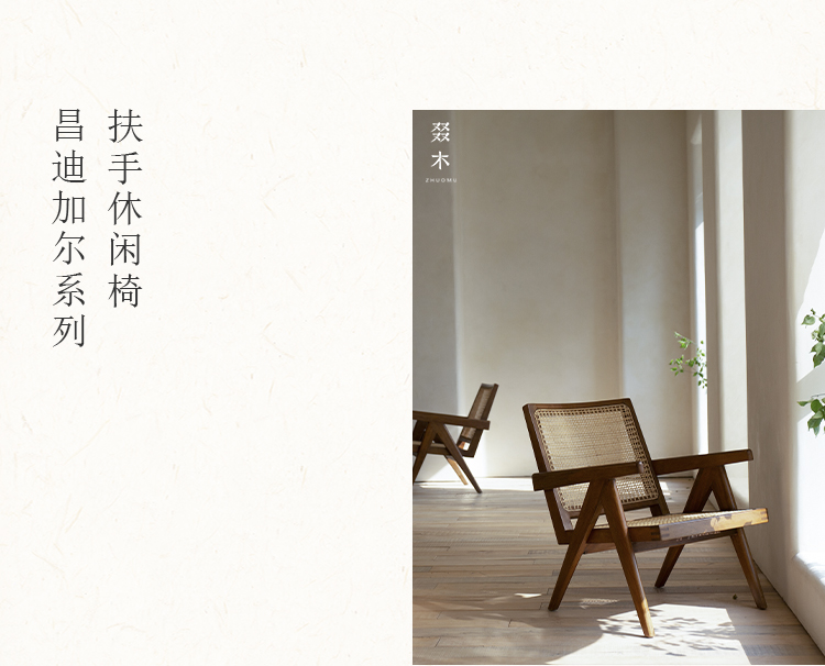 叕木/昌迪加尔休闲椅 | pj椅实木藤编椅子阳台躺椅侘寂风中古家具
