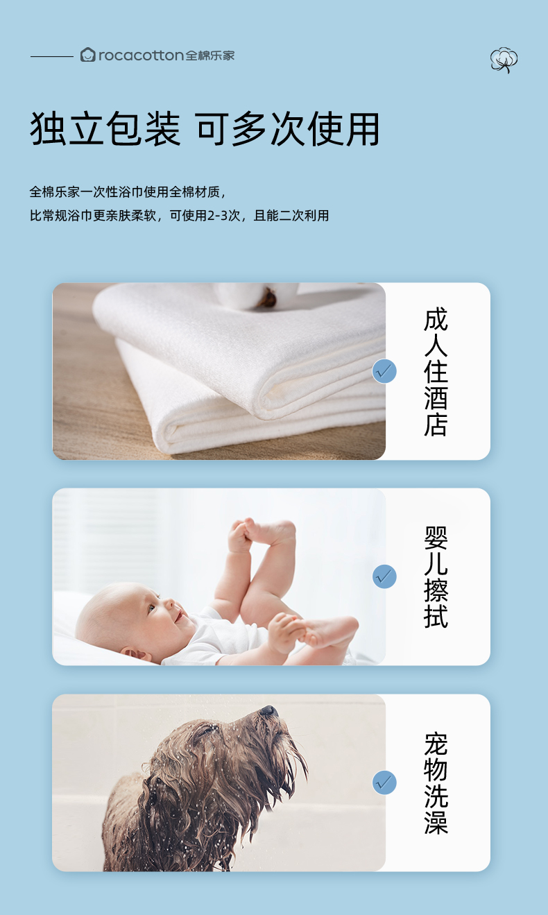 全棉乐家100%棉一次性浴巾纯棉加厚毛巾女性吸水浴巾旅行单独包装