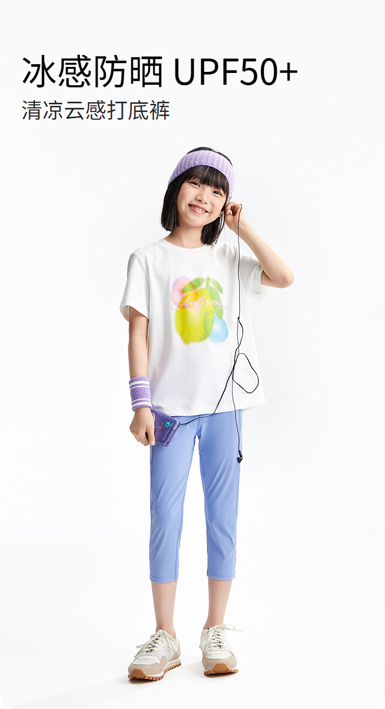 安奈儿女童装冰感打底七分裤2025夏季新款防晒弹力舞蹈修身瑜珈裤