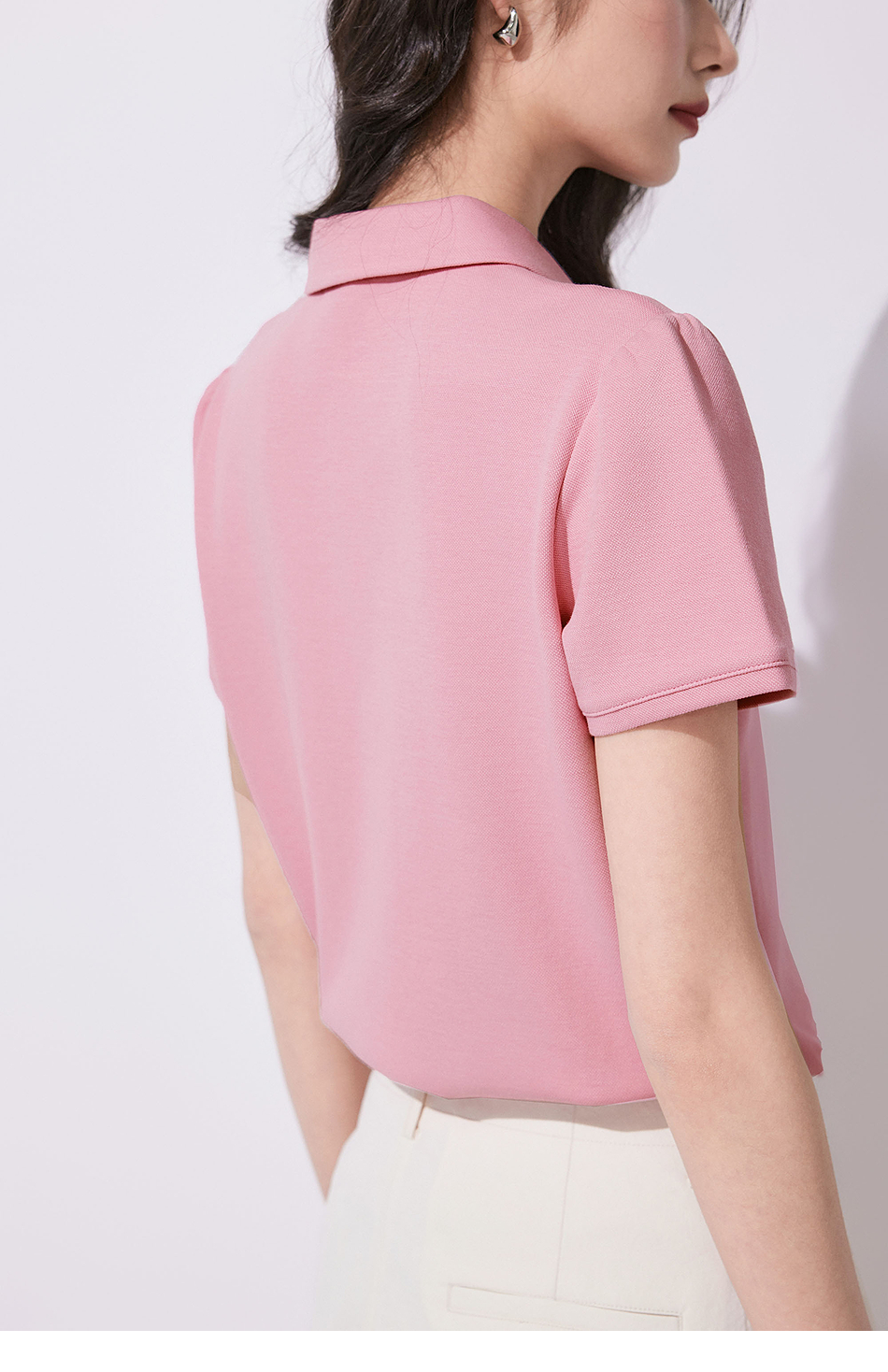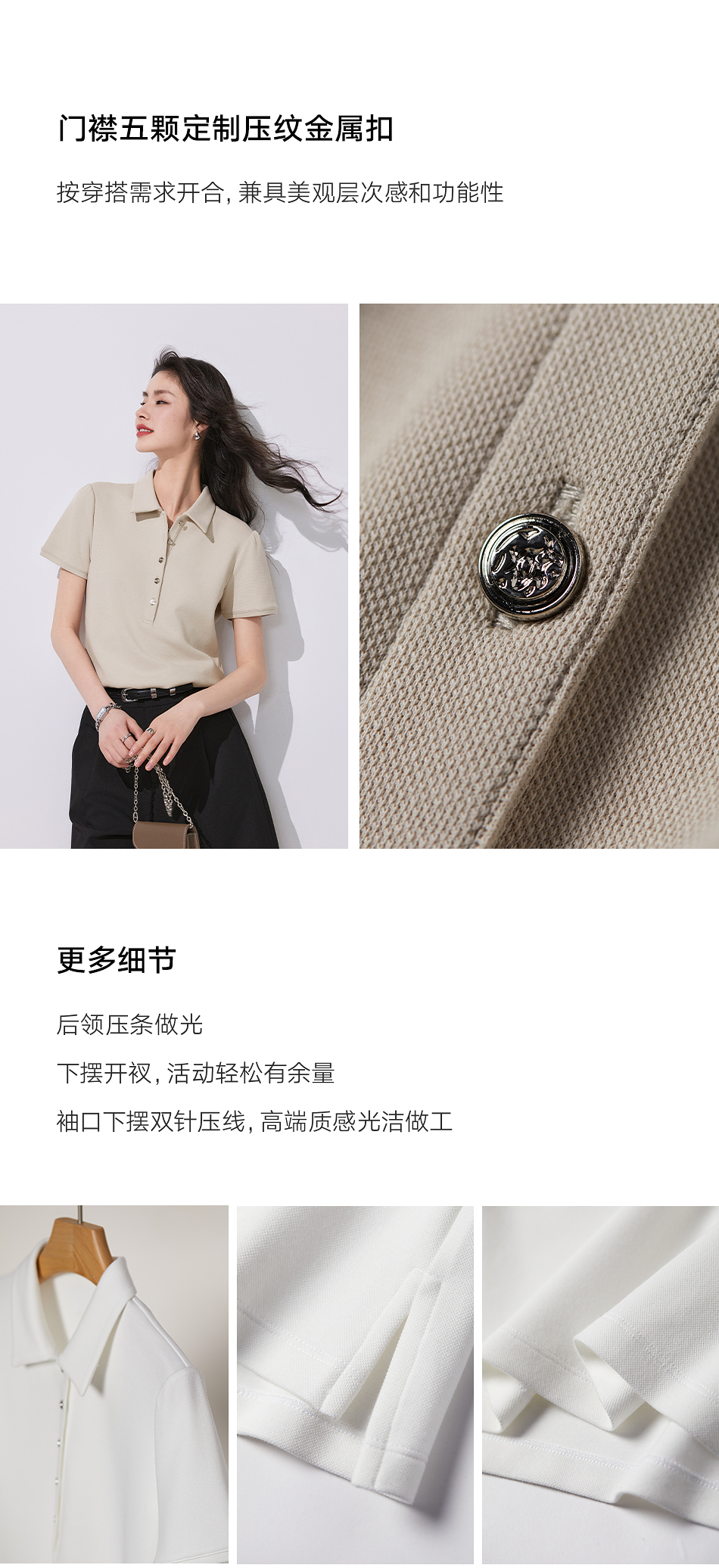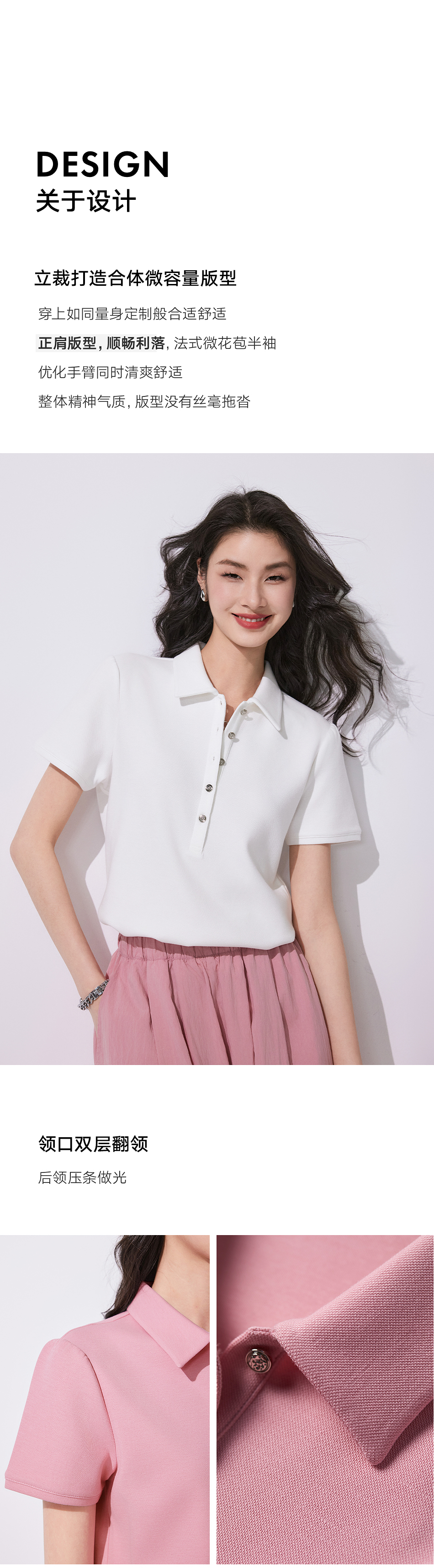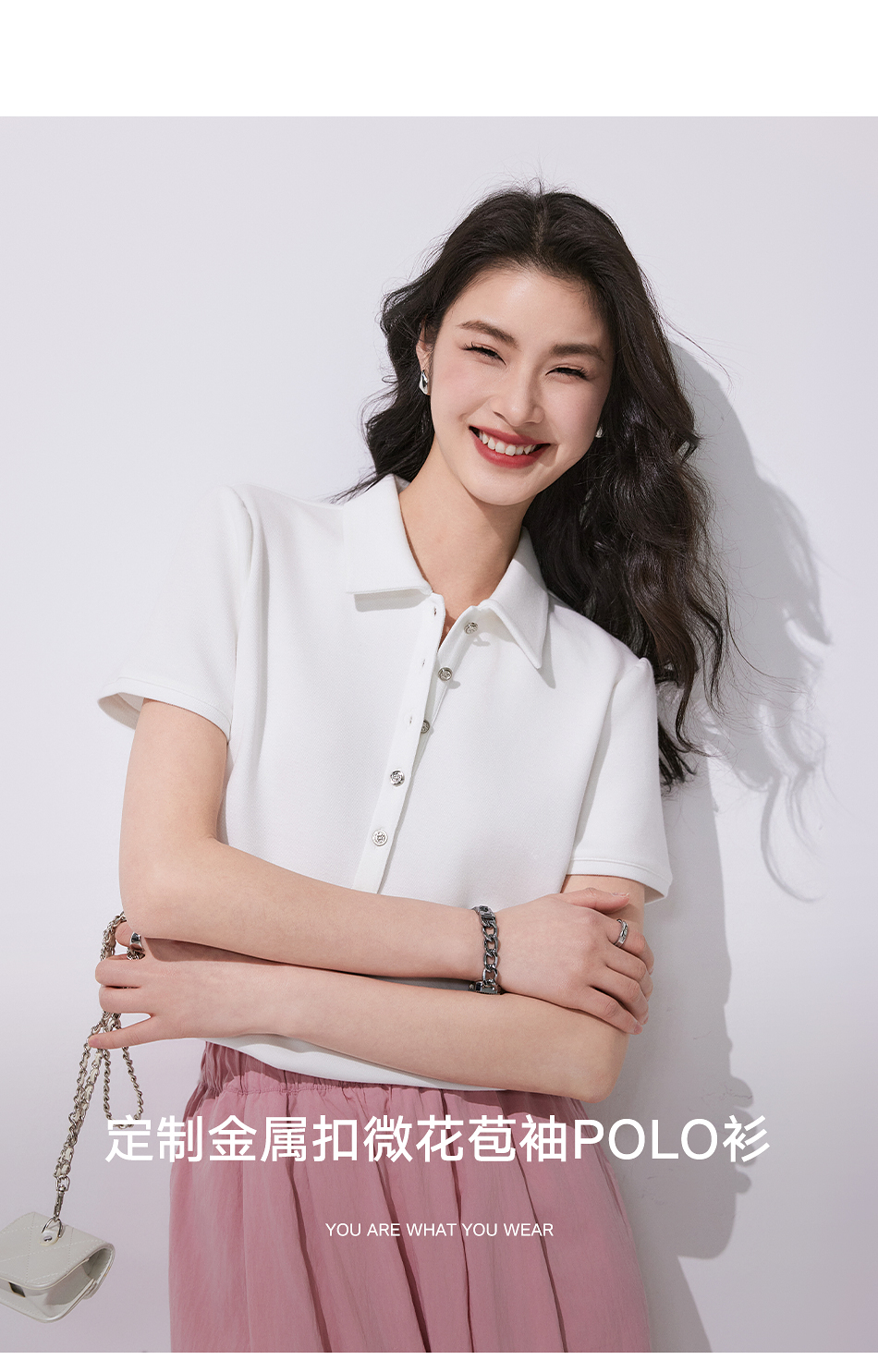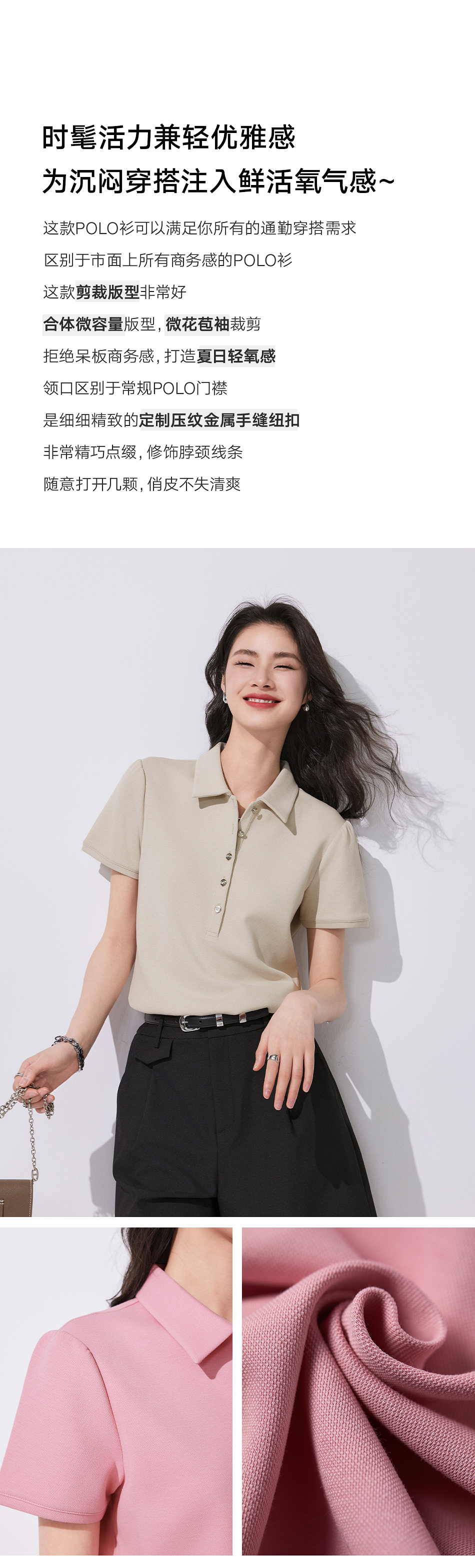 初棉轻氧感花苞袖polo领休闲短袖T恤女 24夏季显瘦正肩珠地polo衫