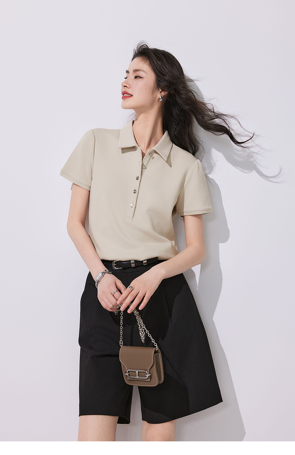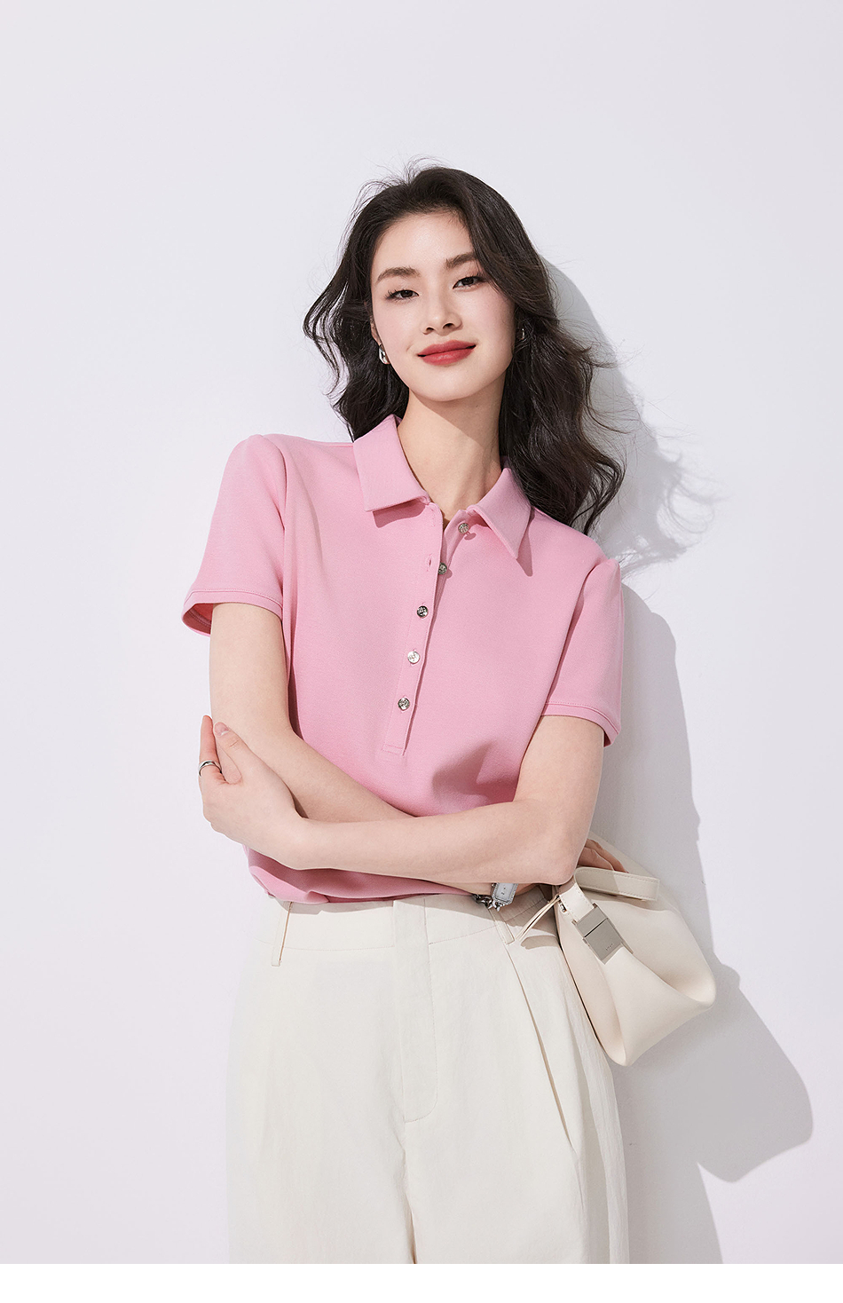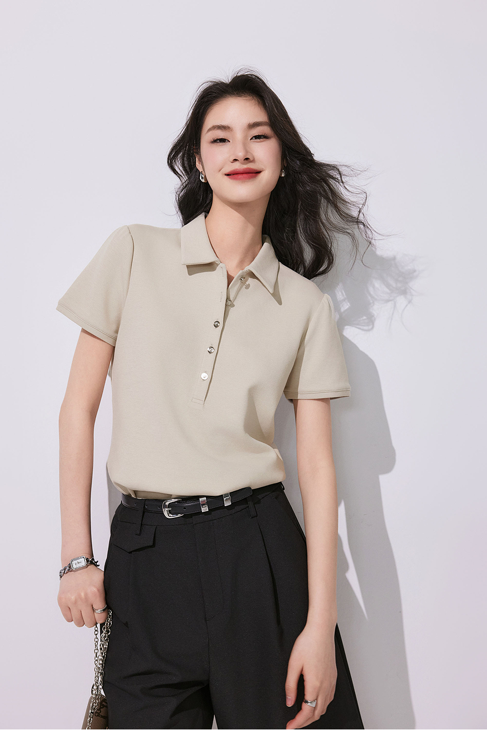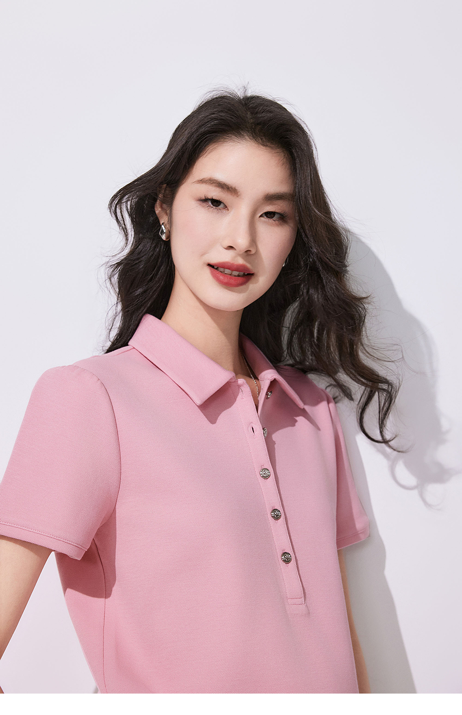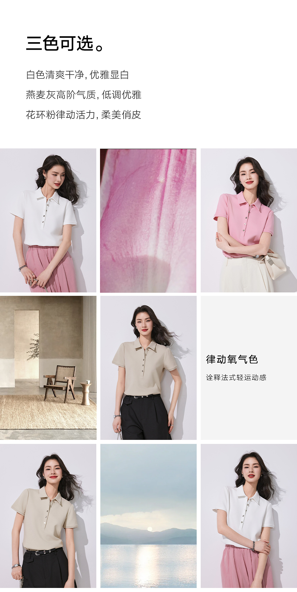 初棉轻氧感花苞袖polo领休闲短袖T恤女 24夏季显瘦正肩珠地polo衫