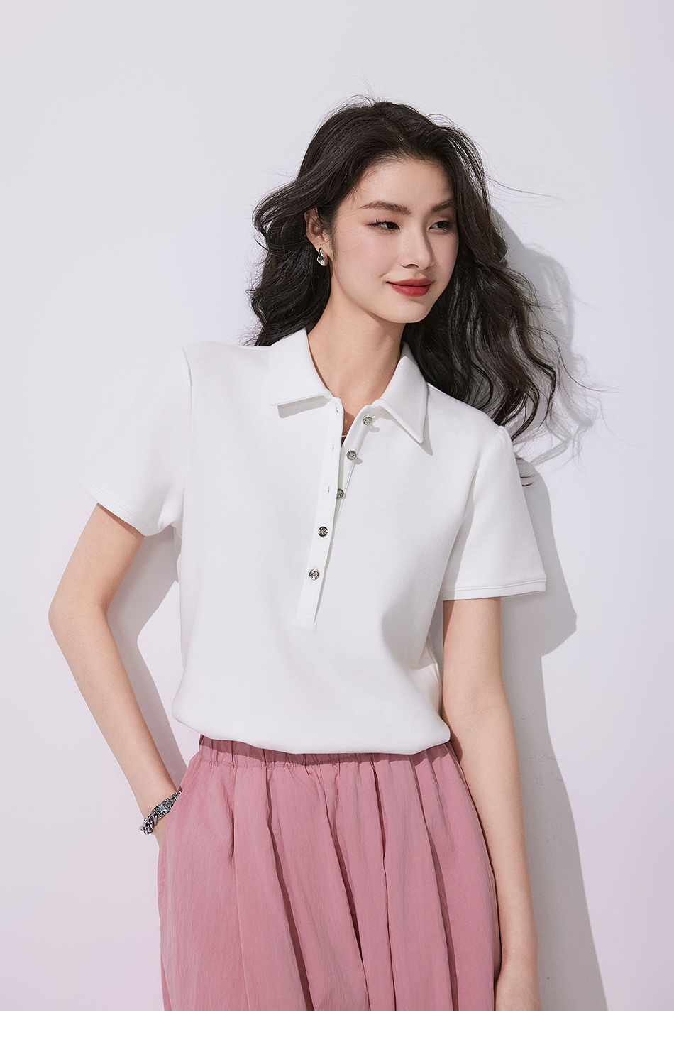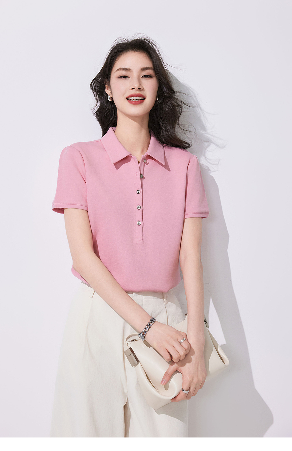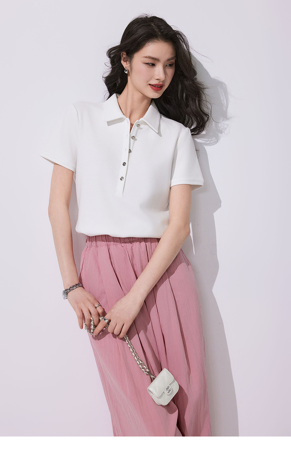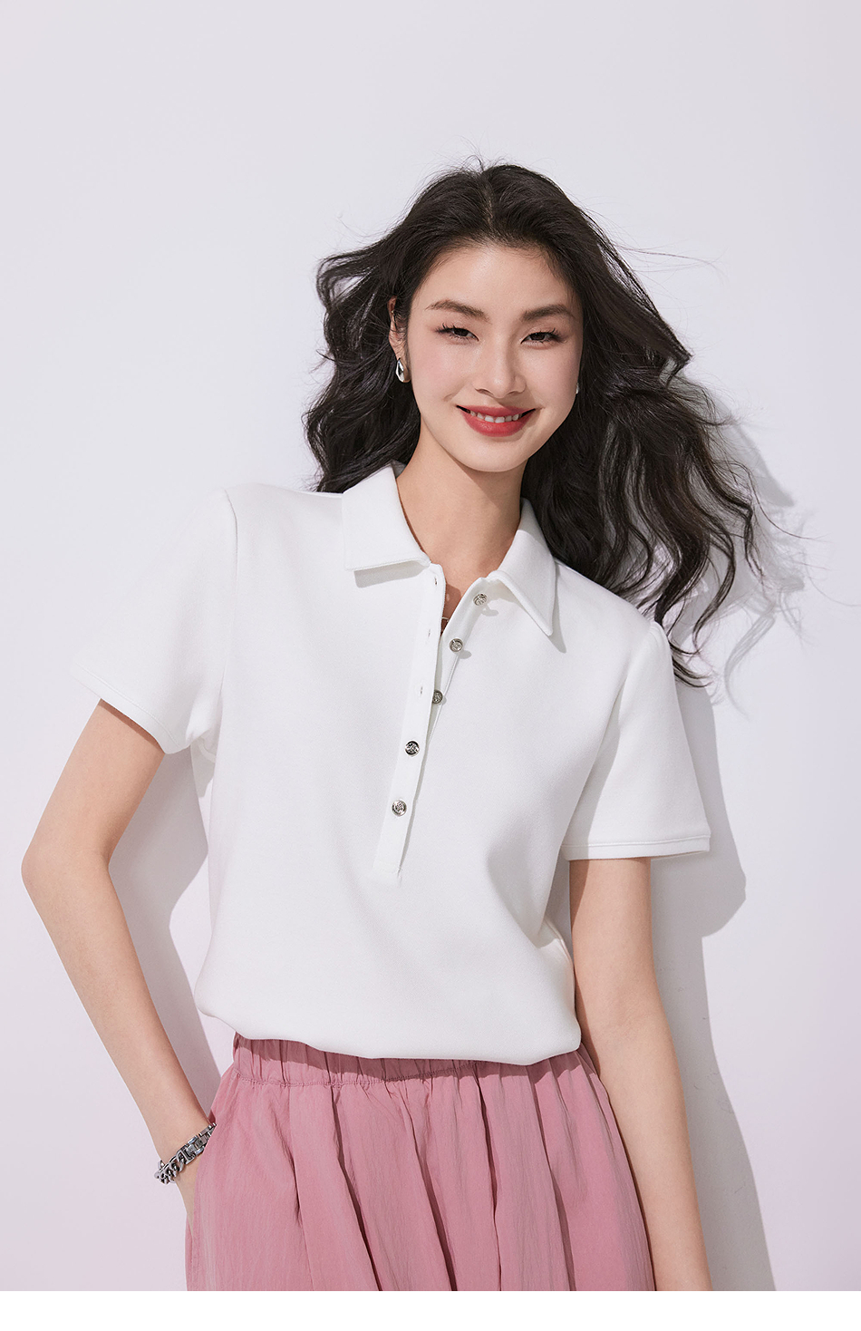 初棉轻氧感花苞袖polo领休闲短袖T恤女 24夏季显瘦正肩珠地polo衫