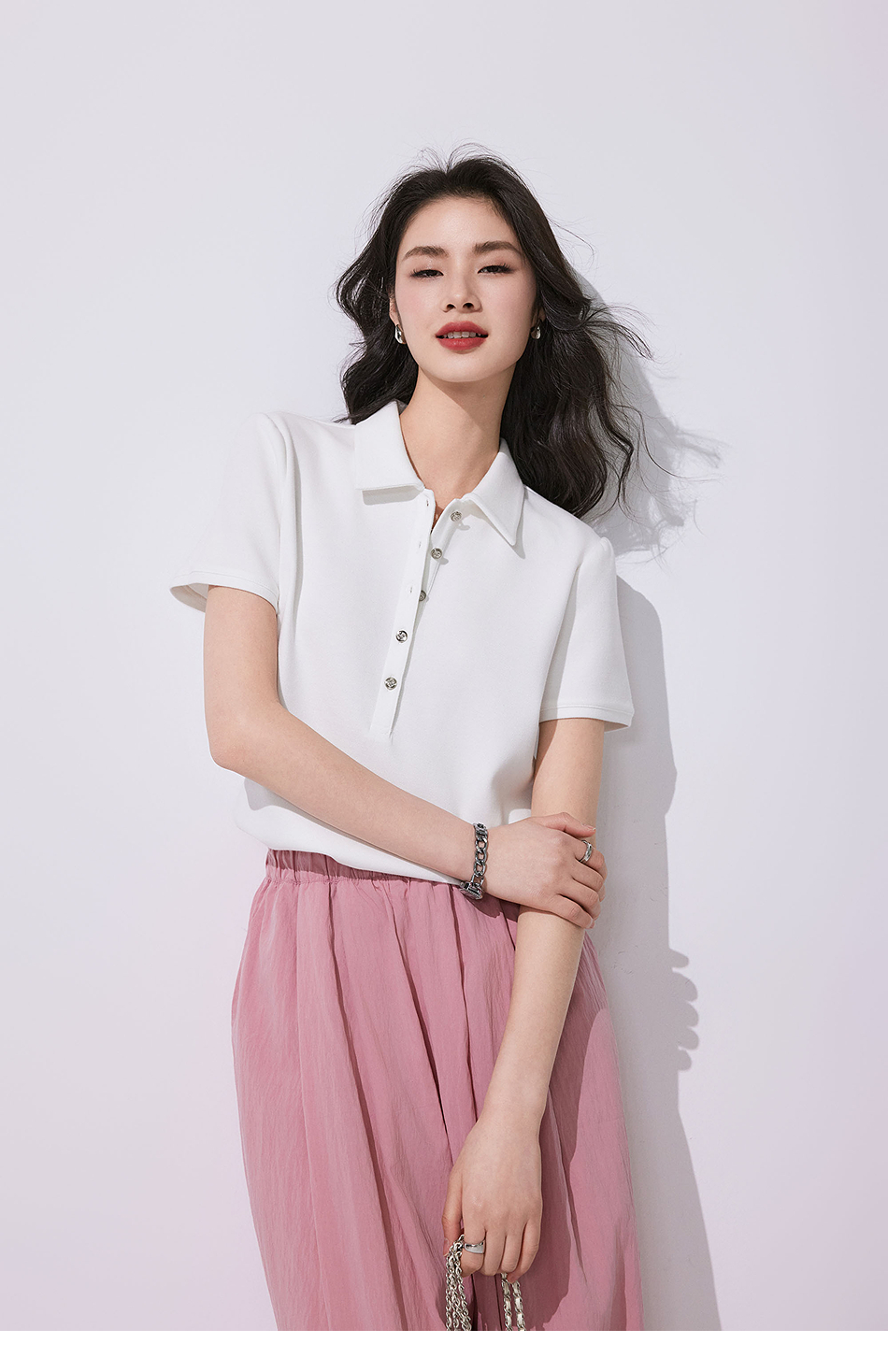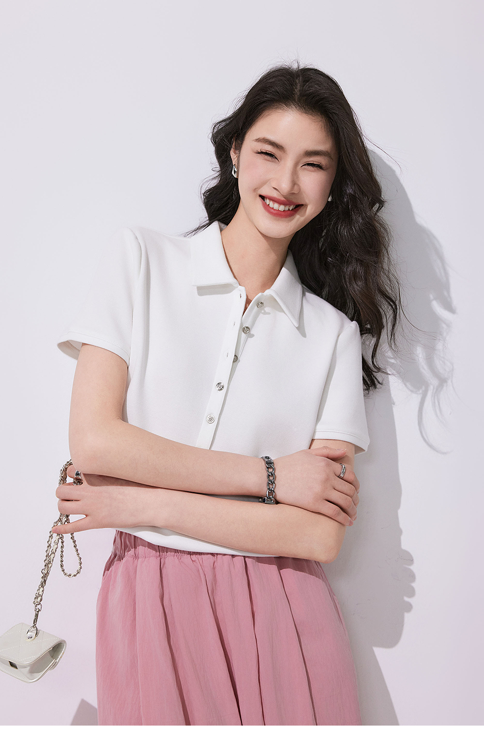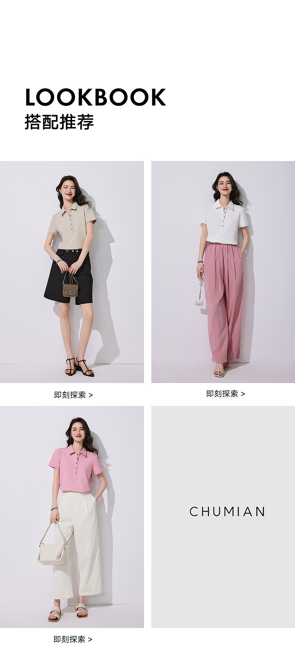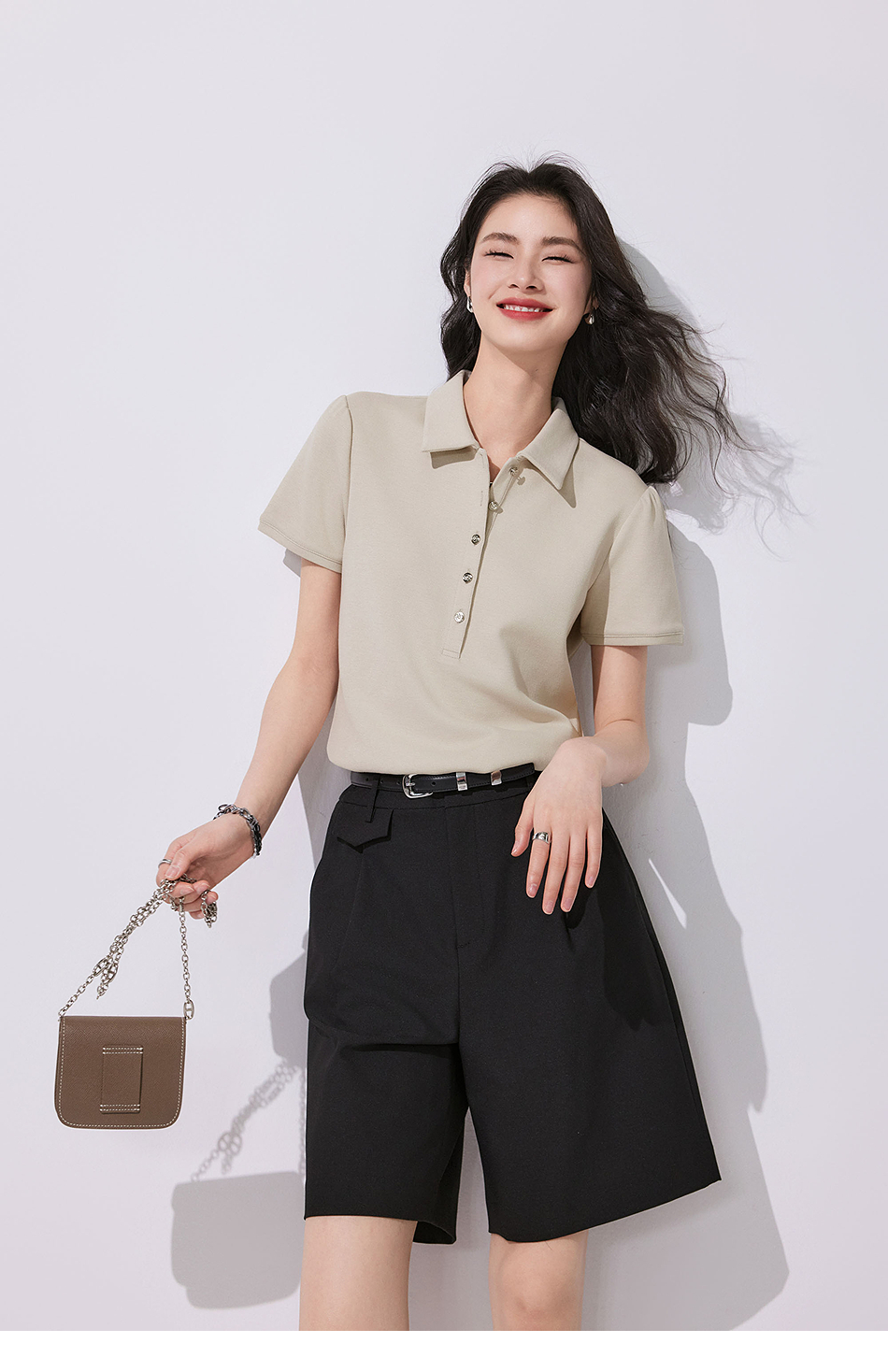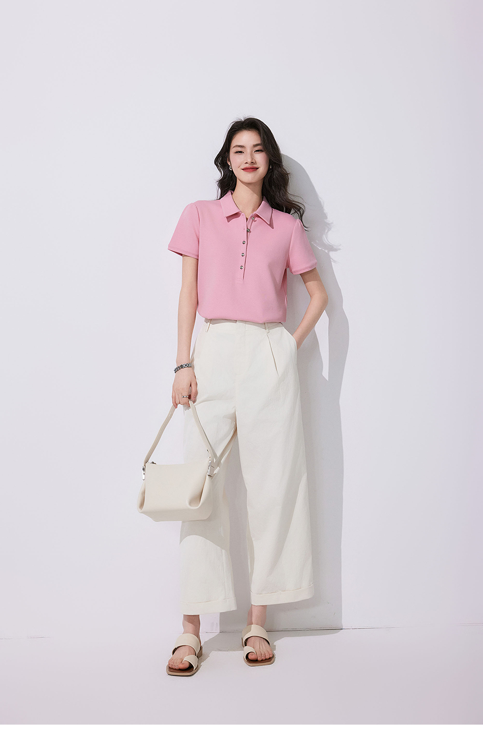 初棉轻氧感花苞袖polo领休闲短袖T恤女 24夏季显瘦正肩珠地polo衫