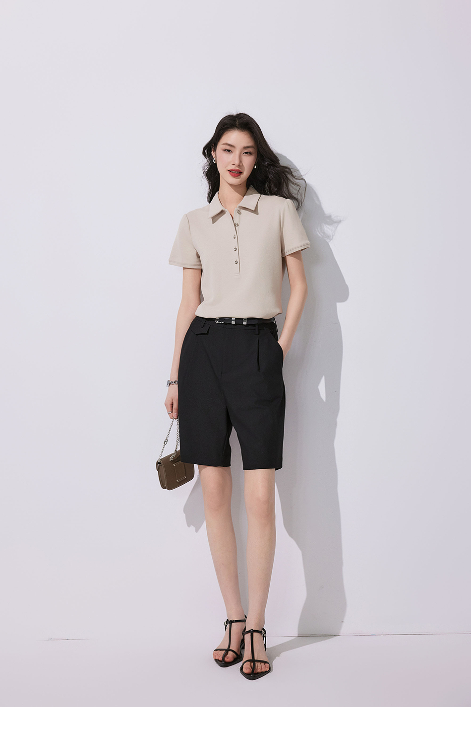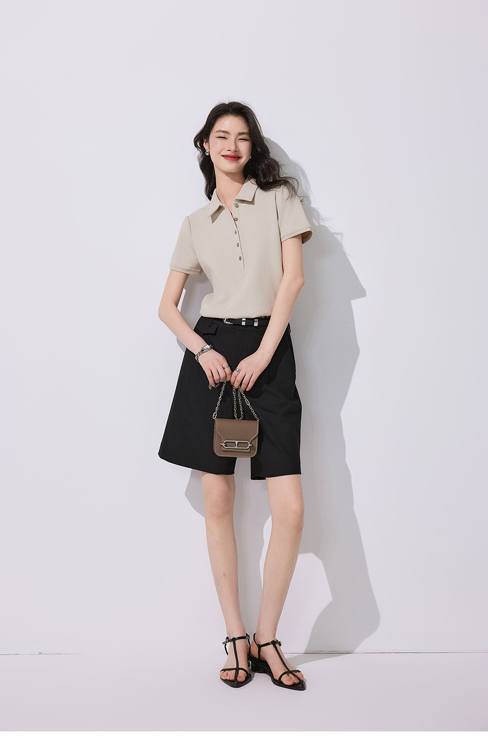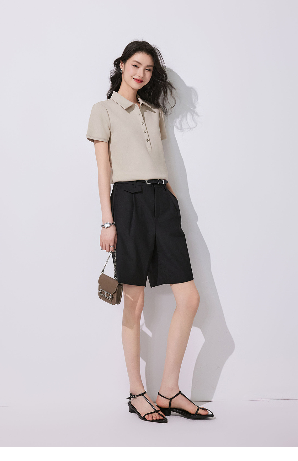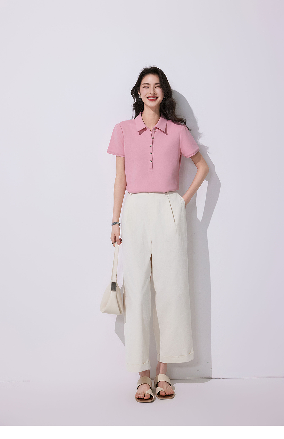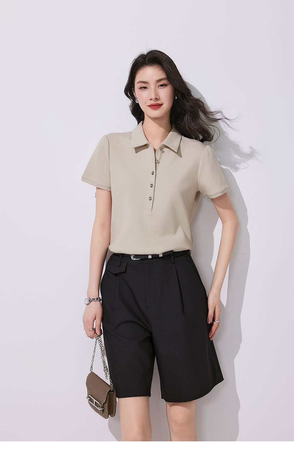 初棉轻氧感花苞袖polo领休闲短袖T恤女 24夏季显瘦正肩珠地polo衫