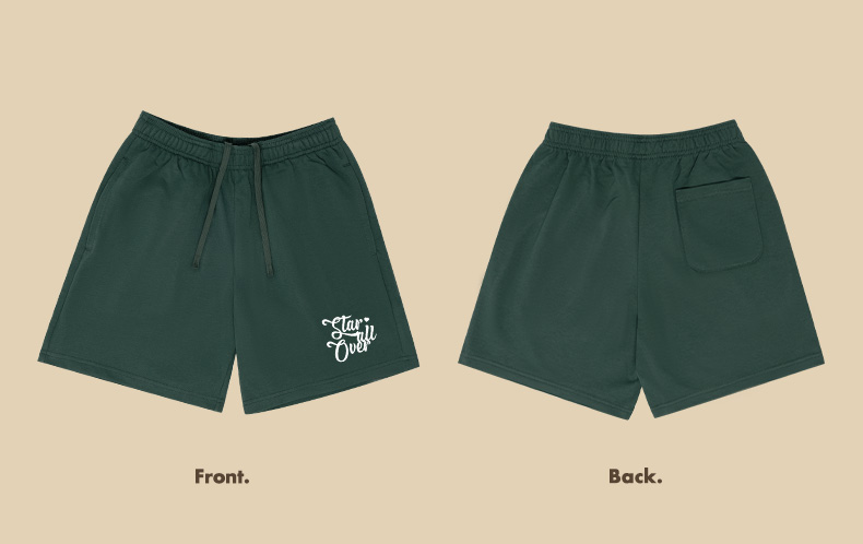 Guozii杏色抽绳休闲运动短裤女五分裤跑步宽松夏季毛圈情侣装裤子