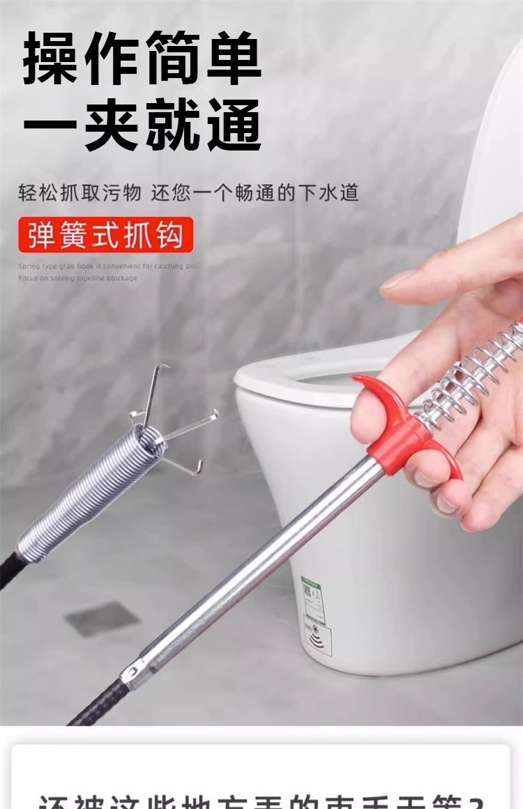 下水道疏通神器厨房管道疏通器堵塞清洁神器卫生间马桶抓夹弹簧