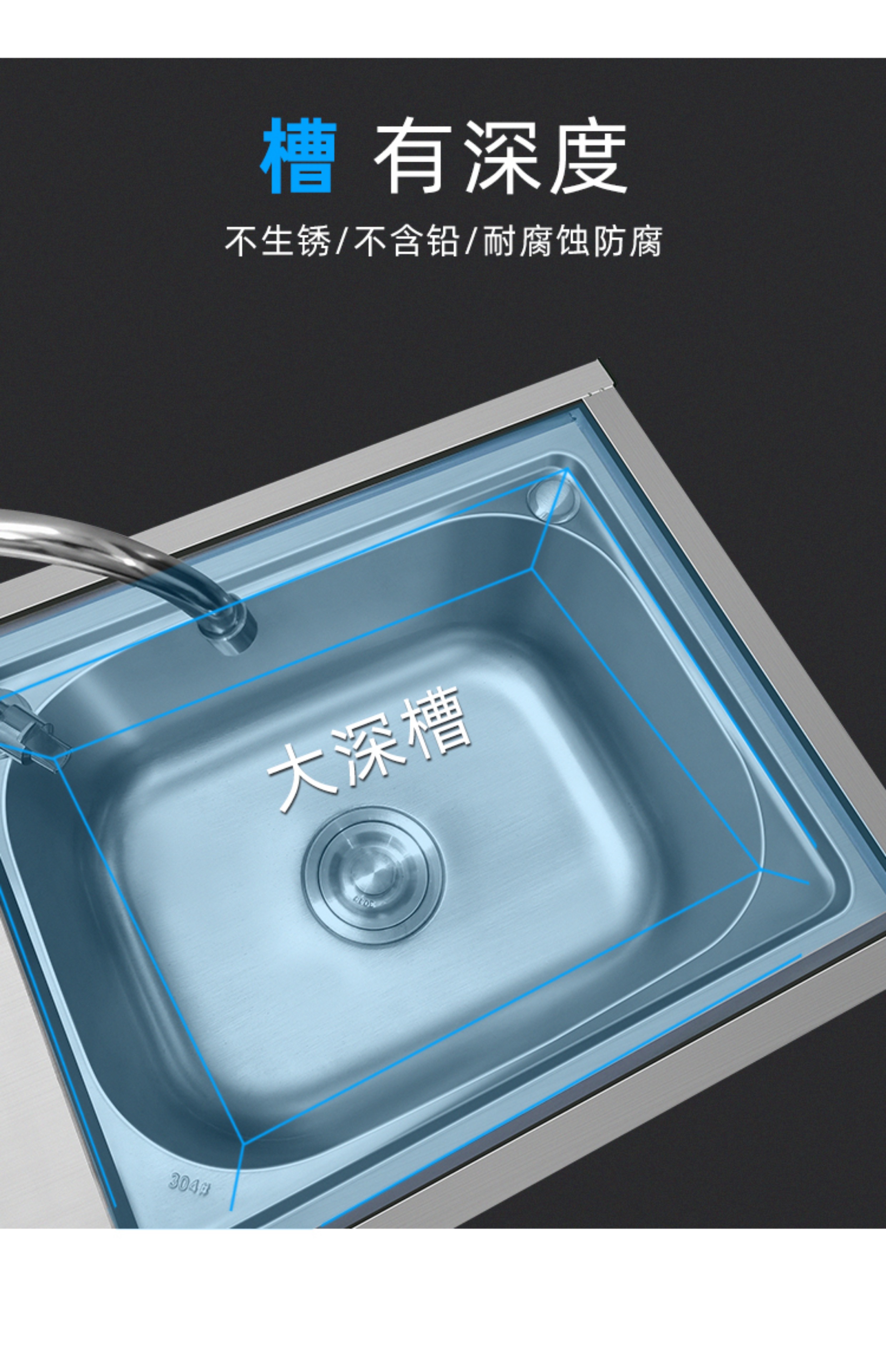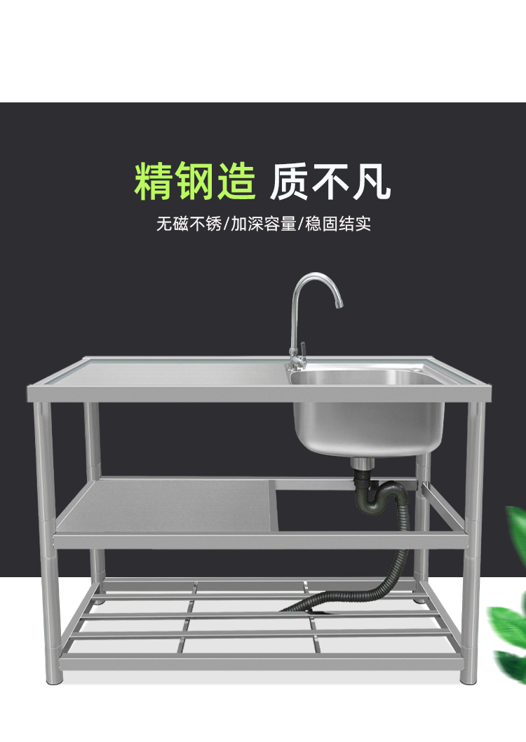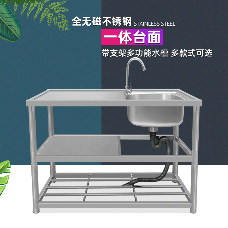 厨房单槽洗菜洗碗洗手盆台面一体不锈钢水槽带支架洗衣槽水池家用