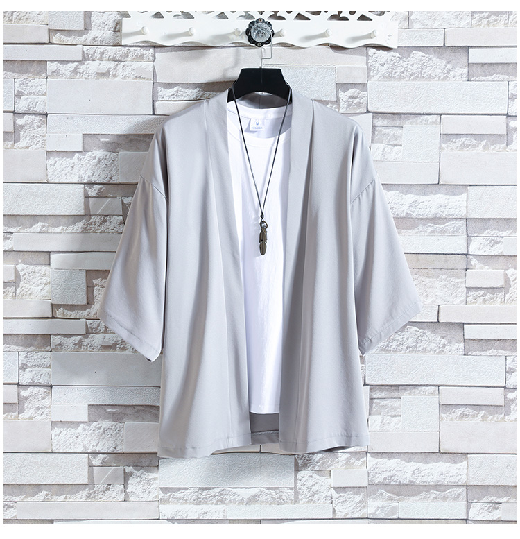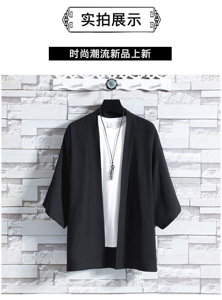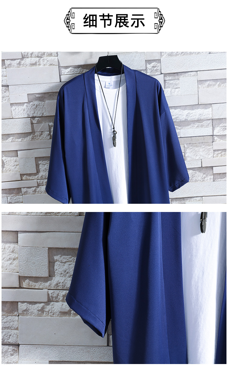 改良汉服男款披风防晒道袍新中式国风唐装七分短袖t恤开衫外套男