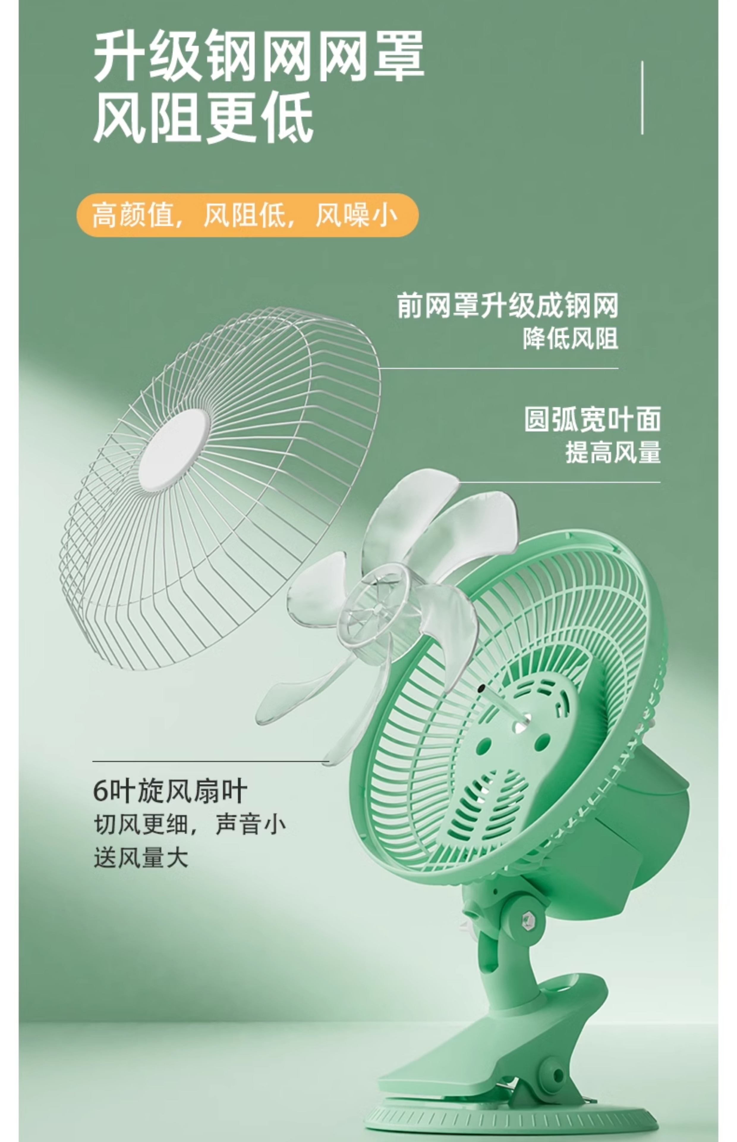 电风扇夹式插电家用电扇学生宿舍床头夹扇摇头办公室夹子小风扇