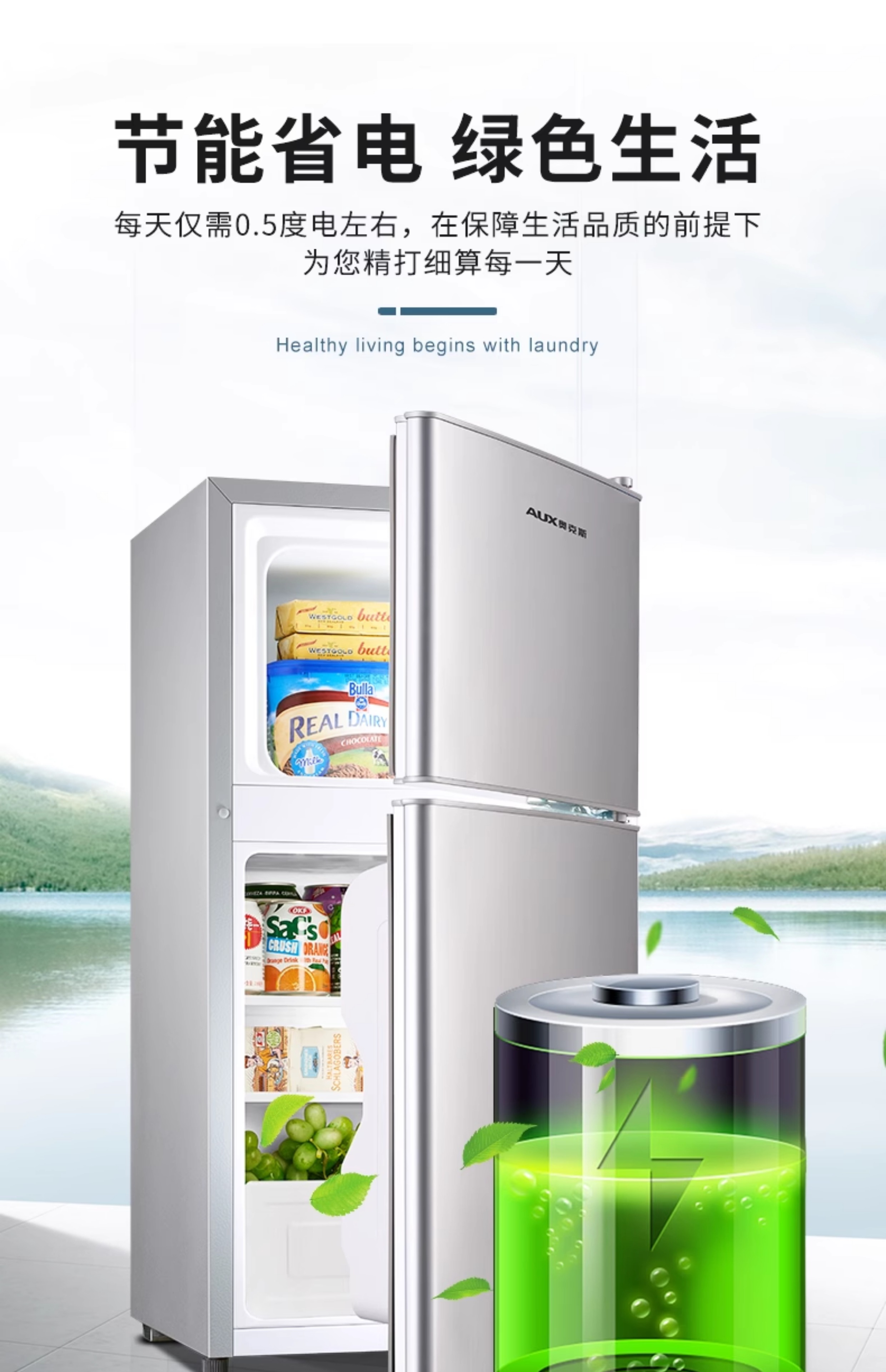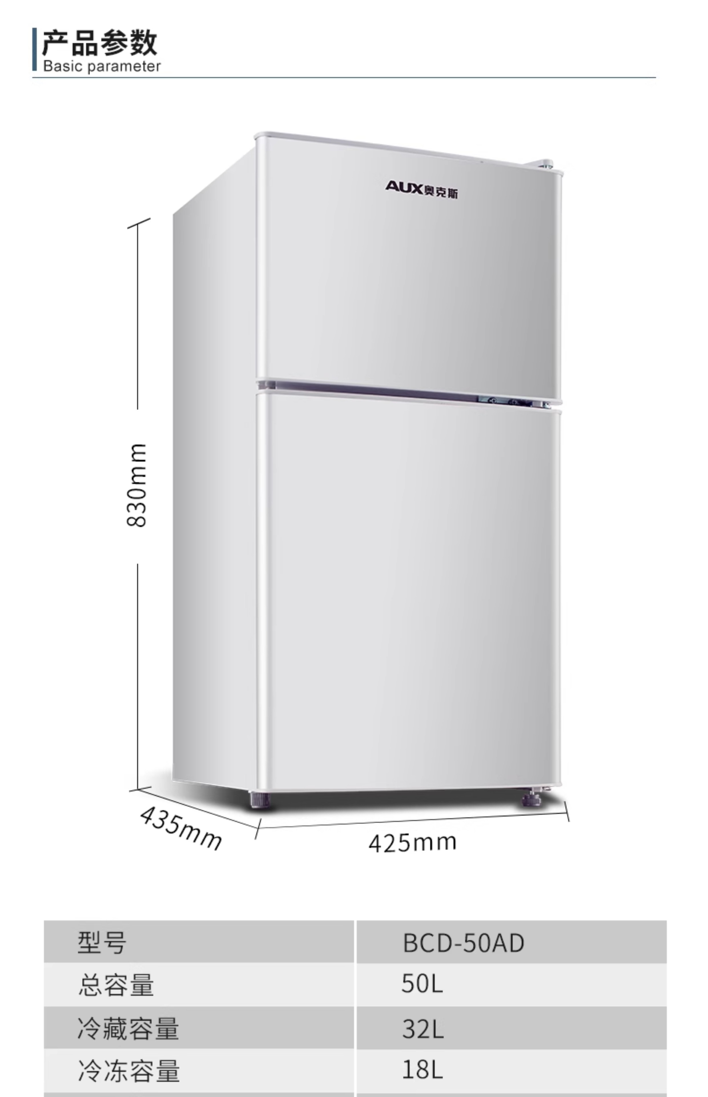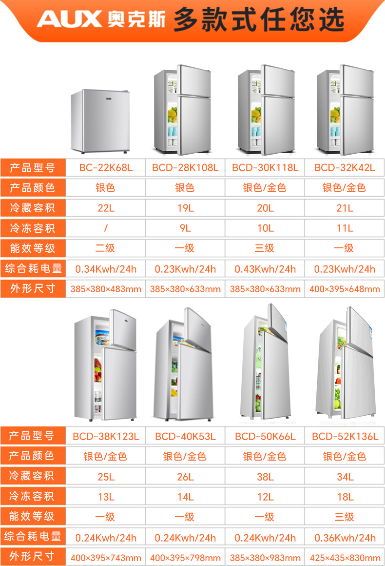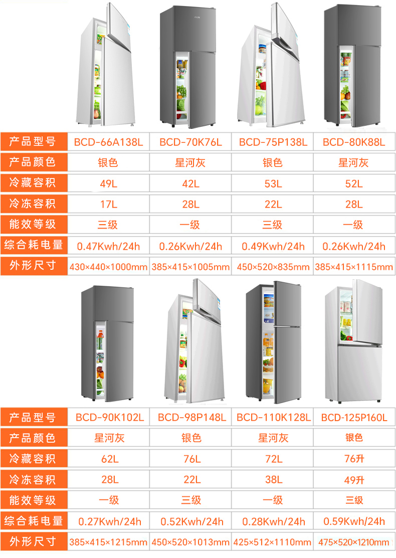 奥克斯一级节能小冰箱家用小型办公室租房冷藏冷冻抗菌低噪电冰箱