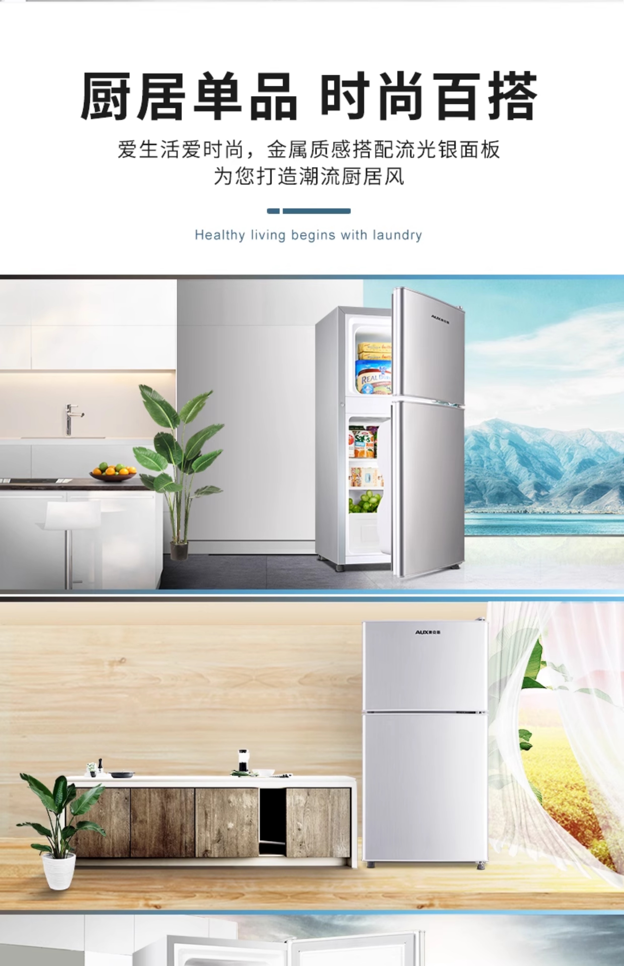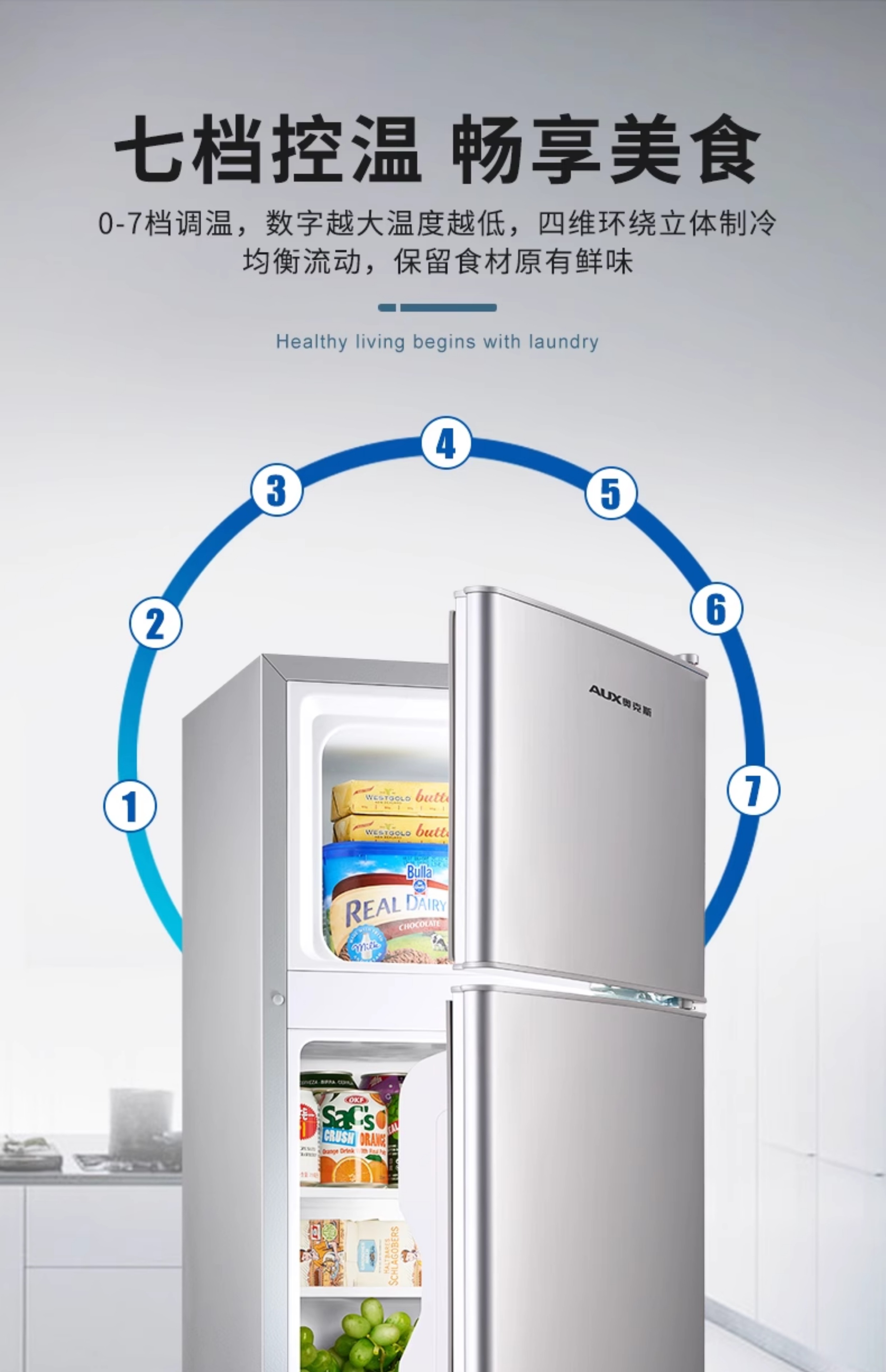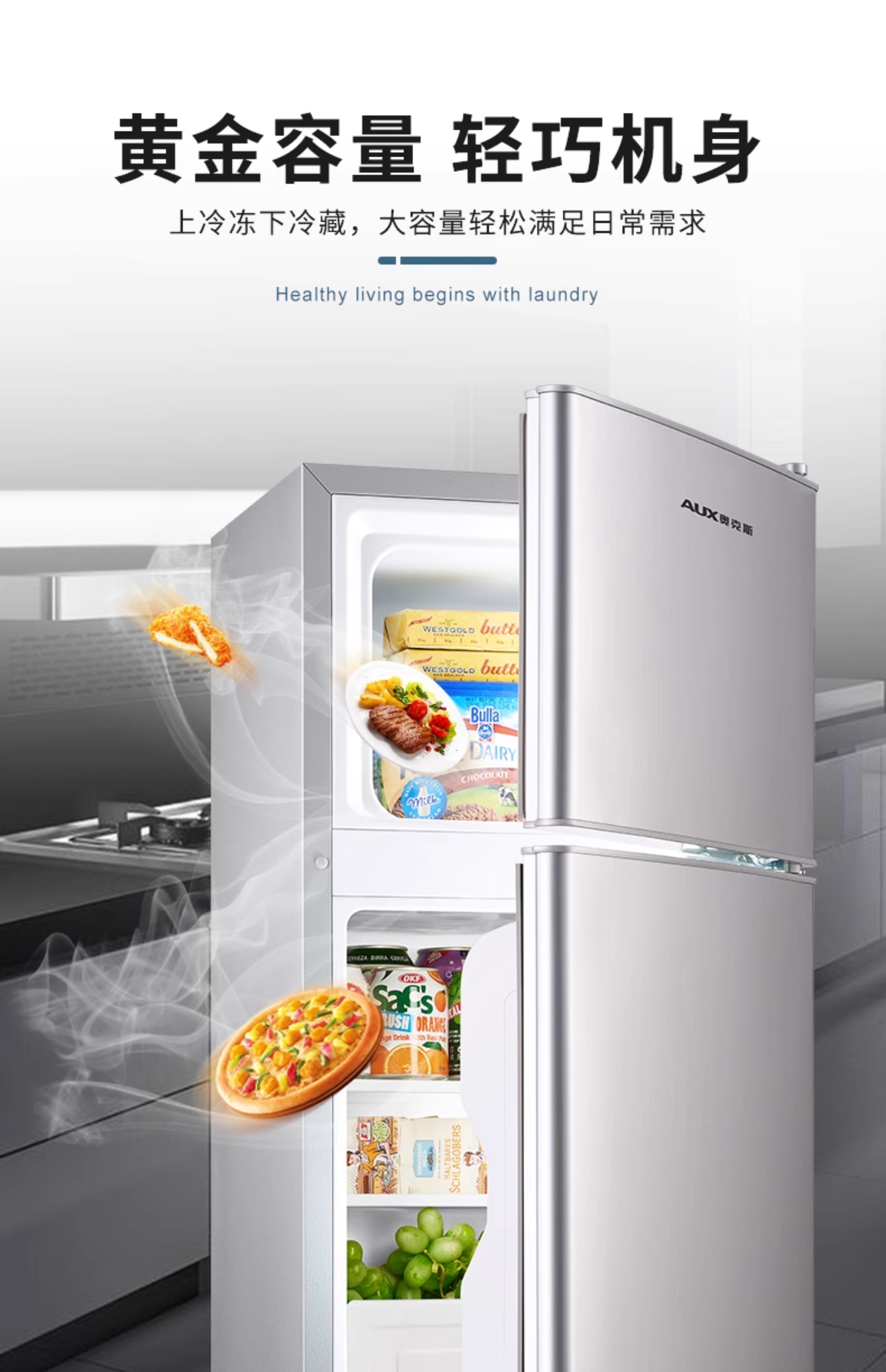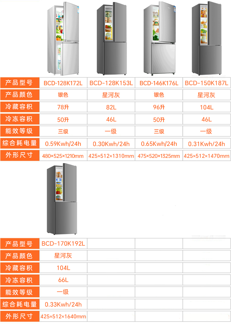 奥克斯一级节能小冰箱家用小型办公室租房冷藏冷冻抗菌低噪电冰箱