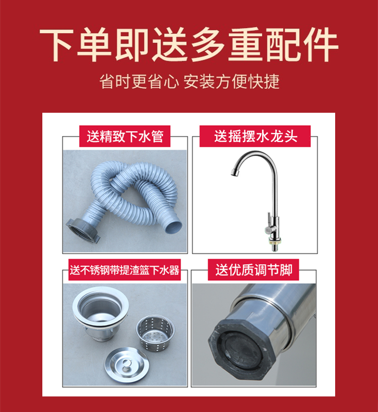 304不锈钢洗碗池一体柜水槽家用操作台面水池工作台洗手柜浴室柜