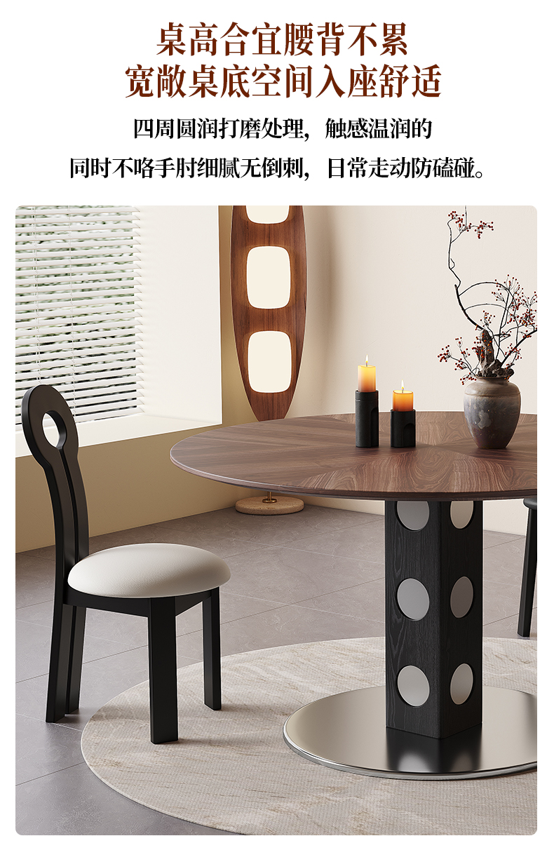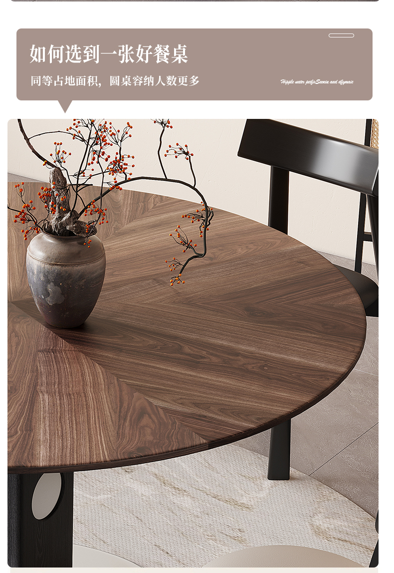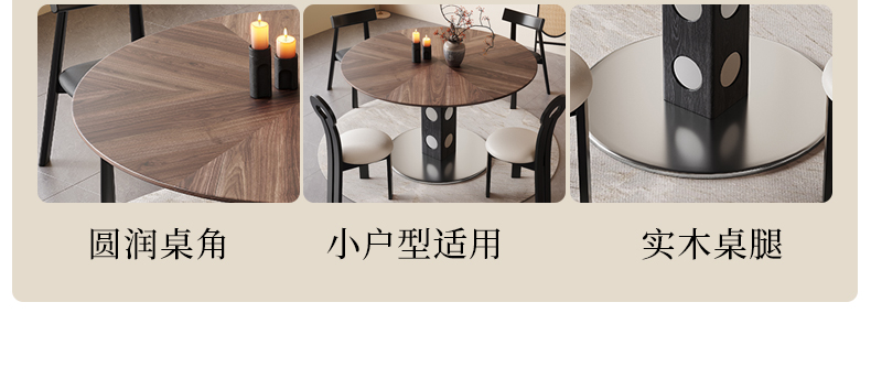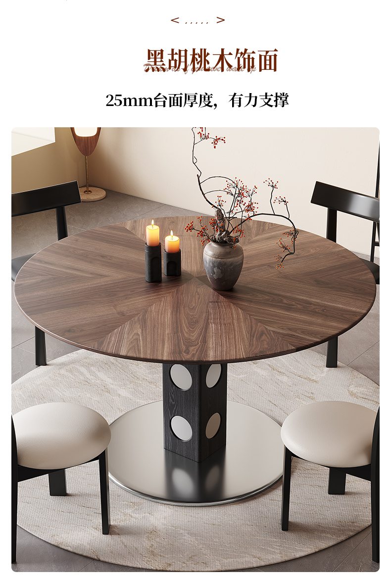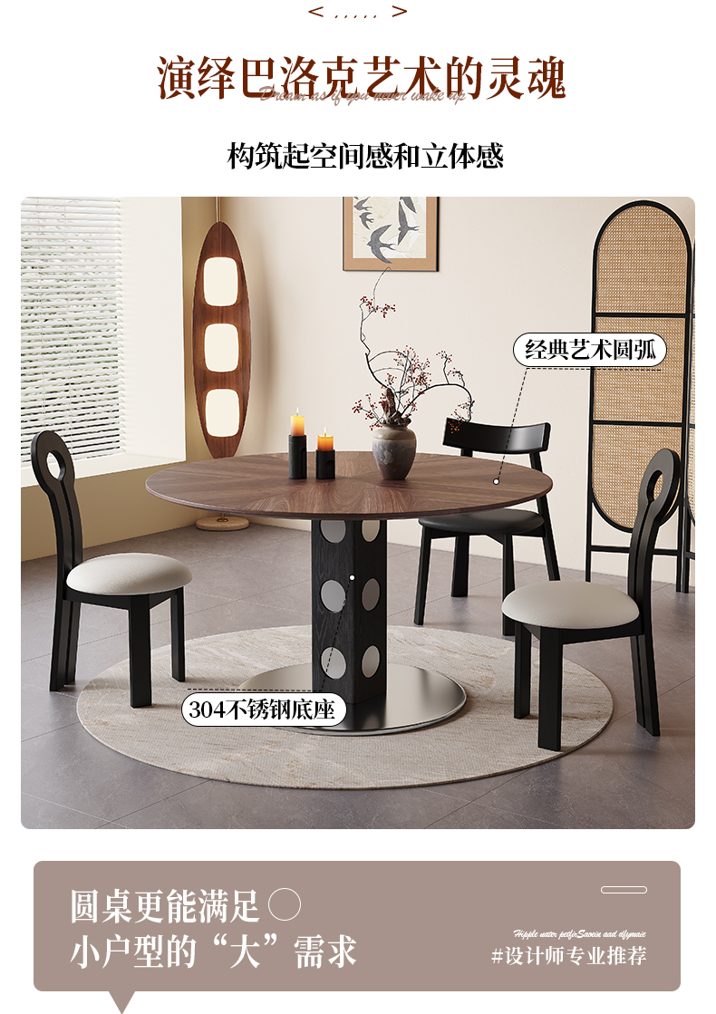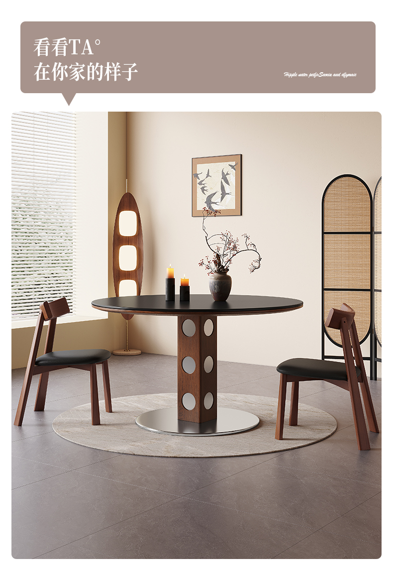 馨佰利伯格岩板餐桌椅2024新款家用小户型圆桌复古风黑胡桃小饭桌