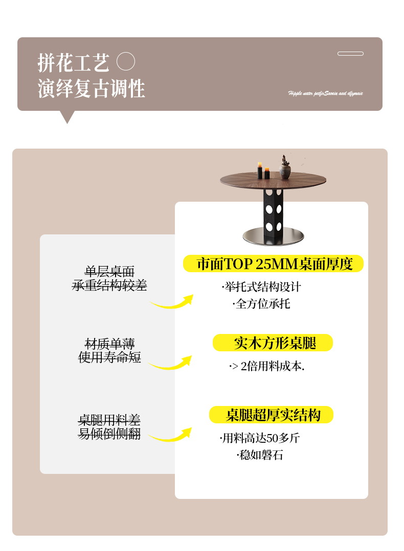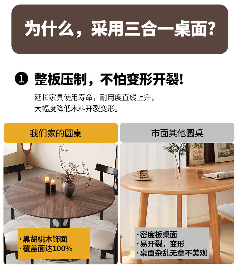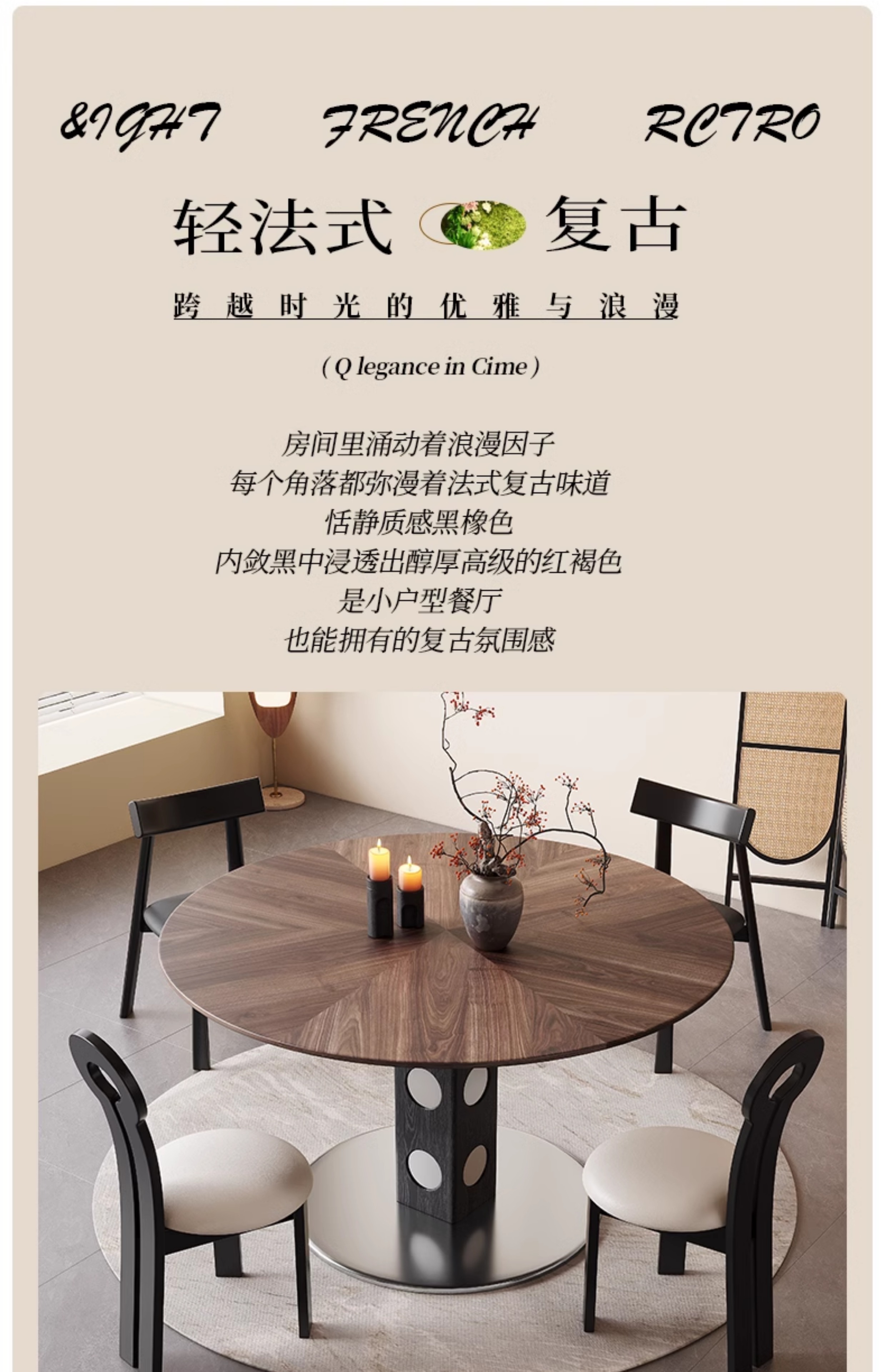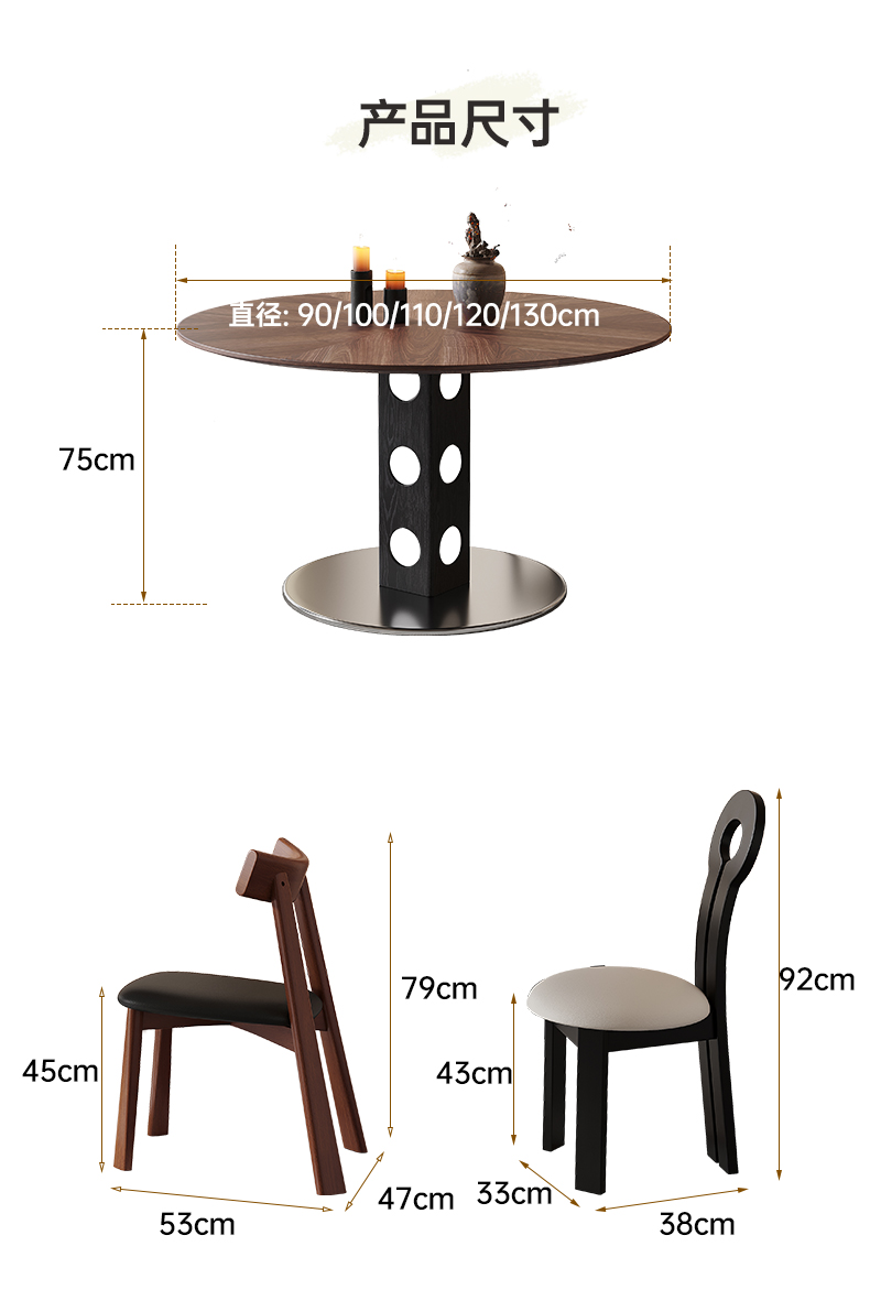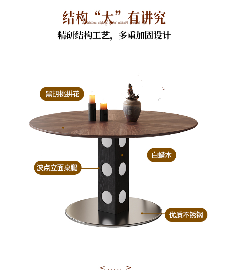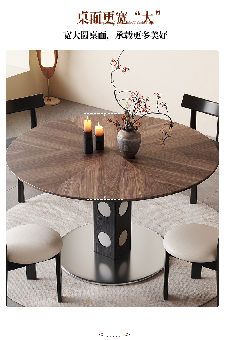 馨佰利伯格岩板餐桌椅2024新款家用小户型圆桌复古风黑胡桃小饭桌