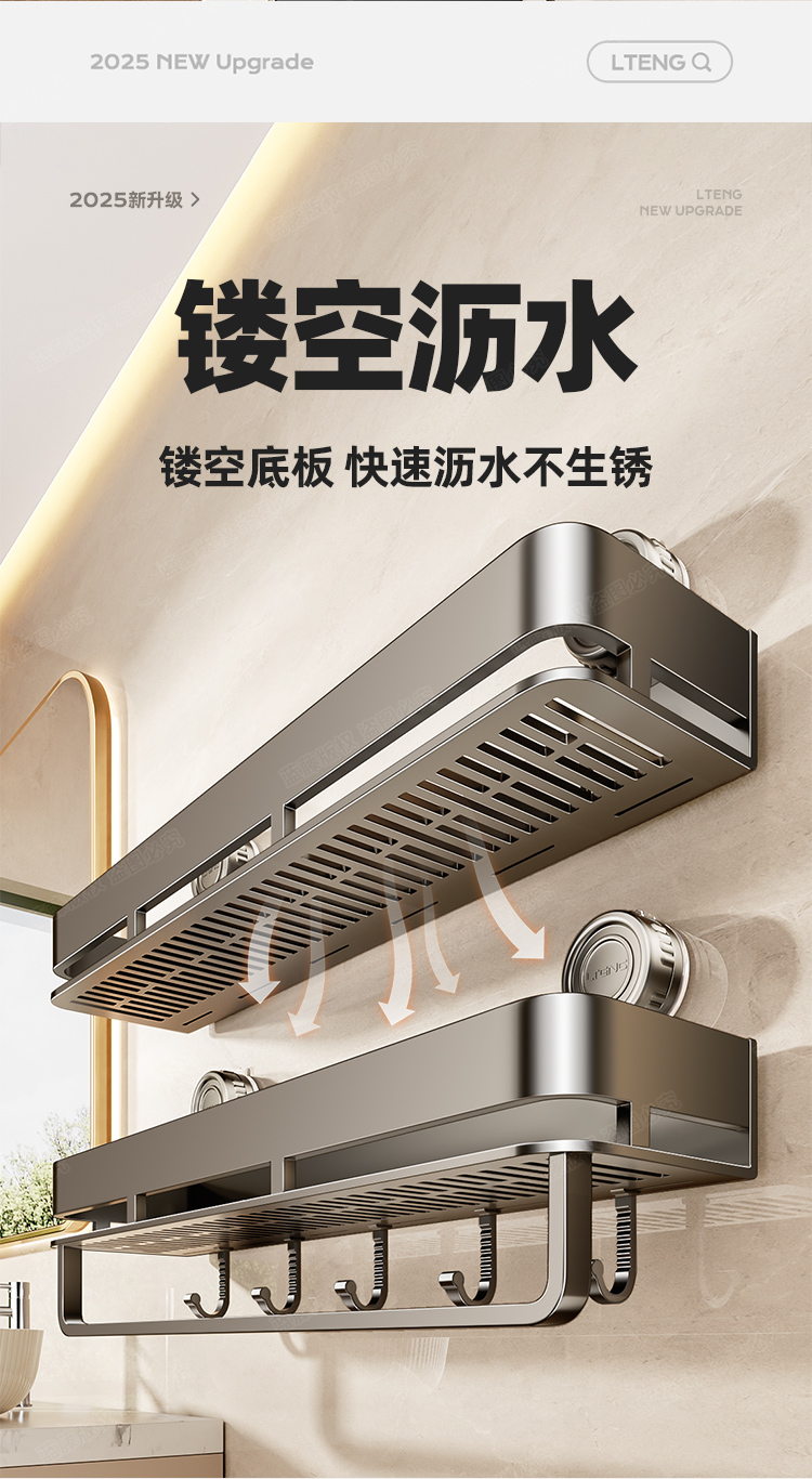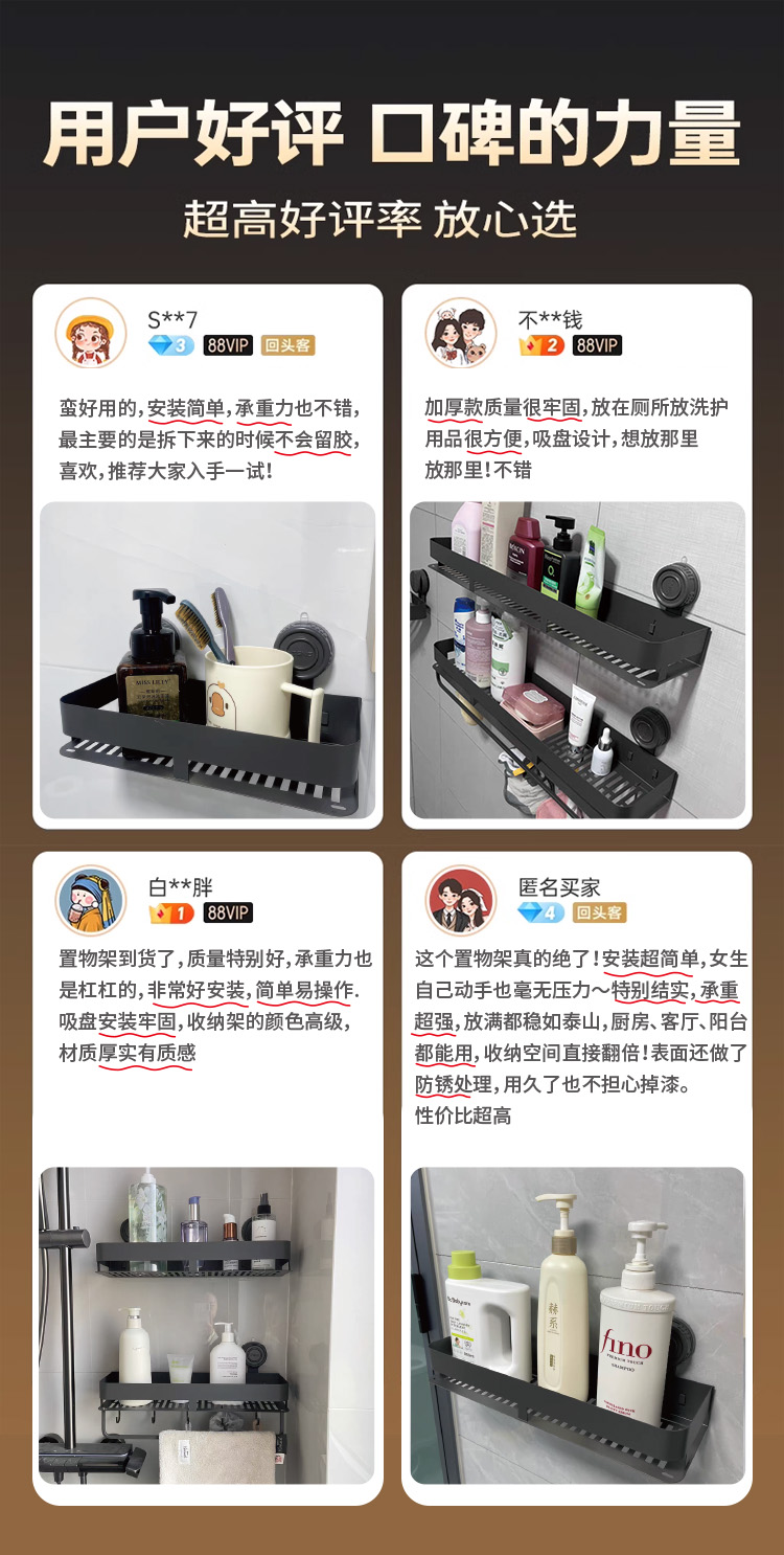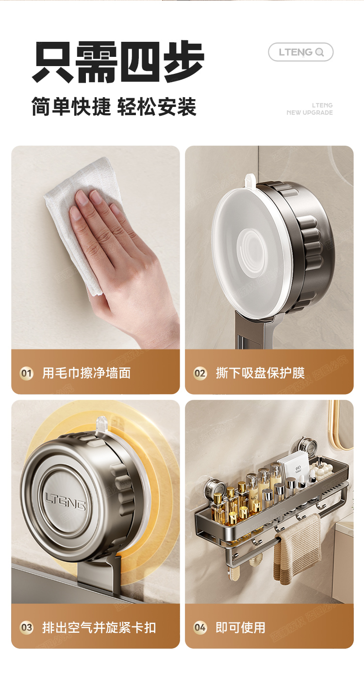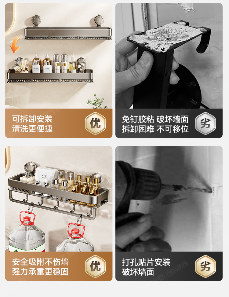 吸盘浴室卫生间置物架免打孔壁挂式洗手间洗漱台厕所墙上收纳架子