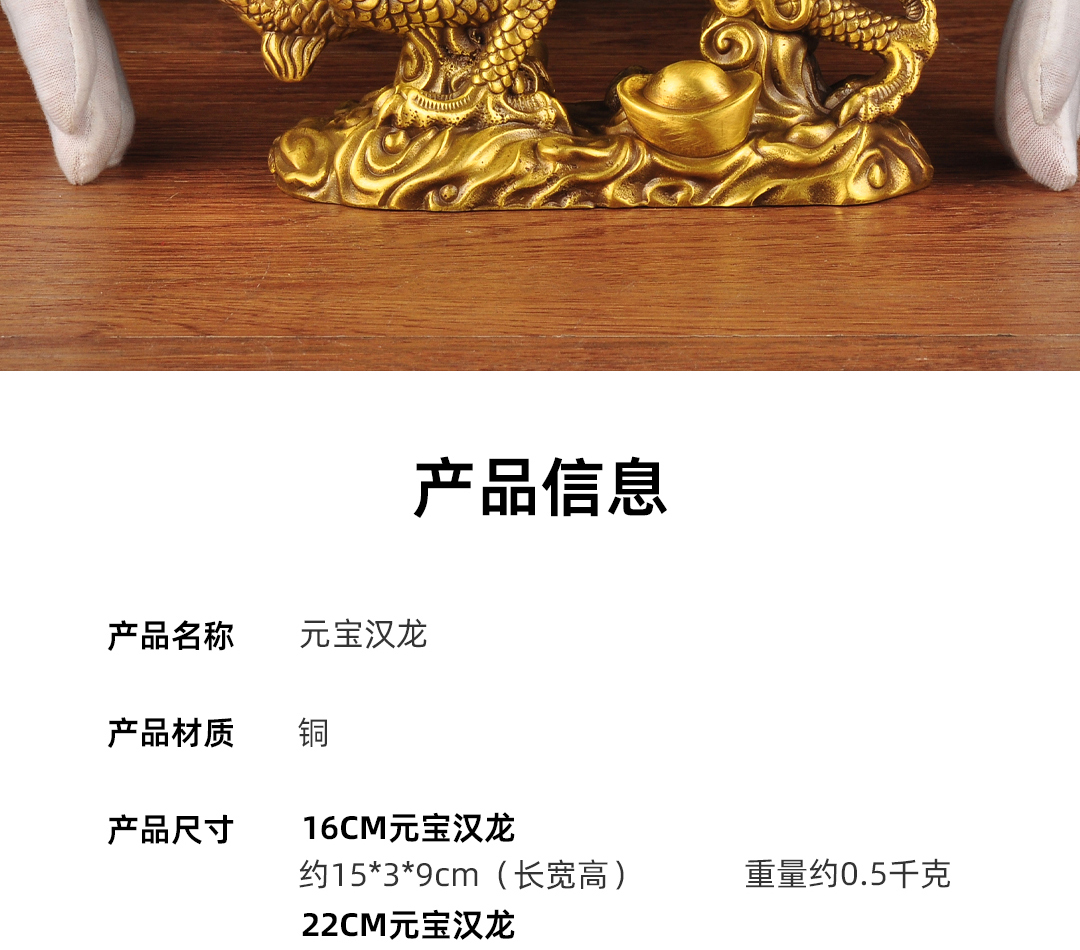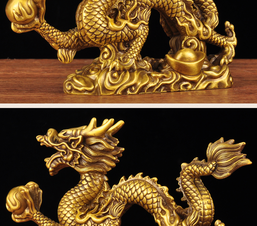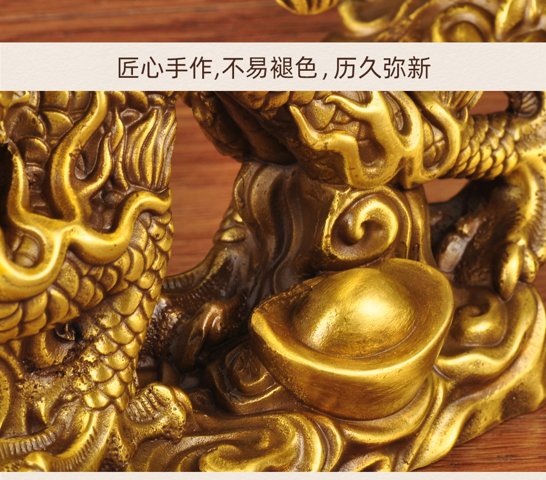 黄铜元宝汉龙摆件招财风水龙生肖工艺品家居客厅电视柜玄关装饰品