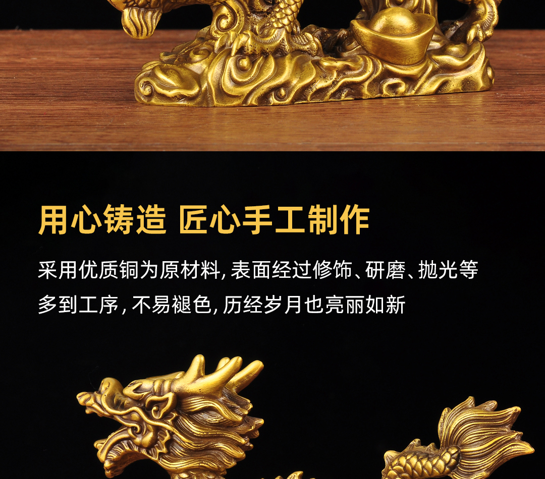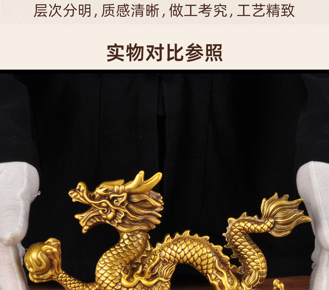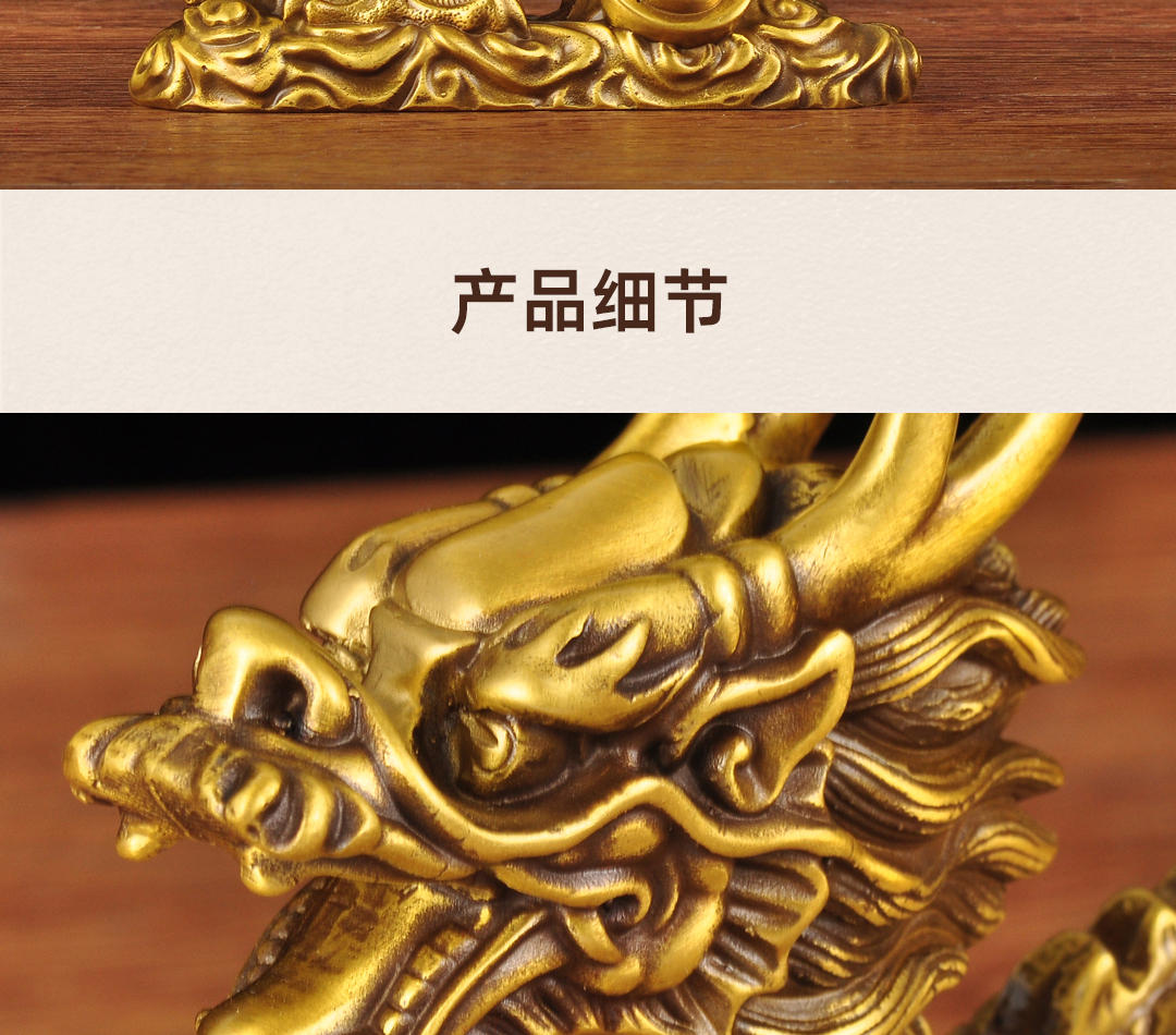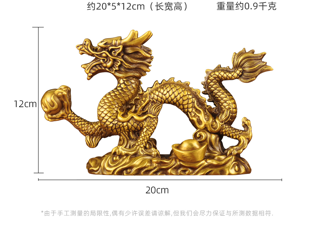 黄铜元宝汉龙摆件招财风水龙生肖工艺品家居客厅电视柜玄关装饰品