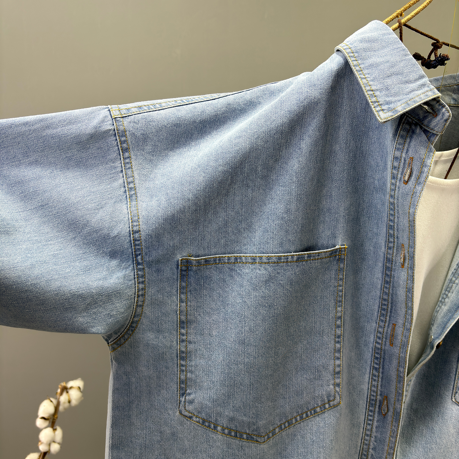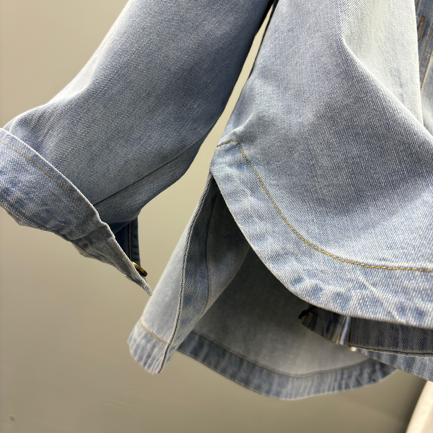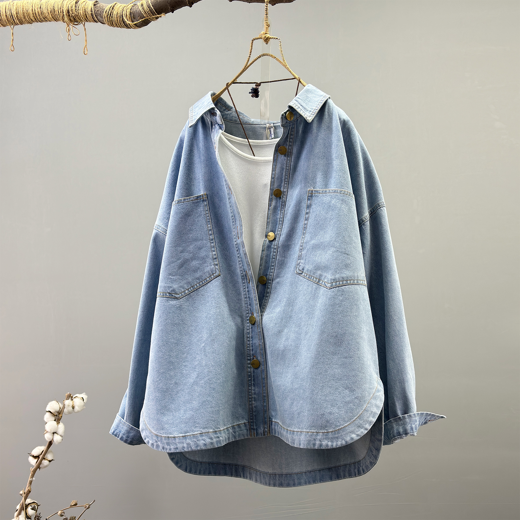 2025春装新款高品质宽松韩范牛仔外套大版洋气全棉牛仔风衣开衫潮