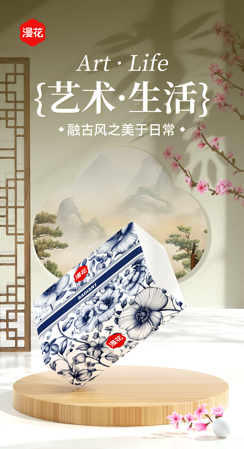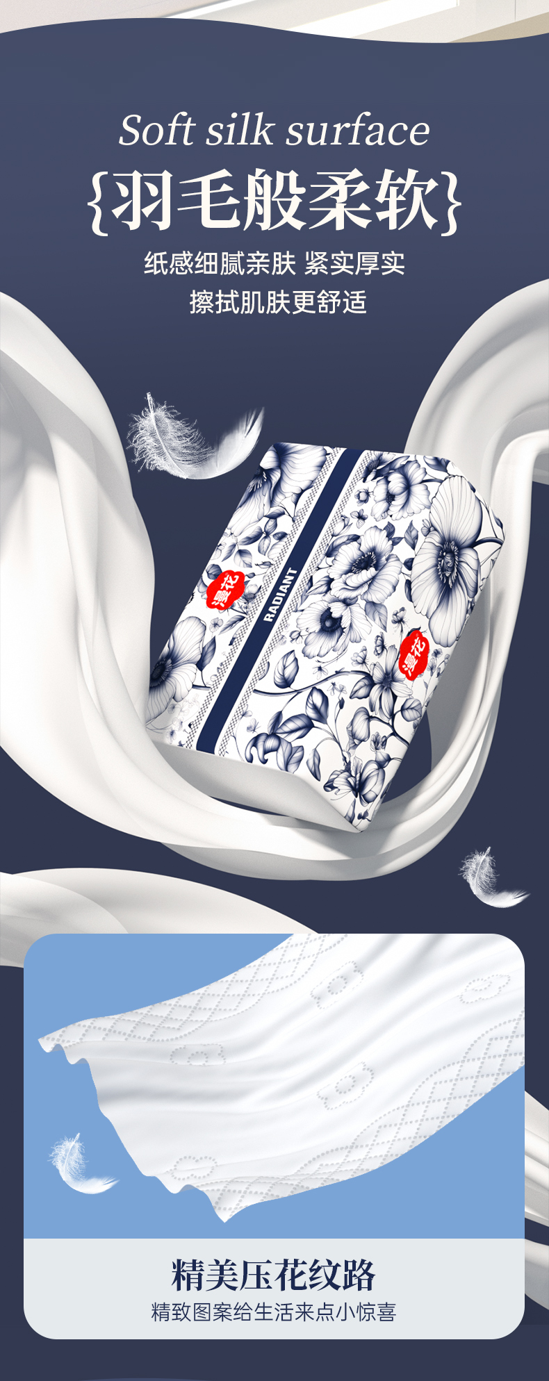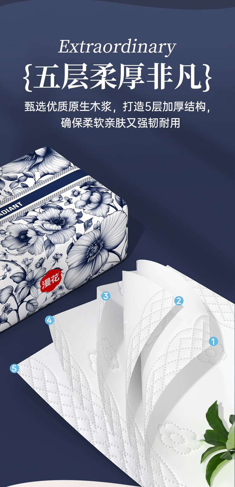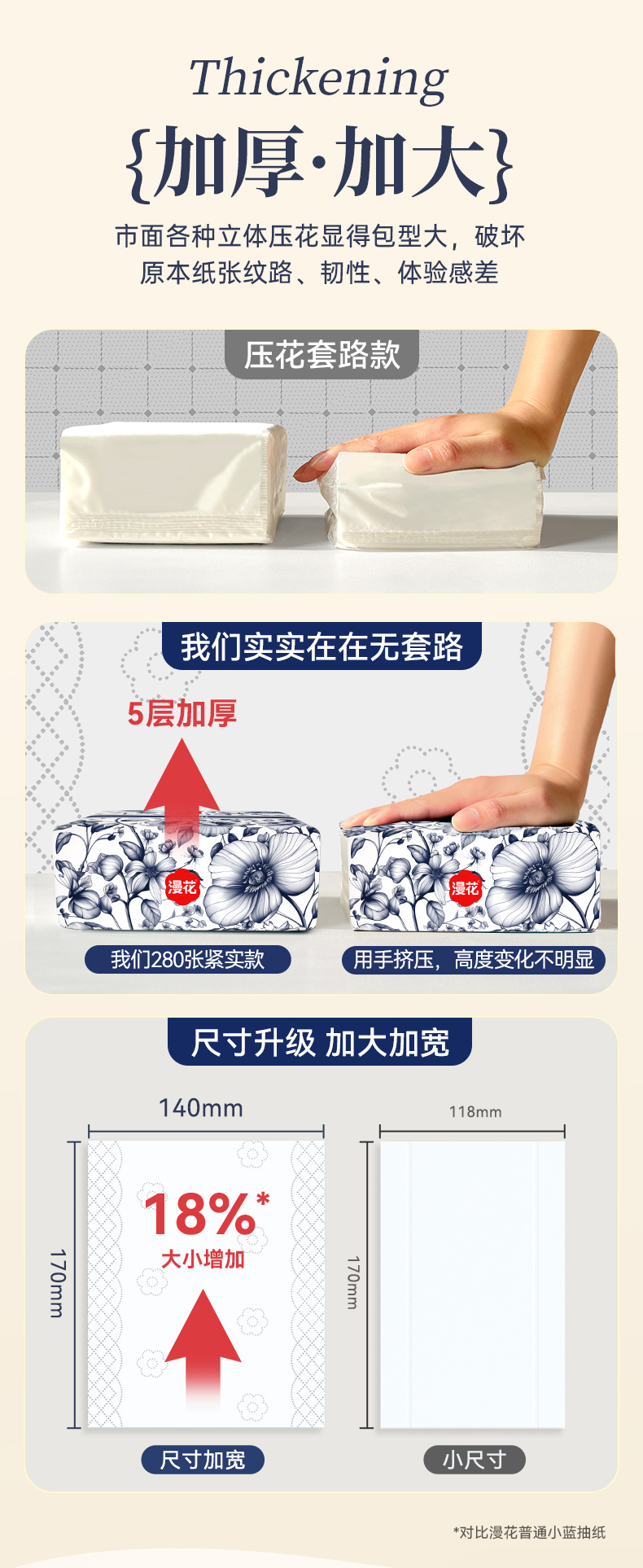 漫花30包中国风纸巾抽纸家用实惠装卫生纸大尺寸餐巾纸手纸面巾纸
